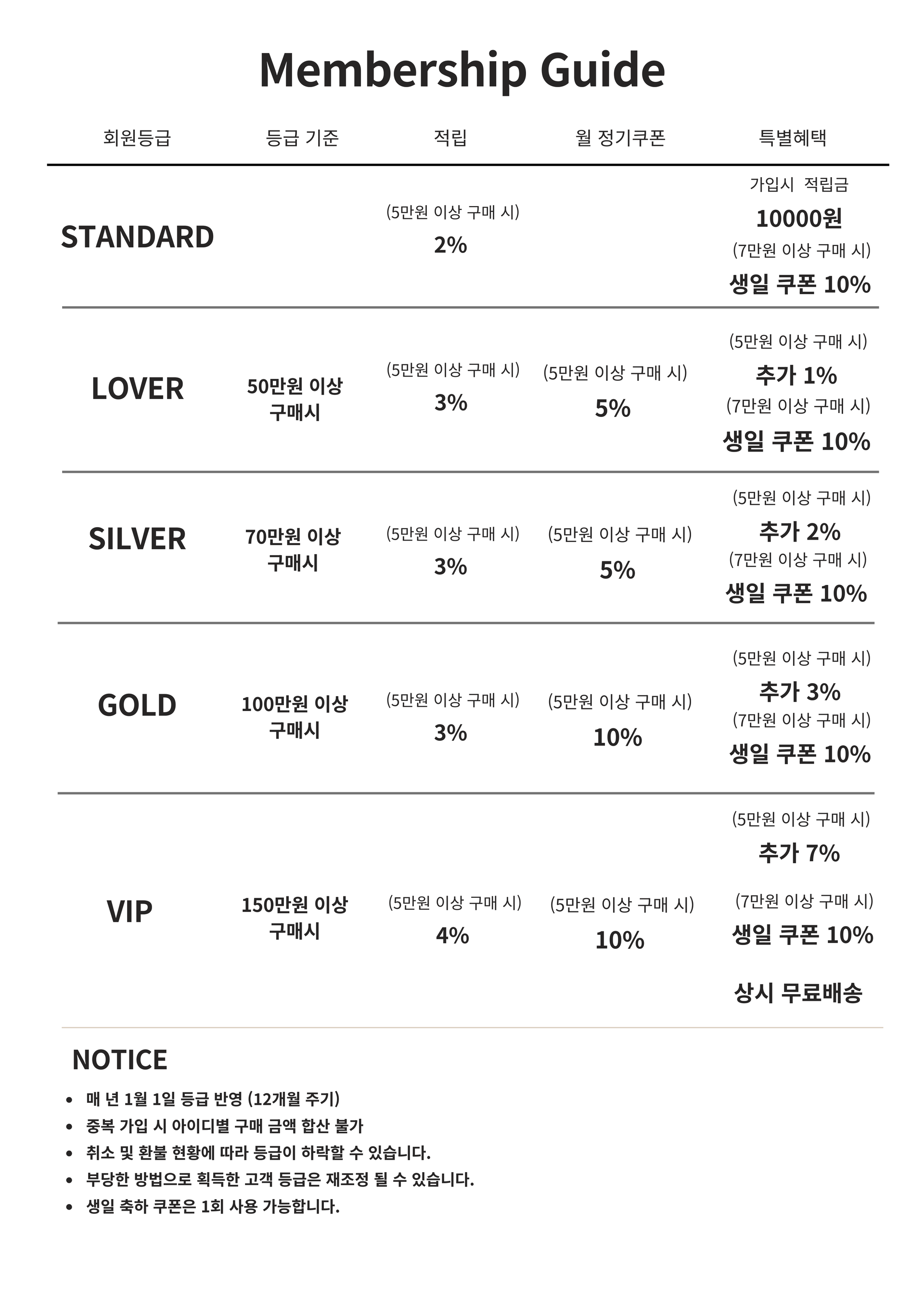 Join & enjoy KRW 10,000 off your first order! 신규 회원가입시 10,000원 적립금을 지급해드립니다.