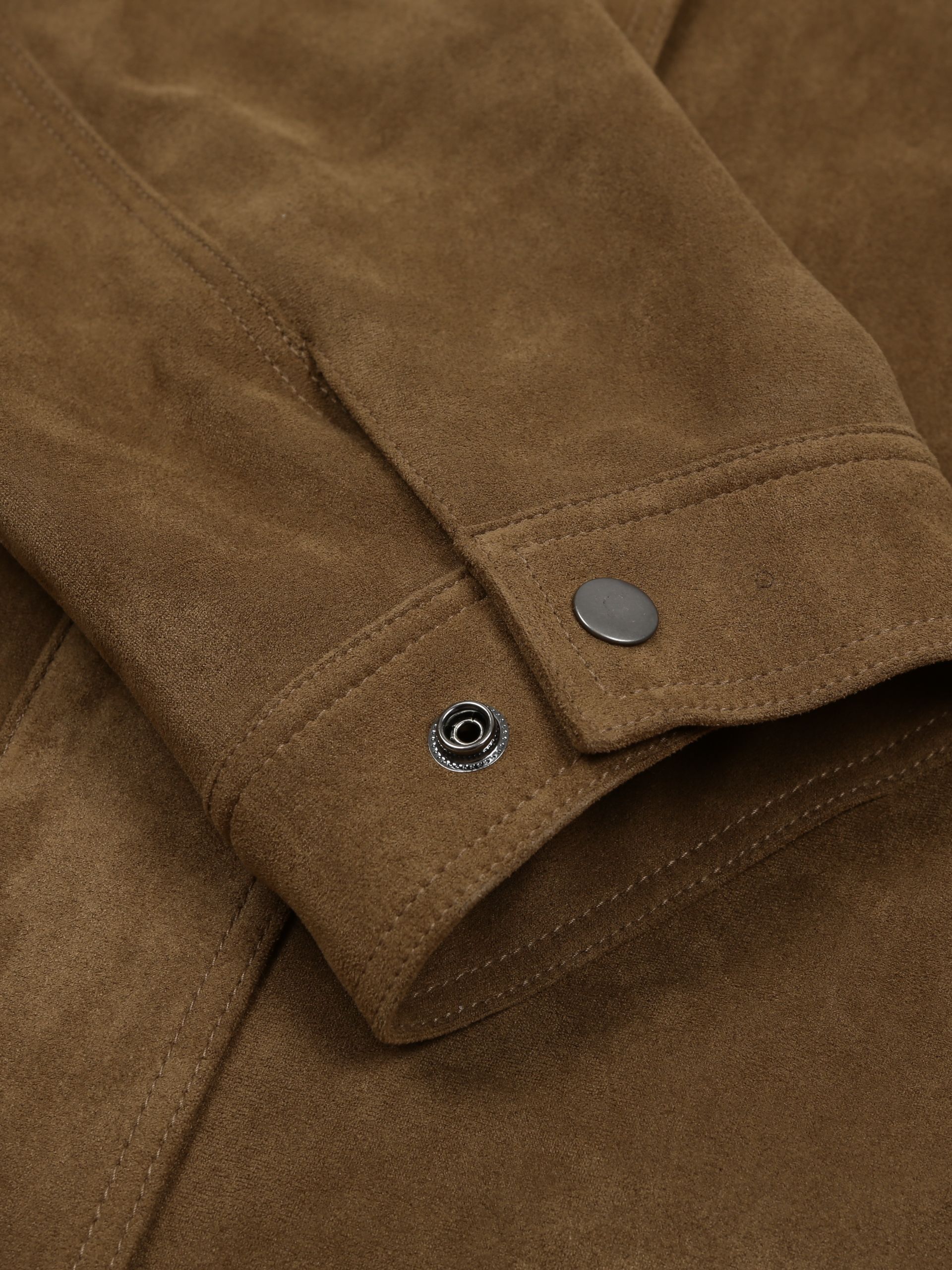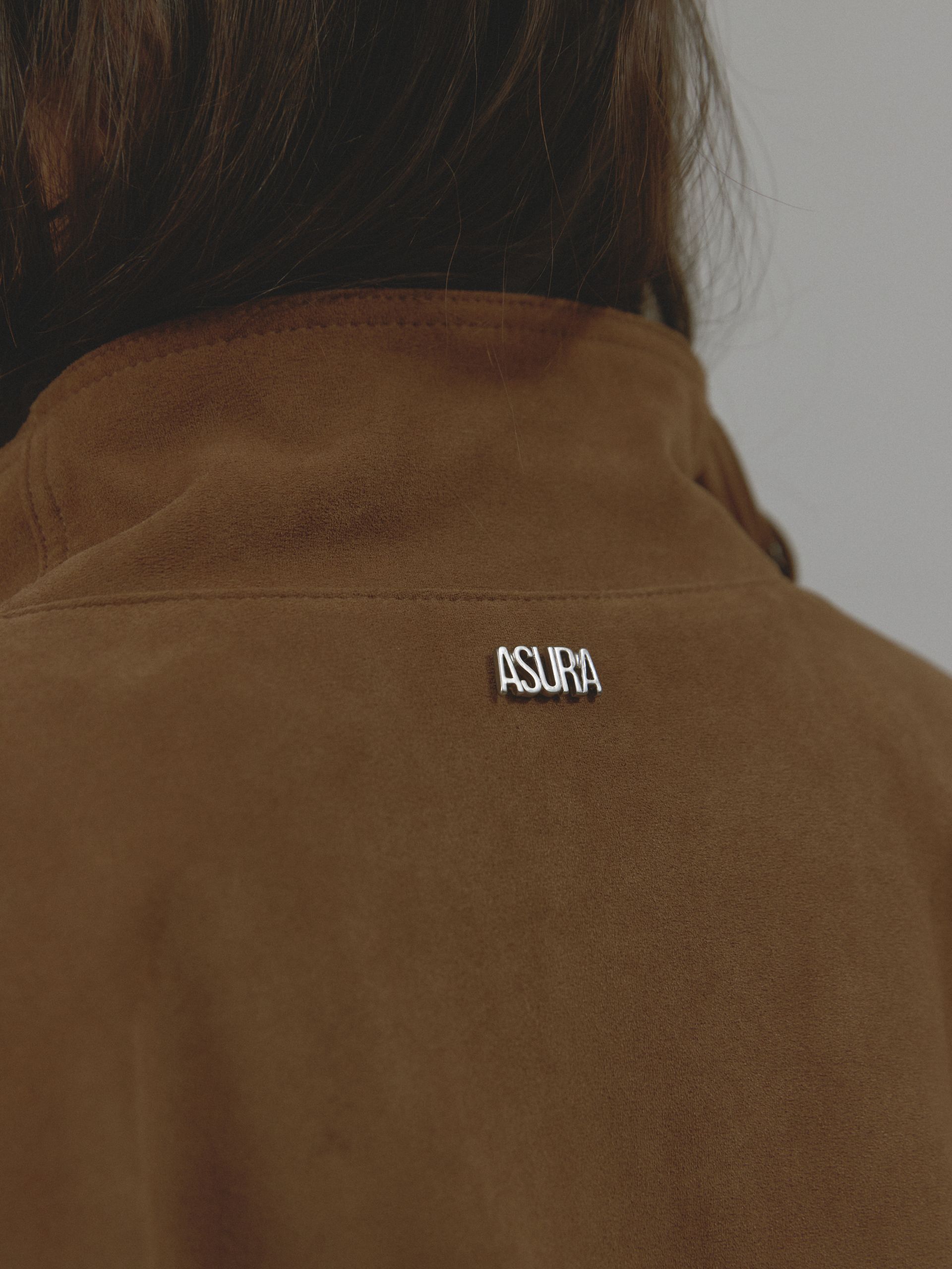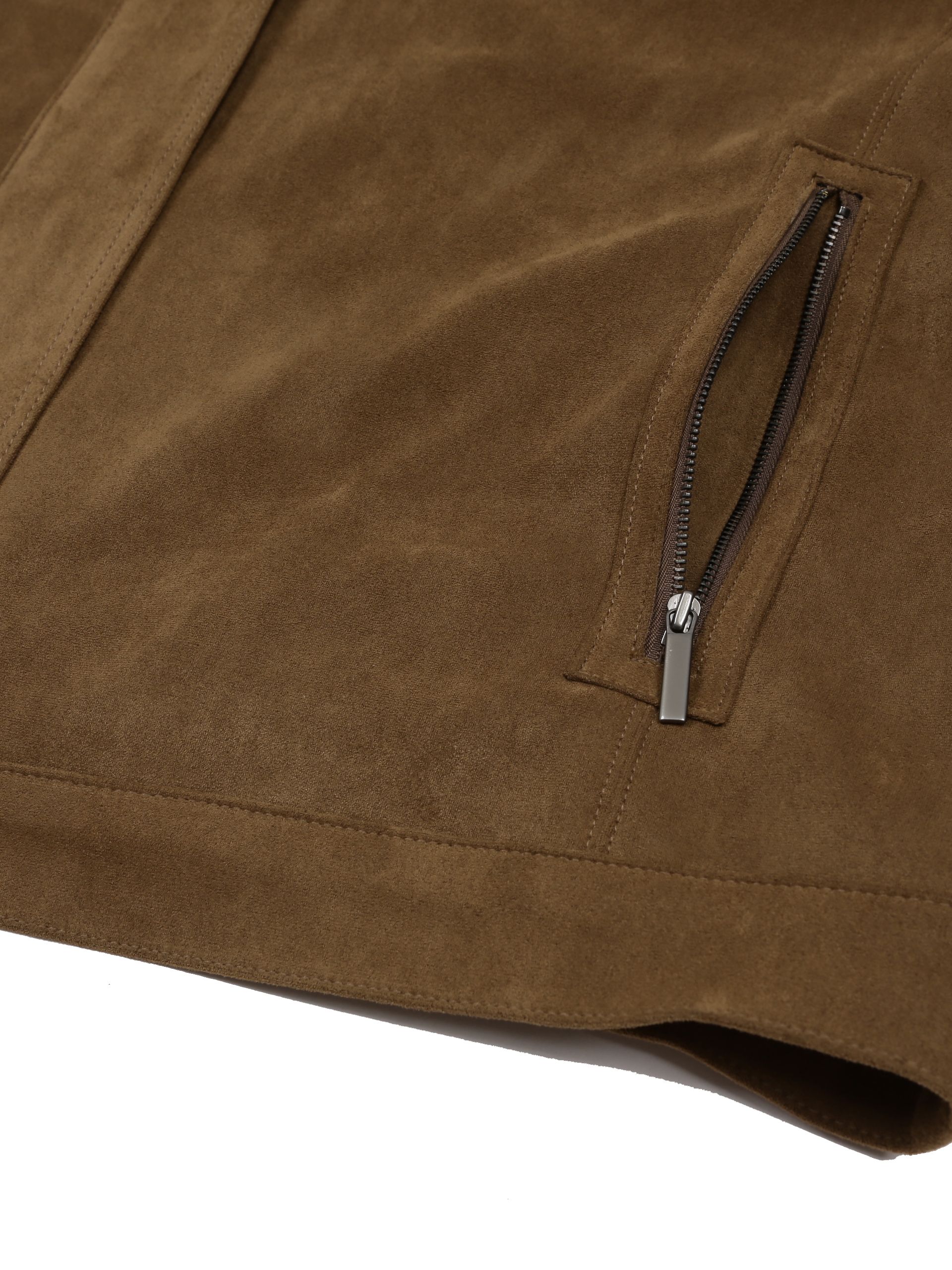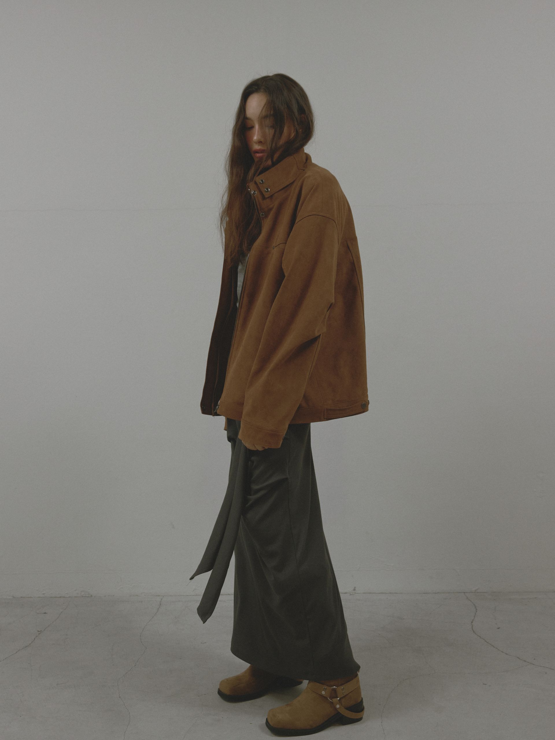 레더와 스웨이드의 배색이 돋보이는 점퍼.