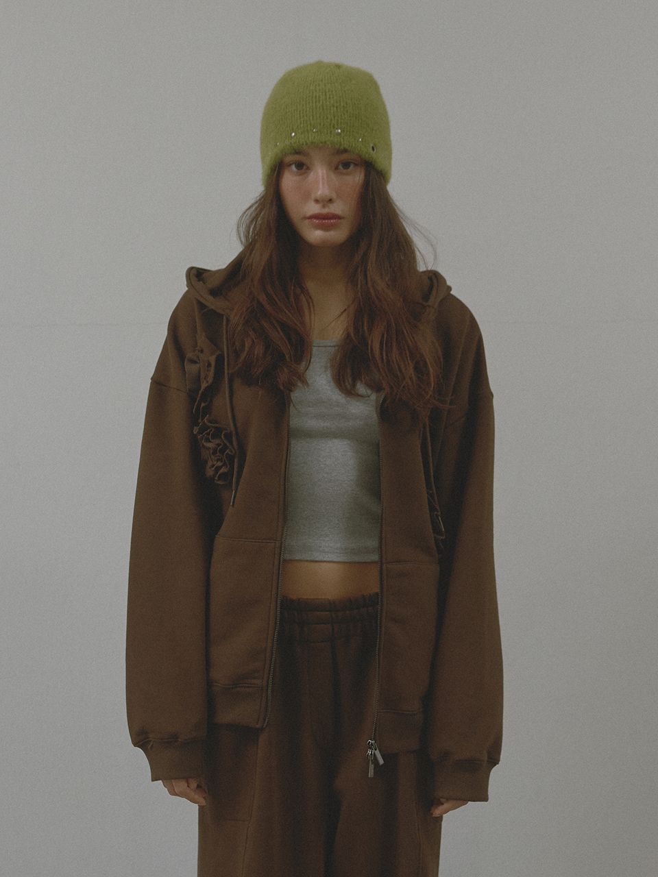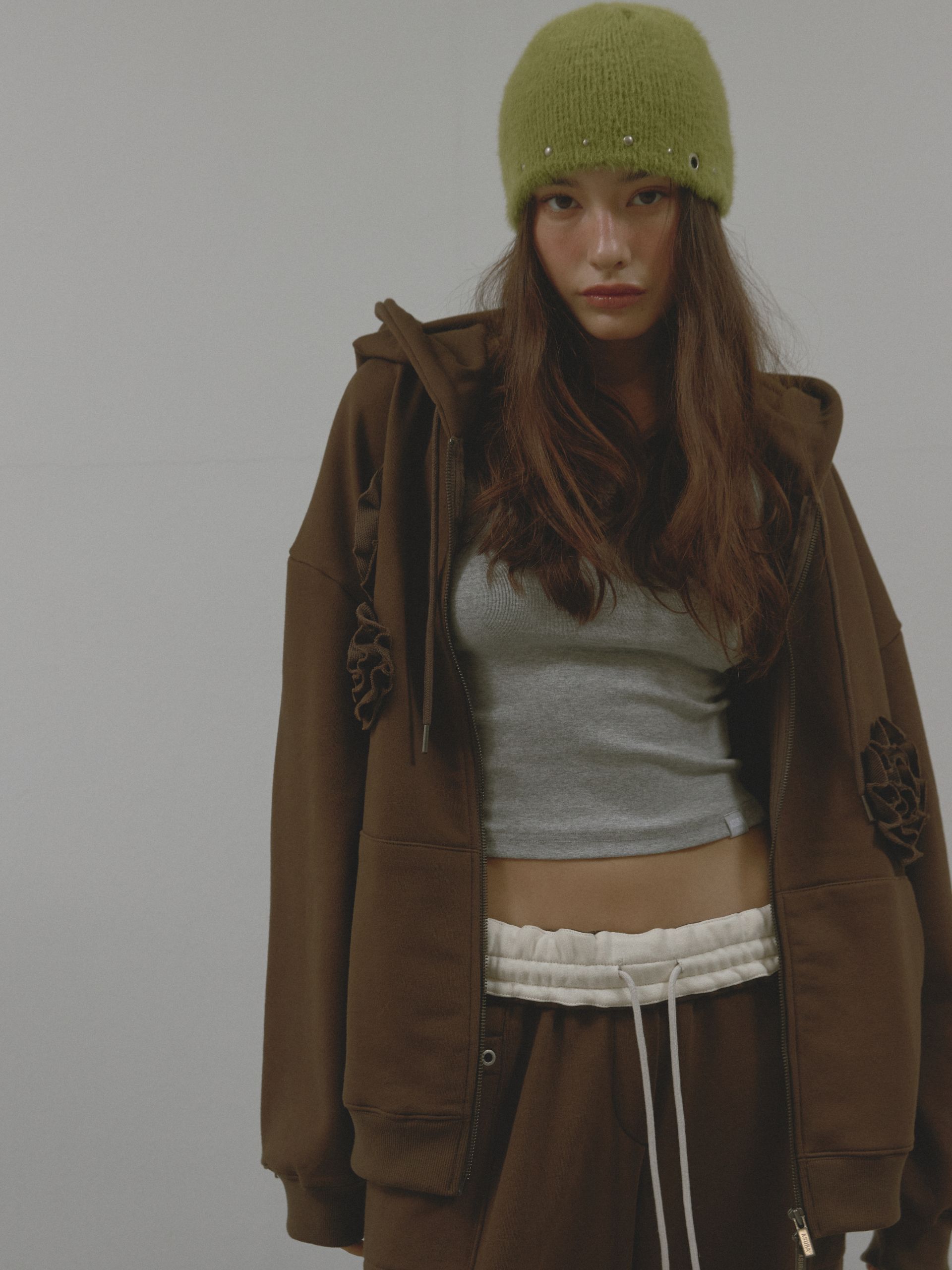 감각적인 플라워 자수가 포인트인 플라워 후드 집업.