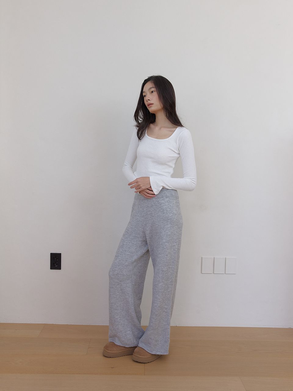 하이웨스트 하의와 매치하여 감각적인 캐주얼 룩을 연출하기 좋은 아이템입니다.