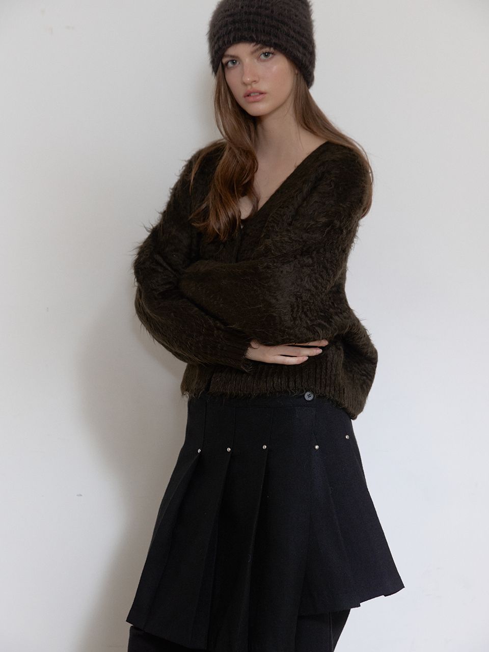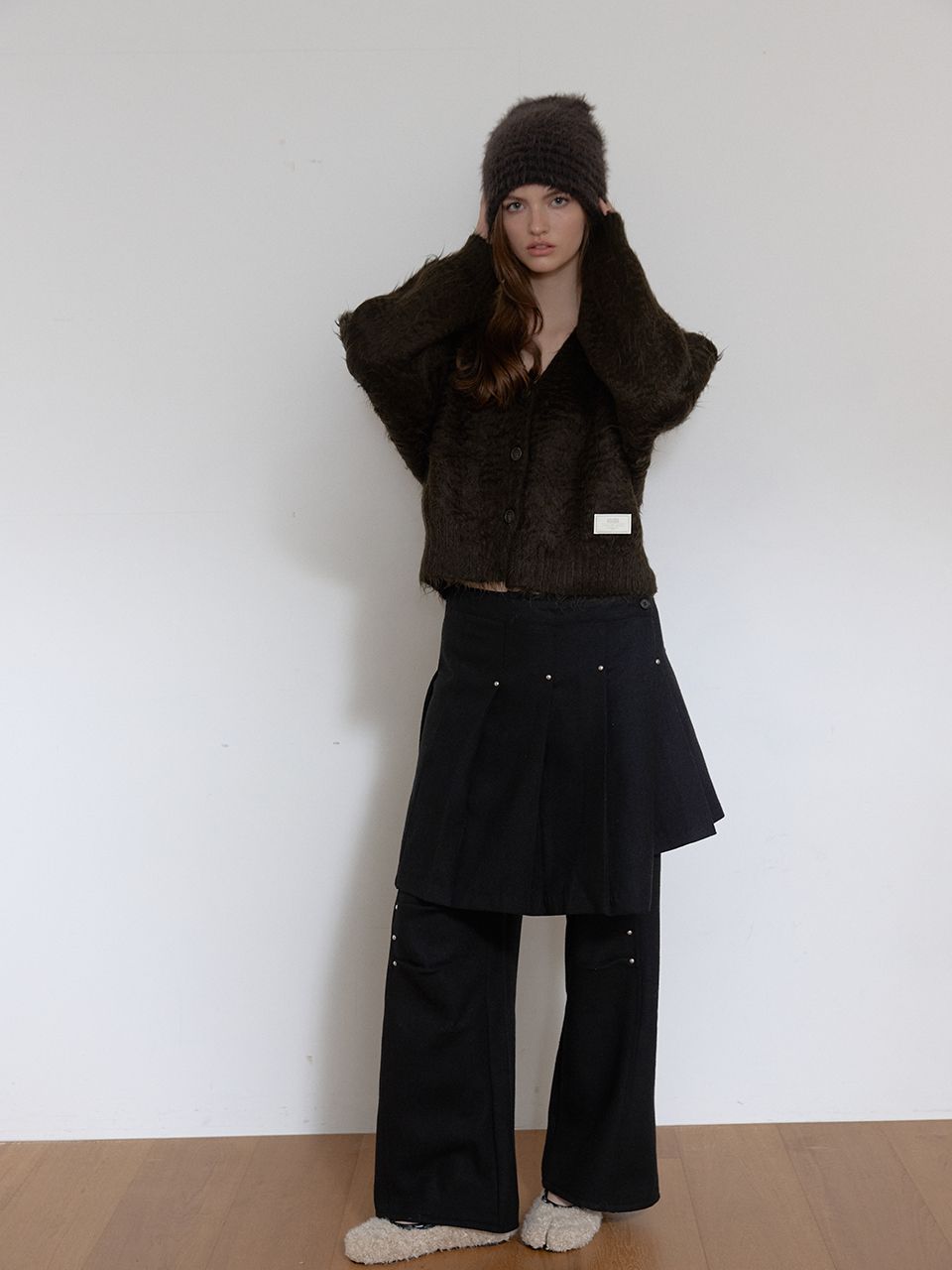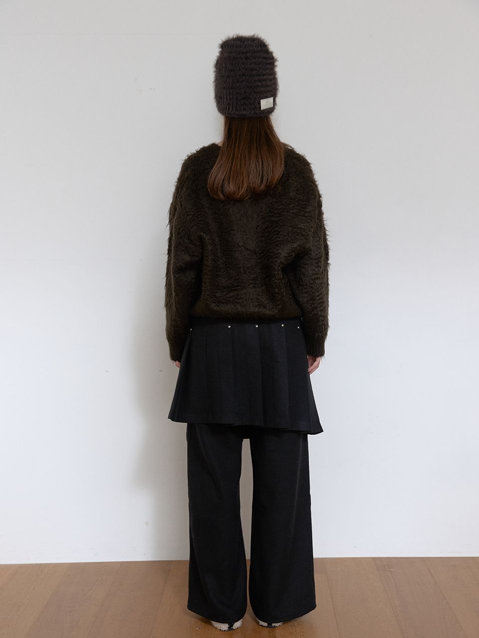 울이 함유되어 탄탄하고 따듯한 소재감의 플리츠 랩 스커트.