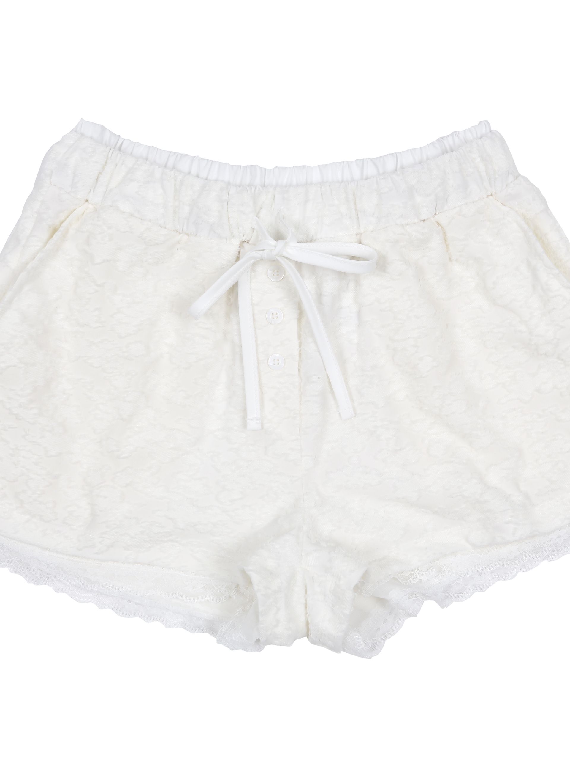단추 포인트와 밑단 레이스로 러블리한 무드를 더했으며, 부드러운 안감 처리로 비침 없이 안정감 있게 착용 가능합니다.