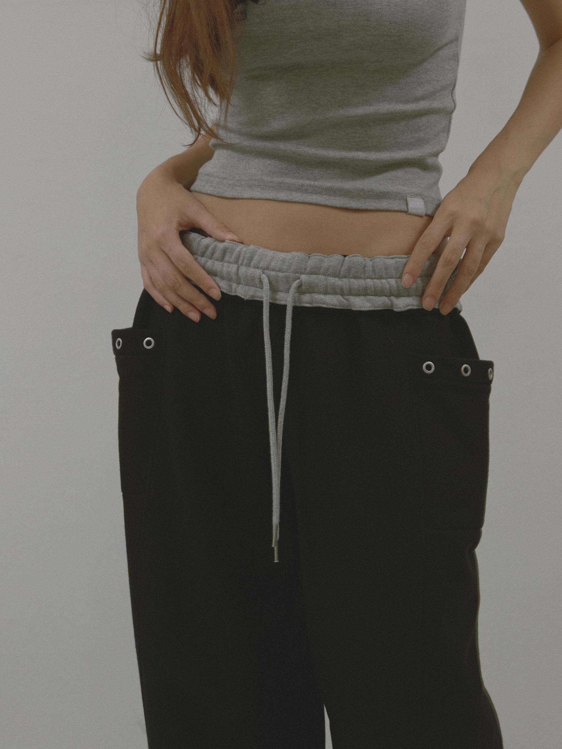 허리 배색 / 밑단 스트링 / 포켓 아일렛 장식
