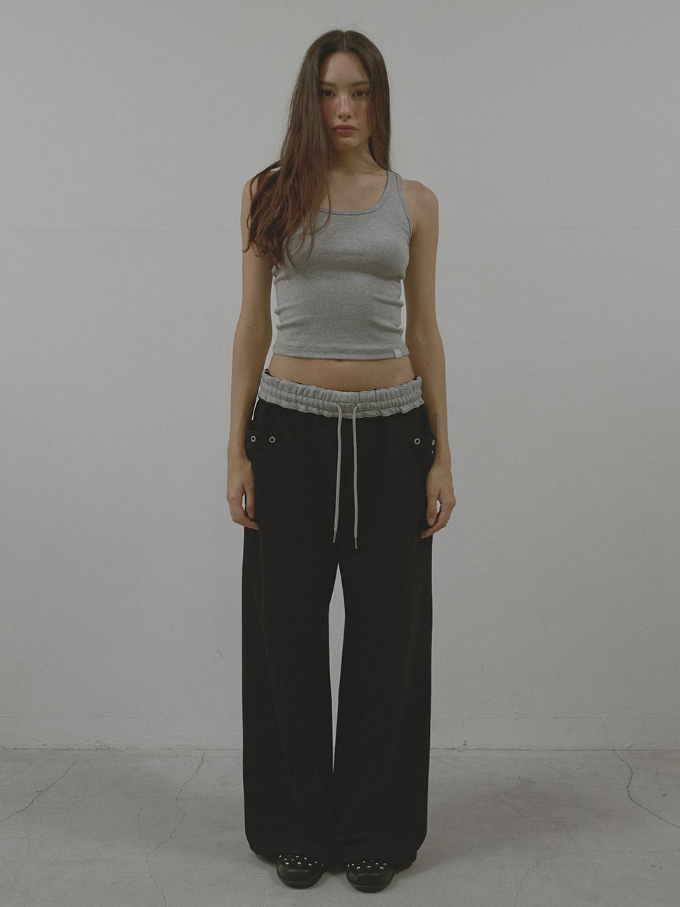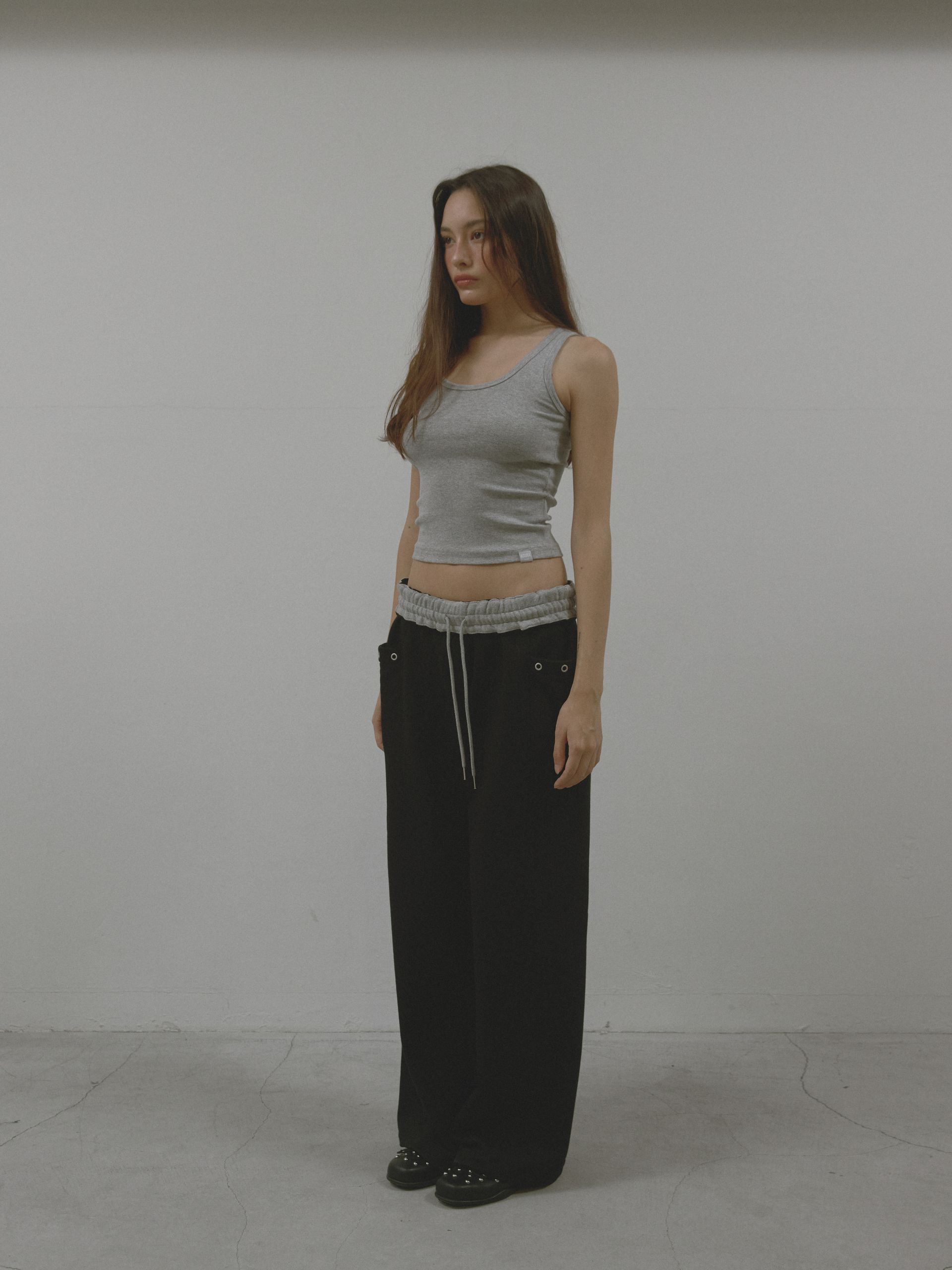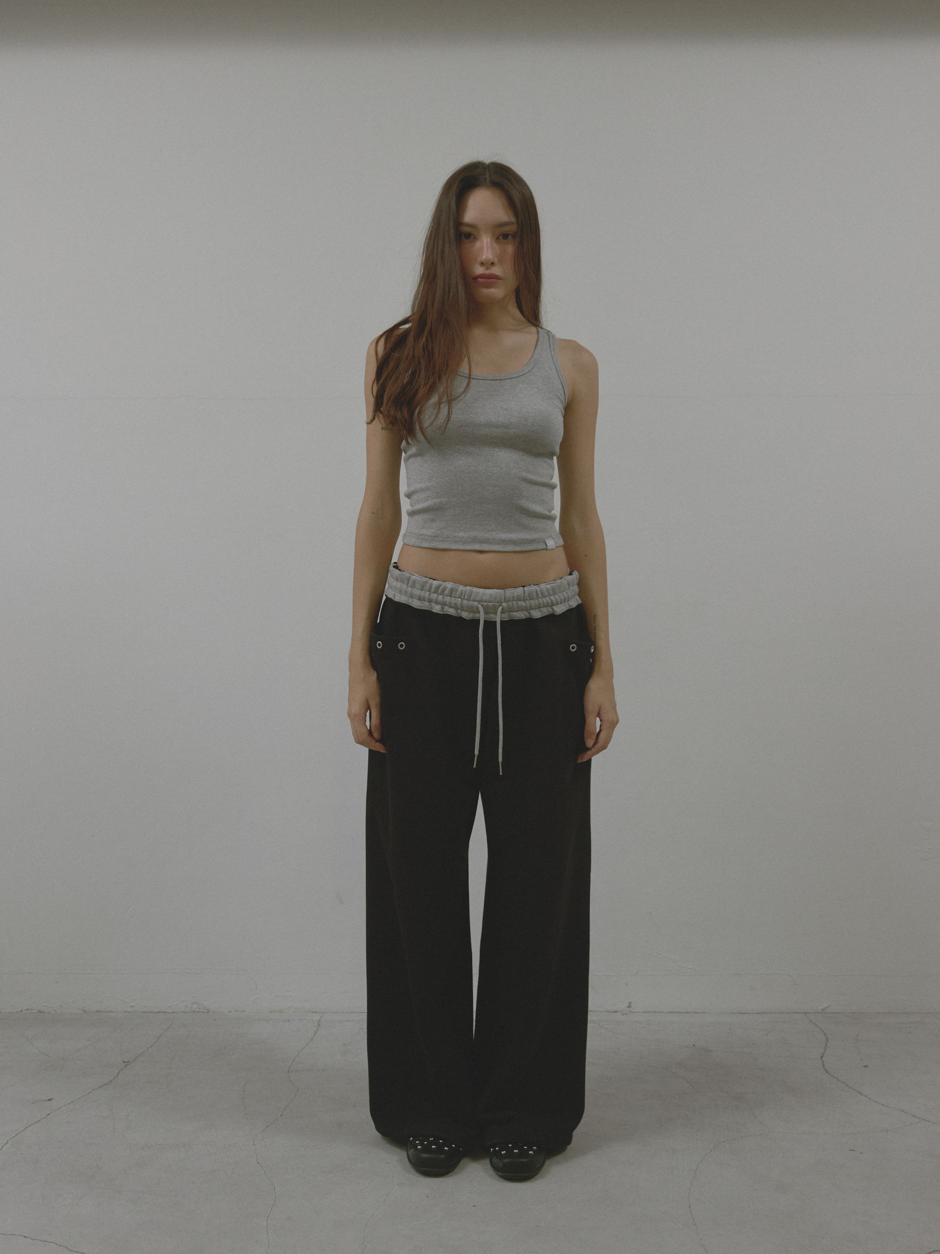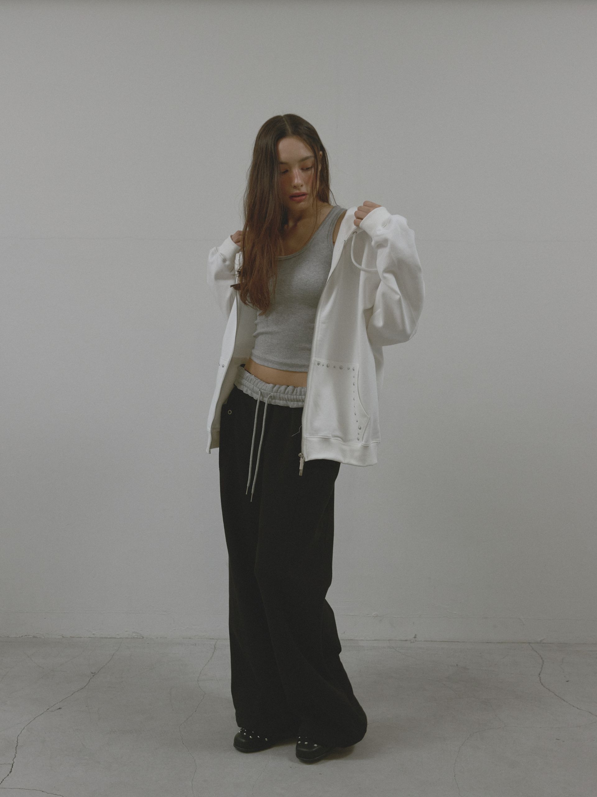 와이드한 핏감에 밑단 스트링 디테일을 더해 자유롭게 실루엣 조절이 가능하며,