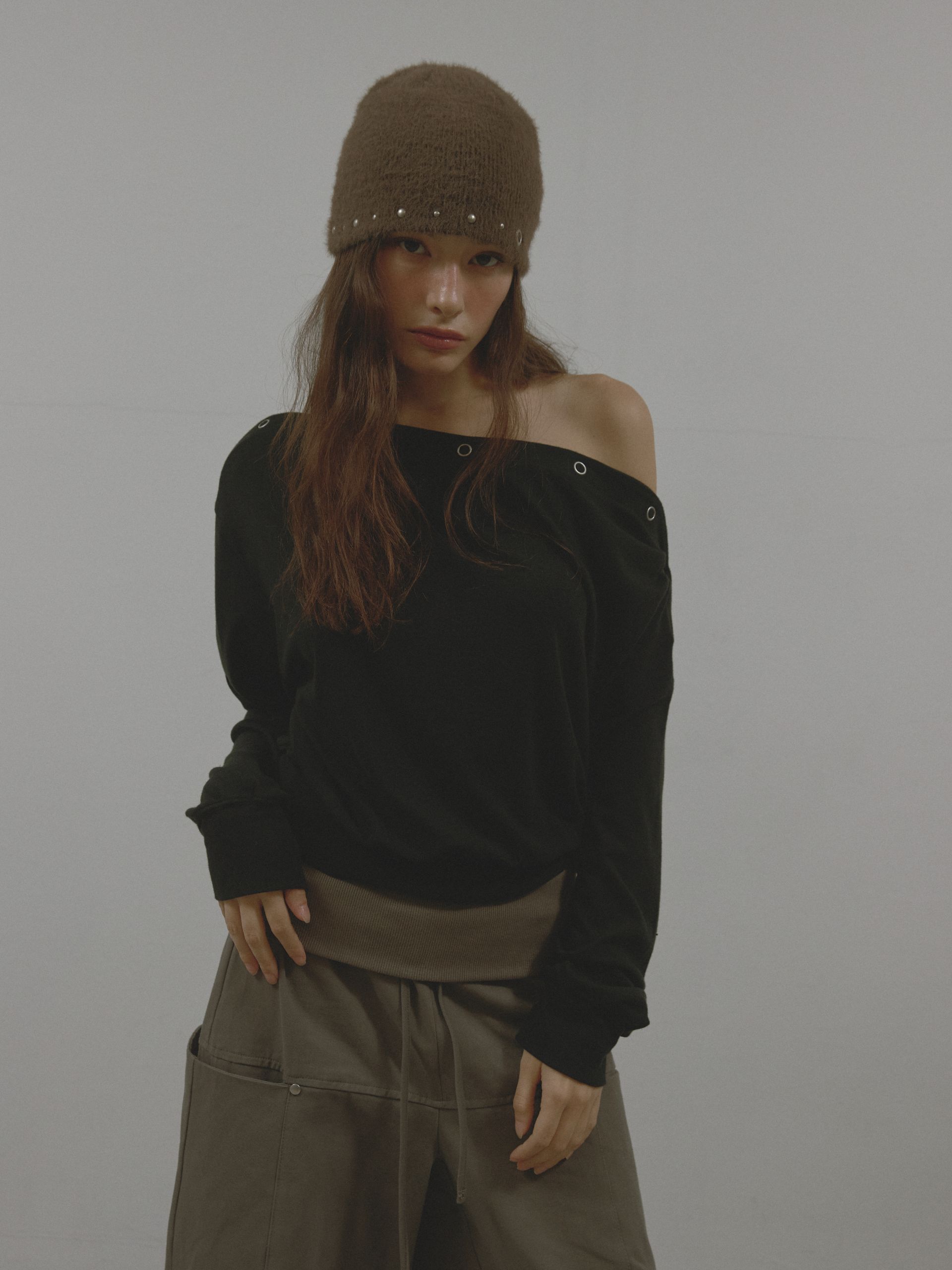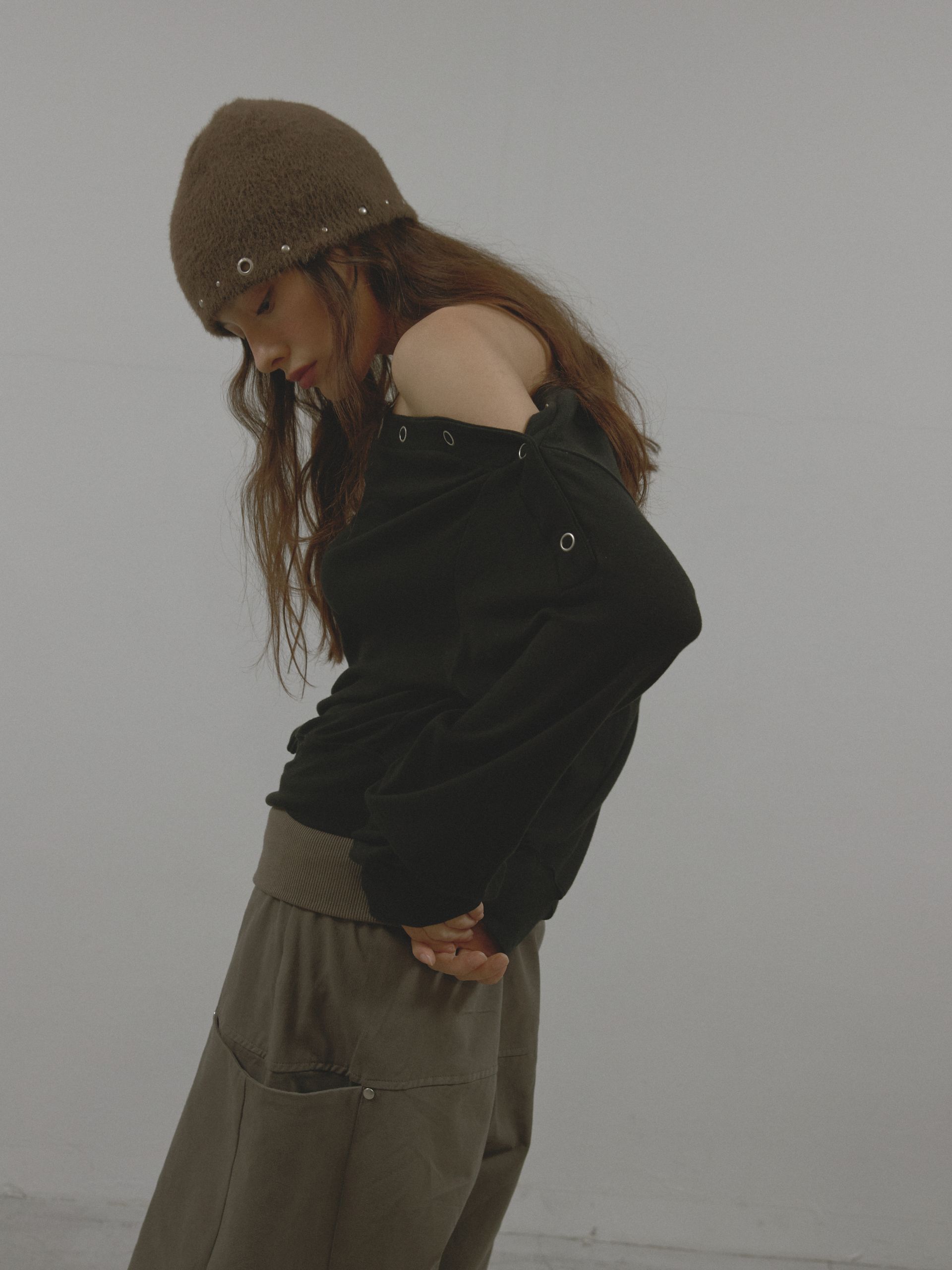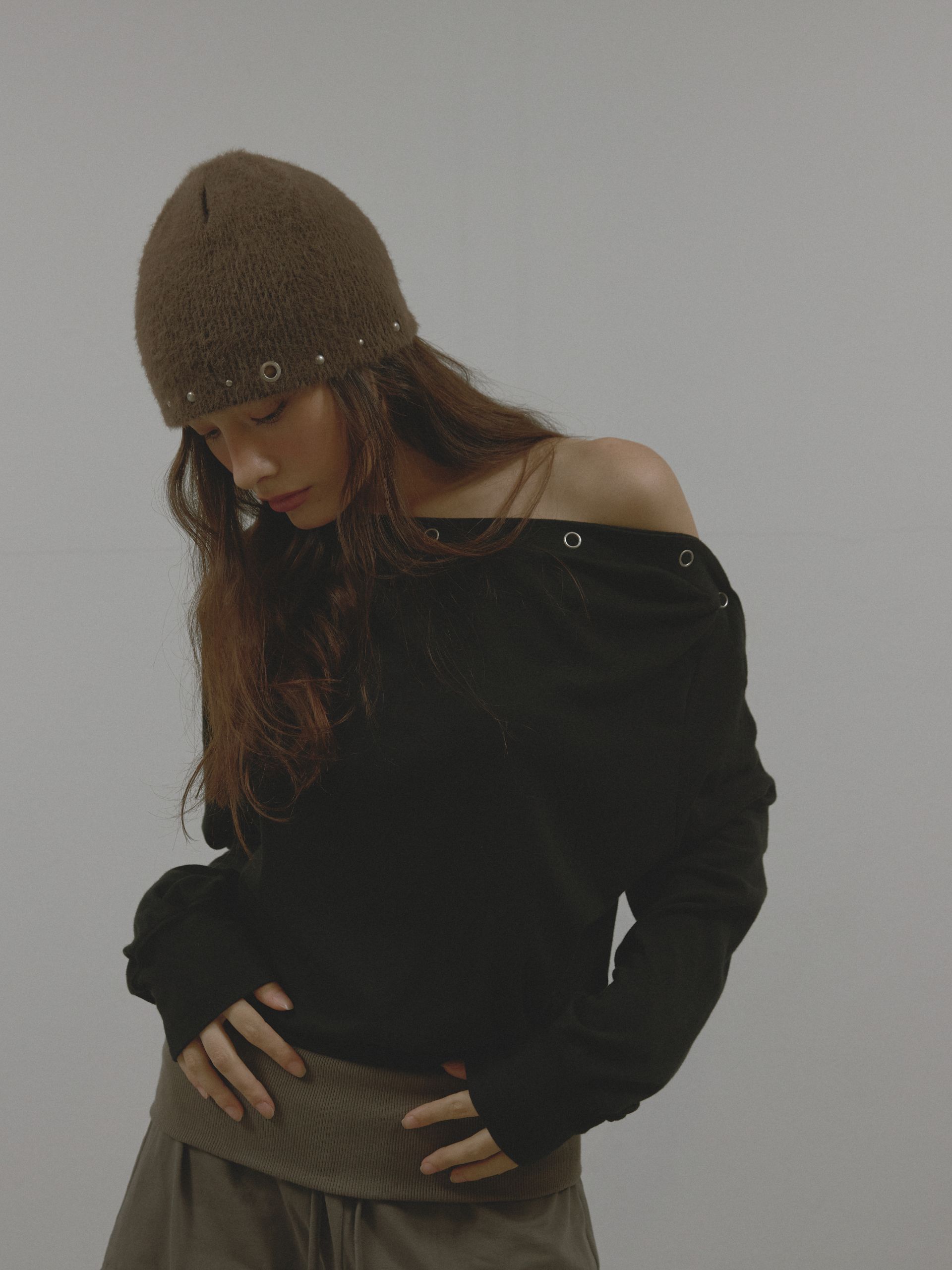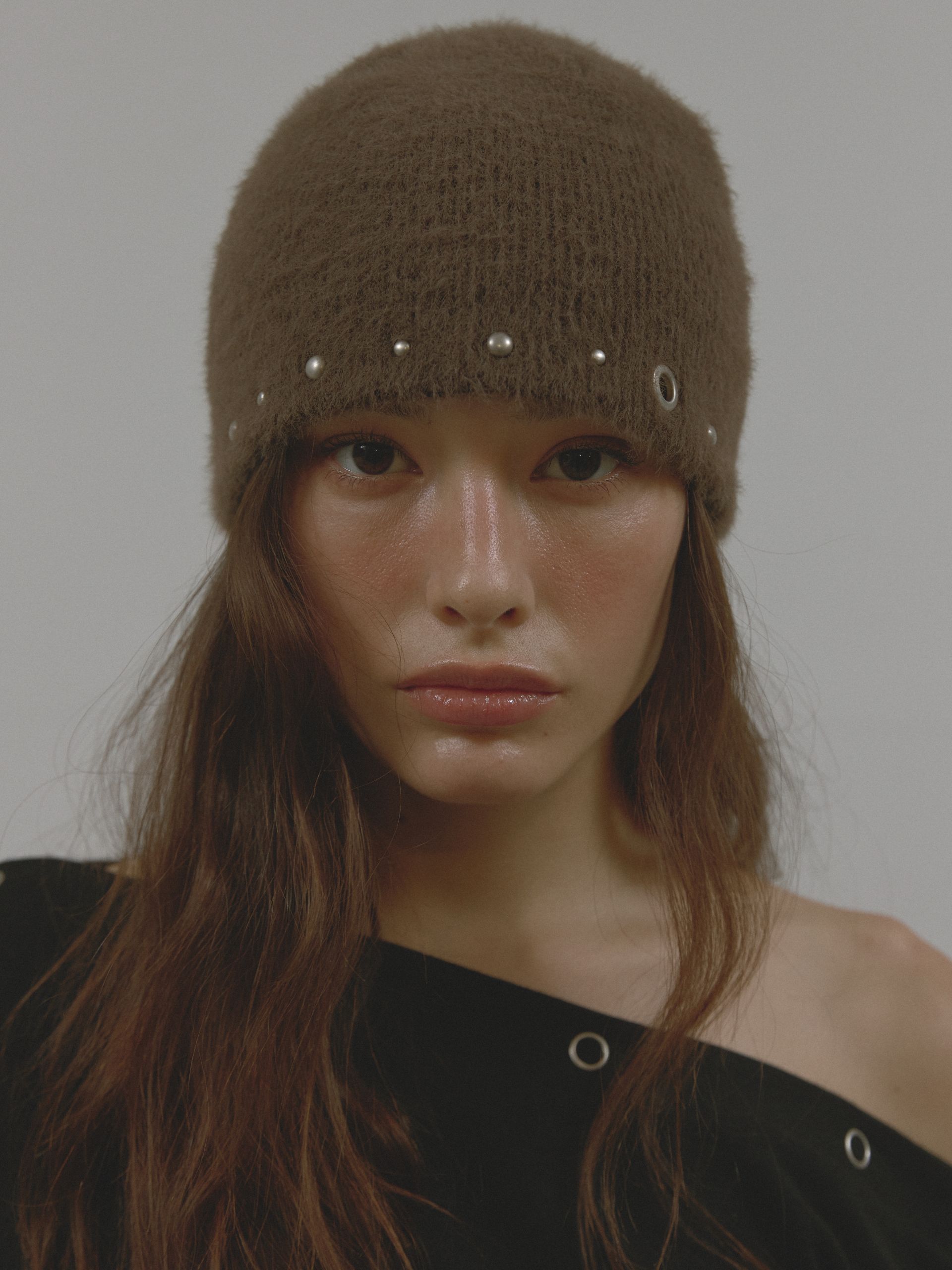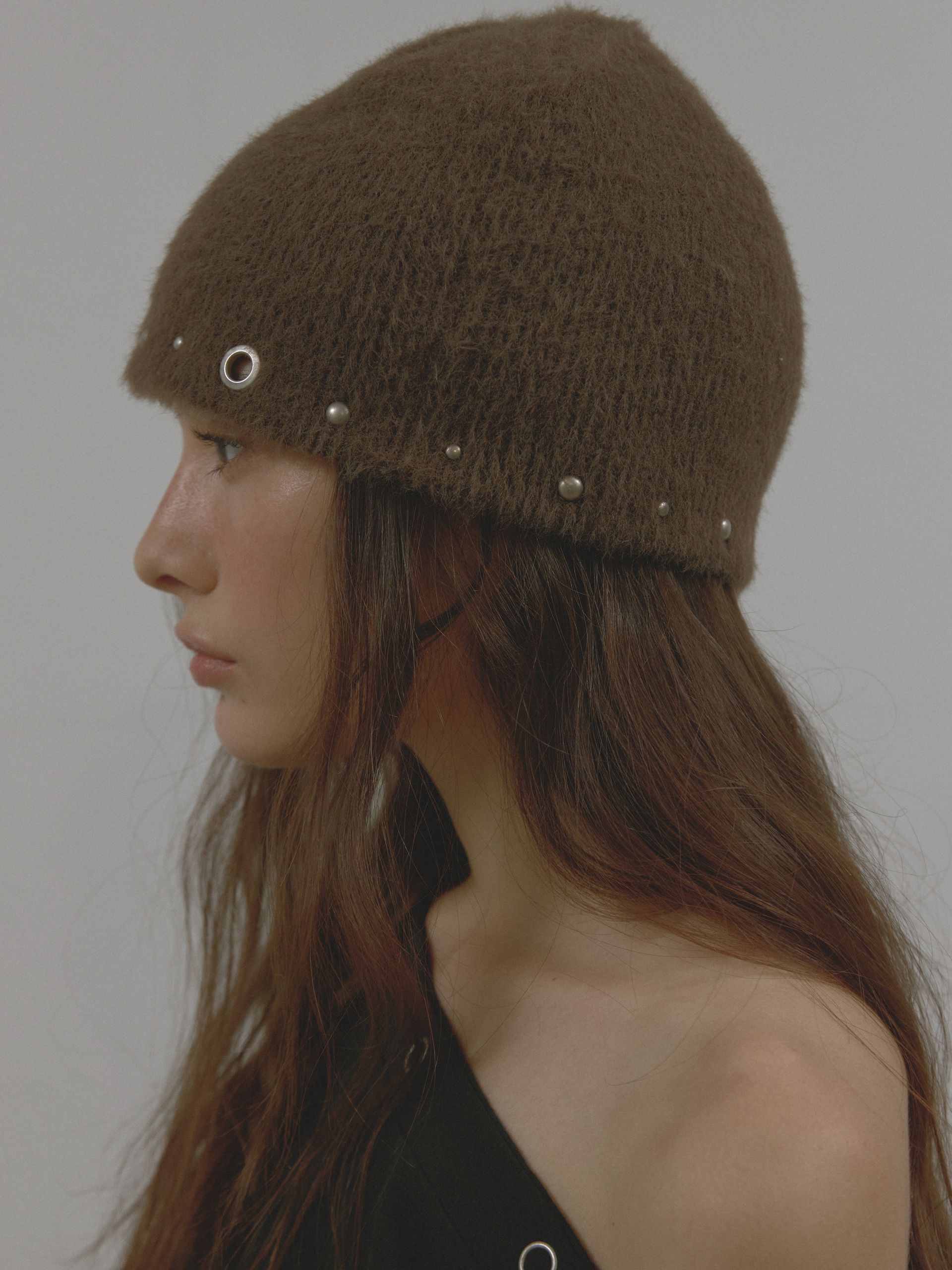 EDGE STUD KNIT BEANIE (BROWN) (11월 20일 예약배송)