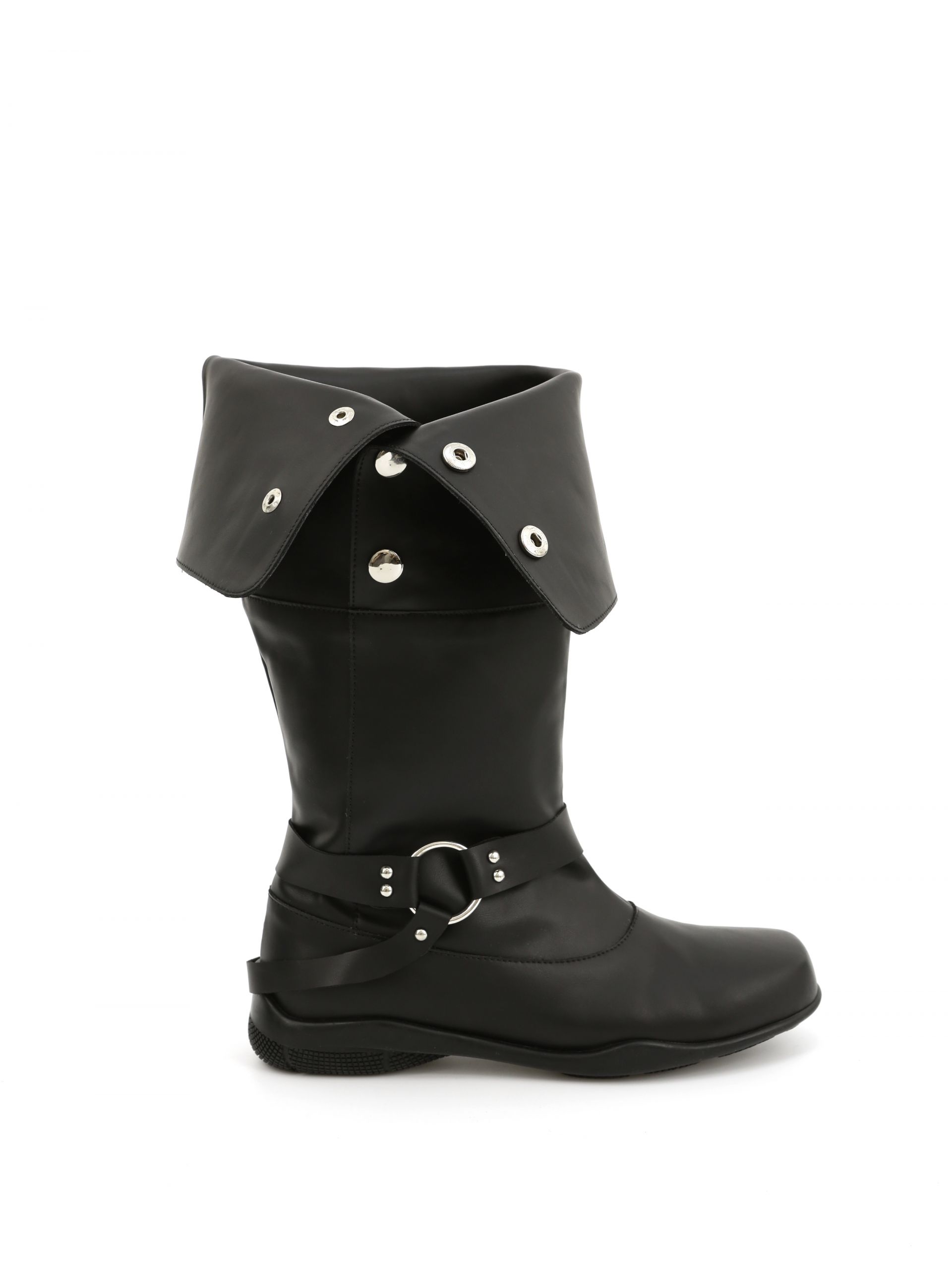 FOLD-OVER LEATHER BOOTS (BLACK)