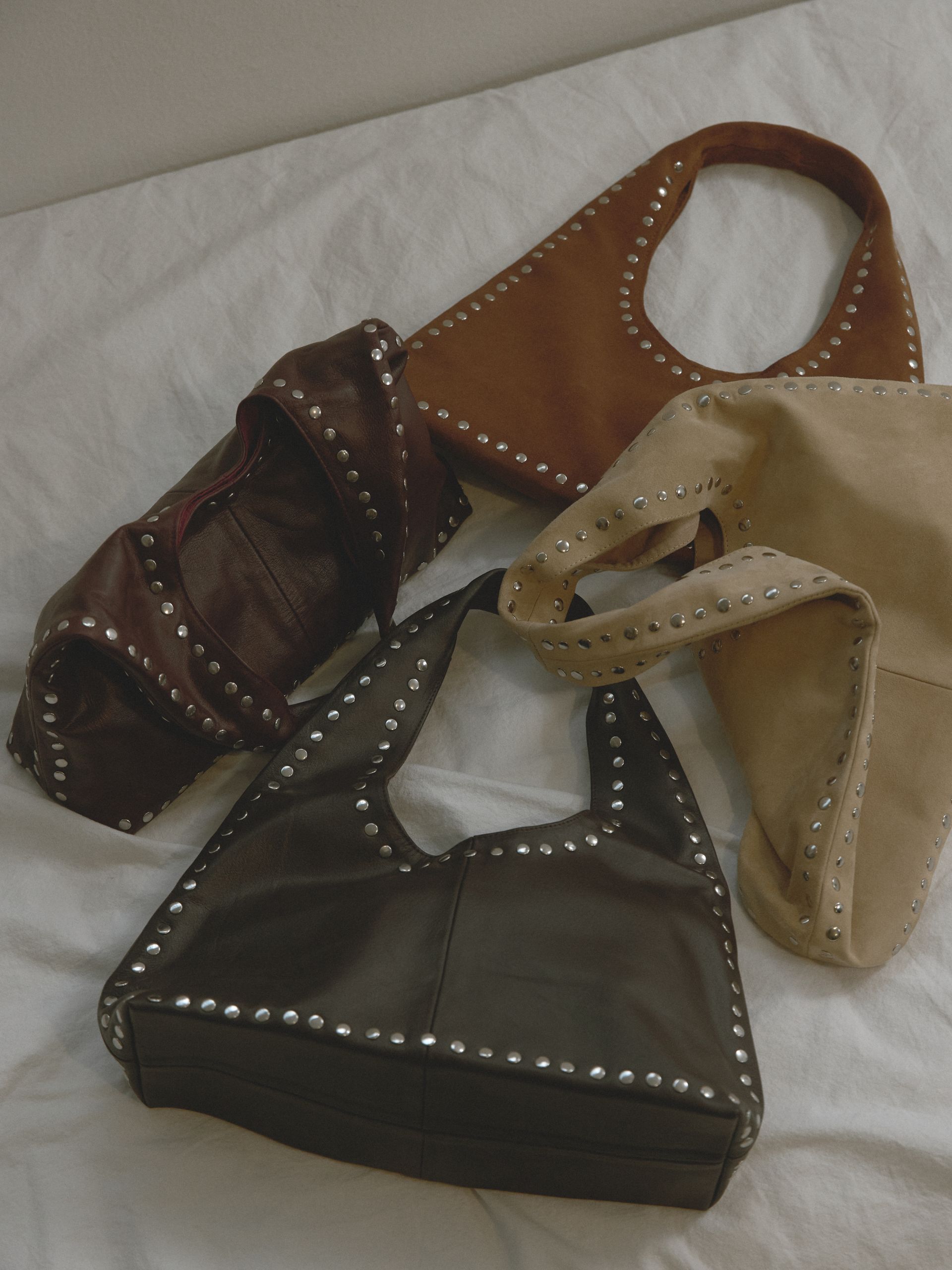 부드러운 리얼 스웨이드 소재에 실버 스터드로 포인트를 준 토트백.