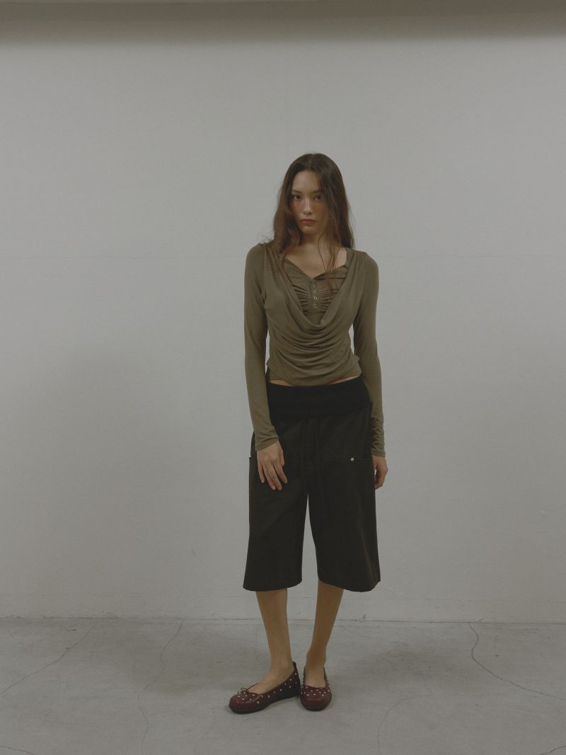 넥 라인의 속헤리 마감으로 안정감 있게 착용됩니다.