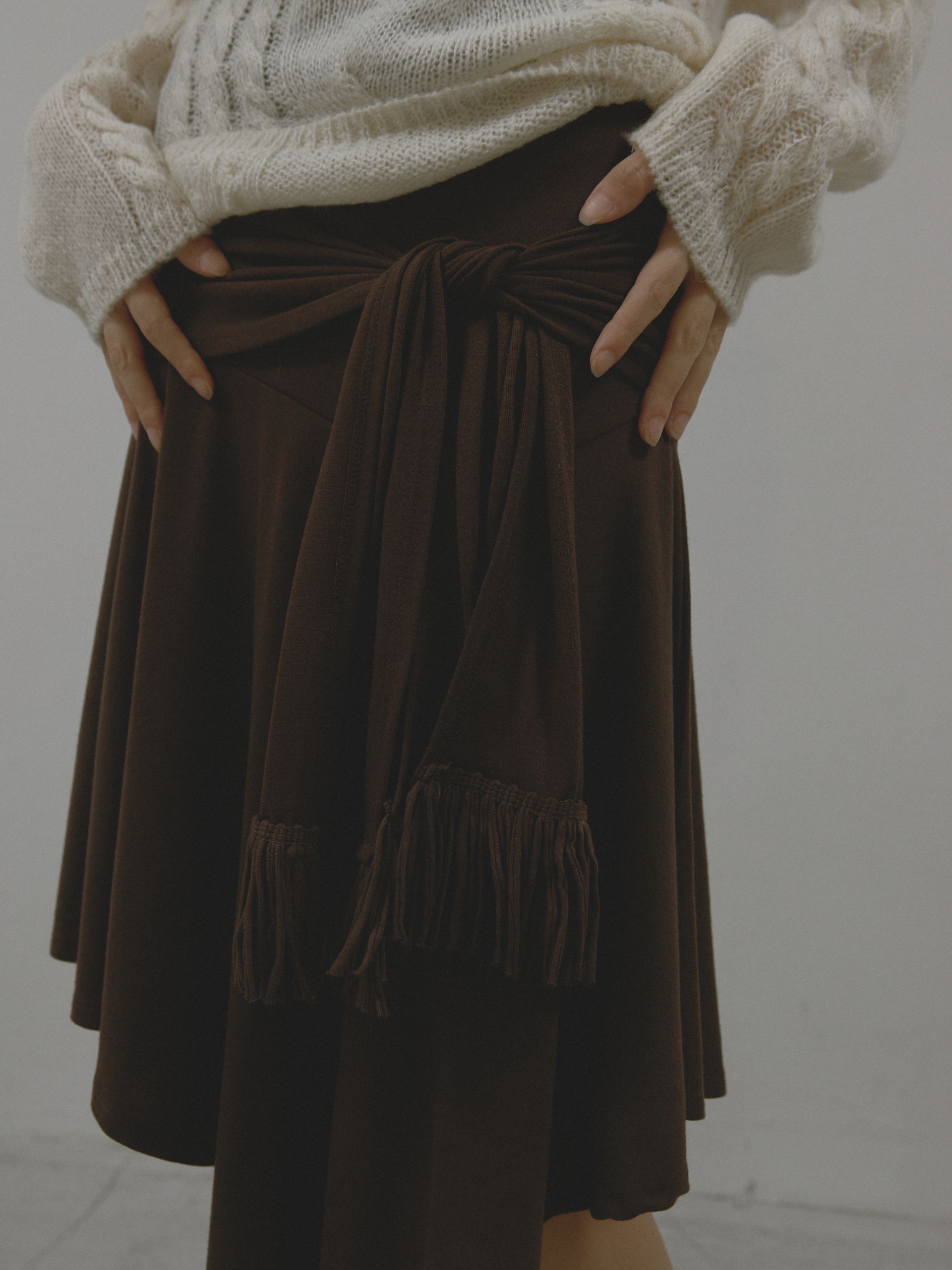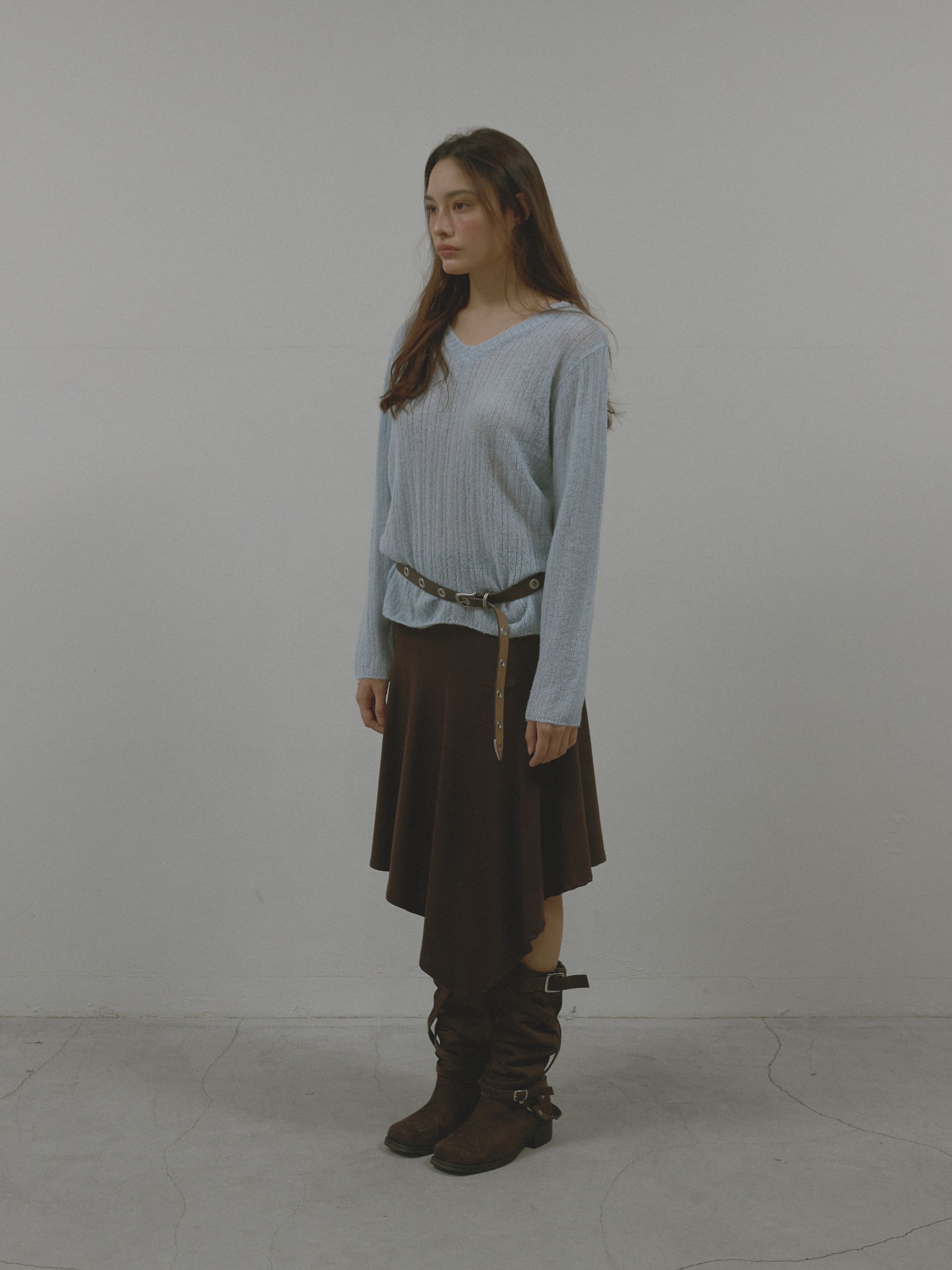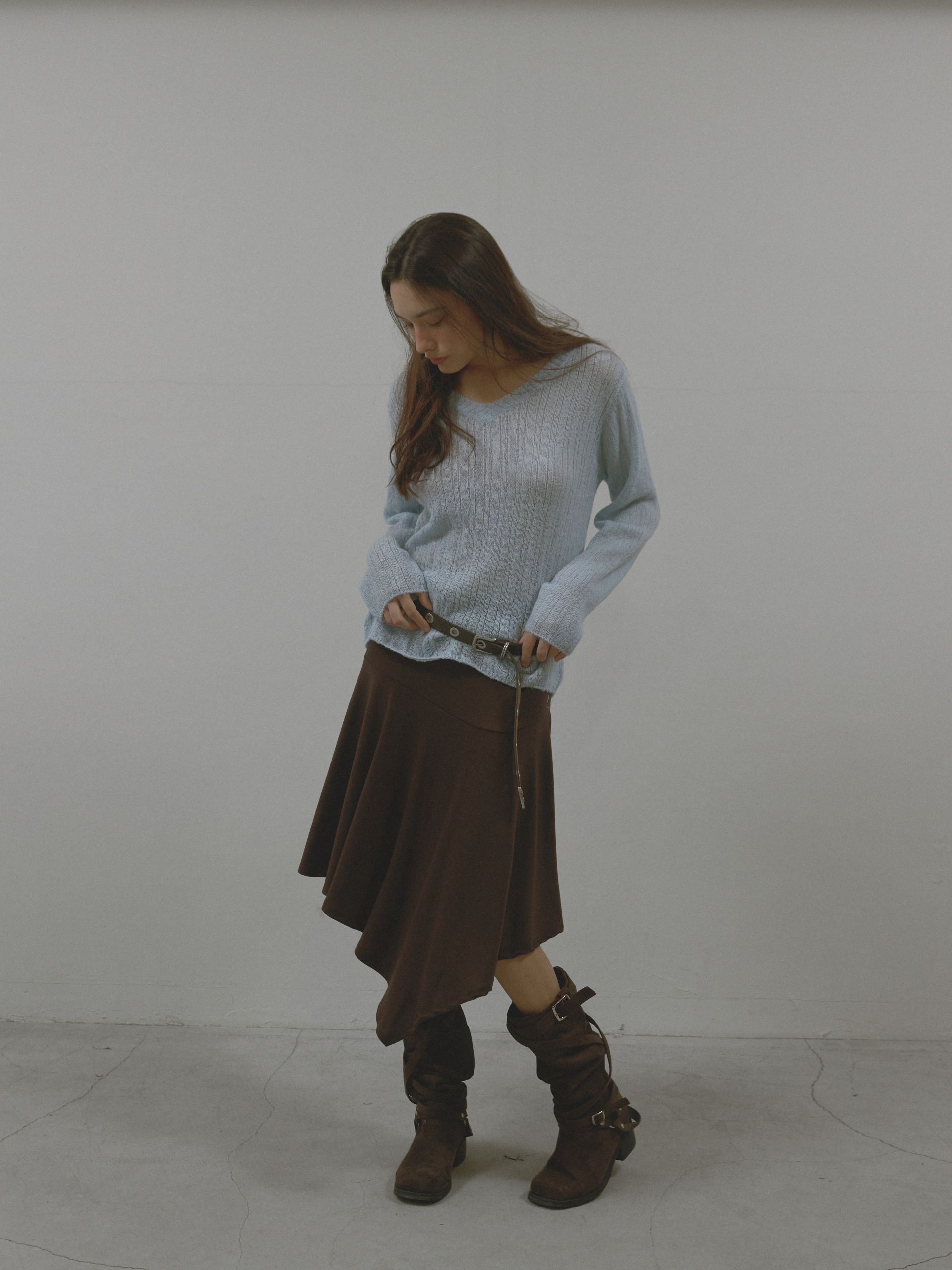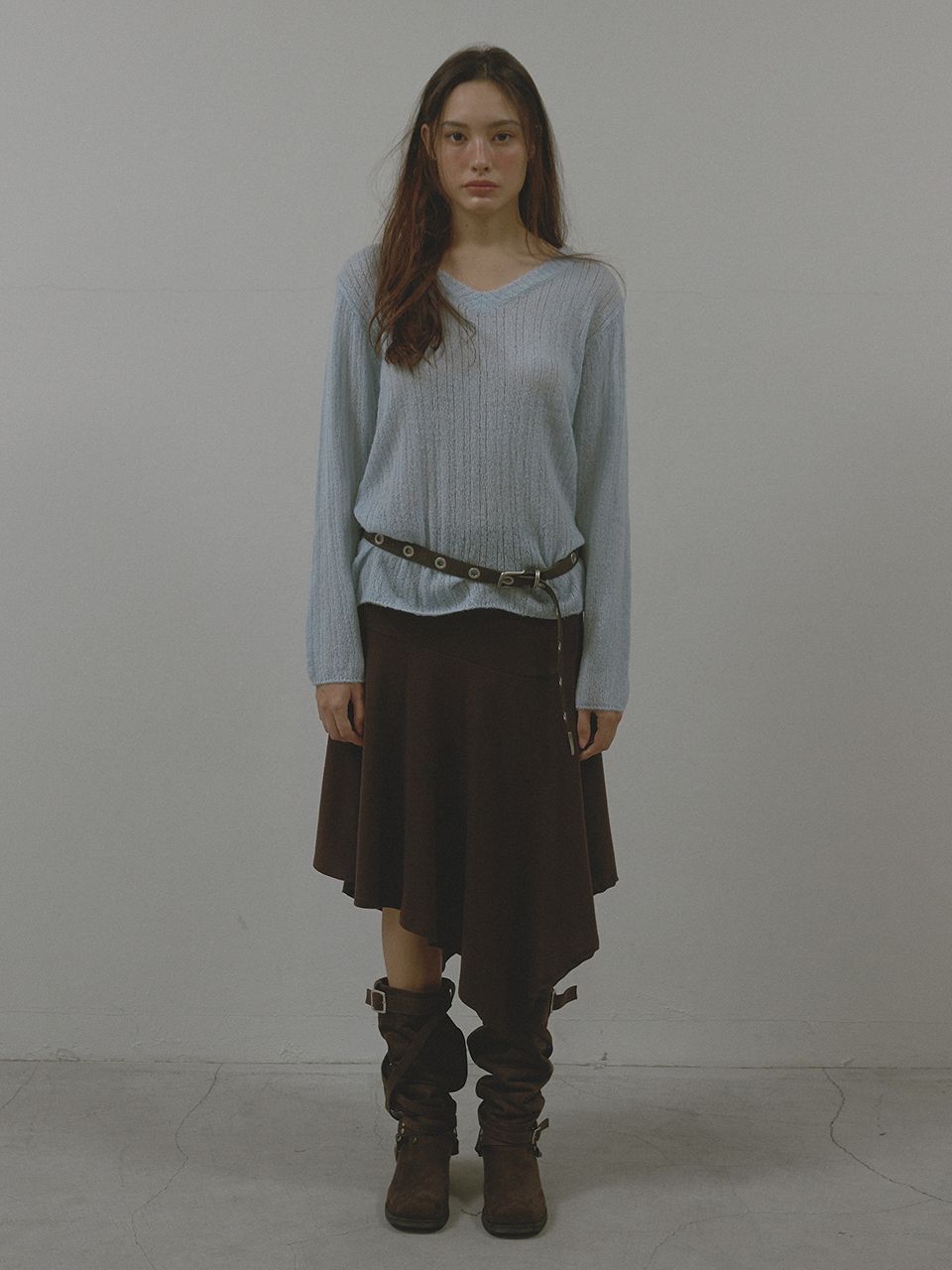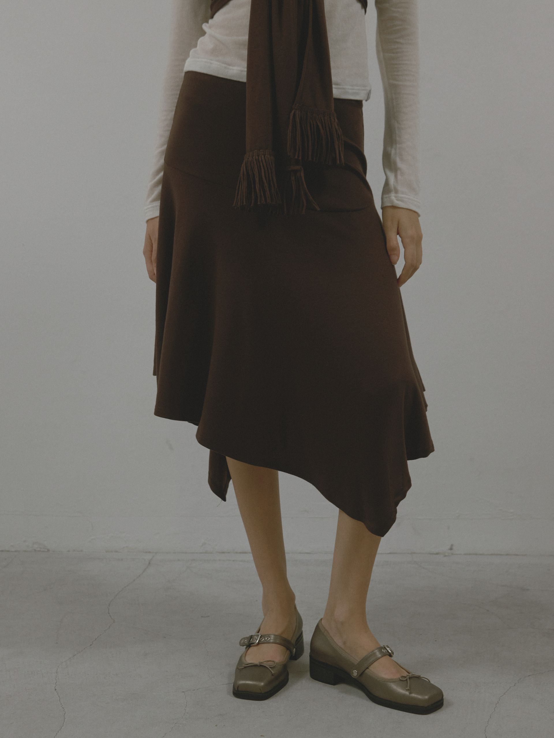 언밸런스한 밑단 라인이 돋보이는 스커트.