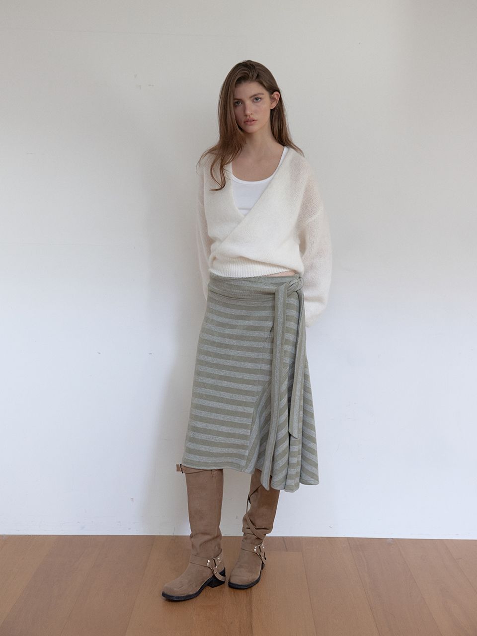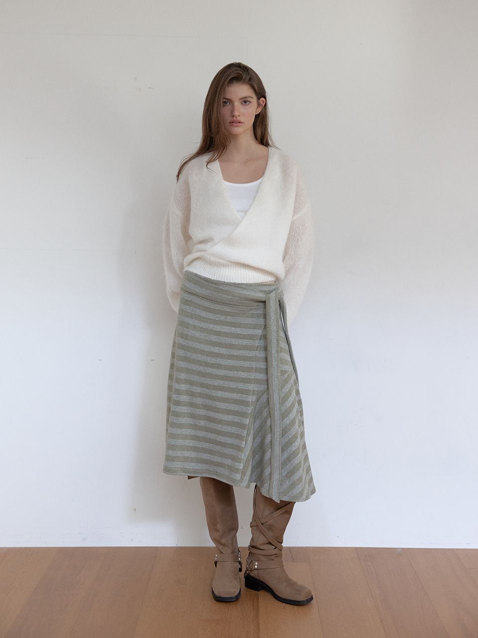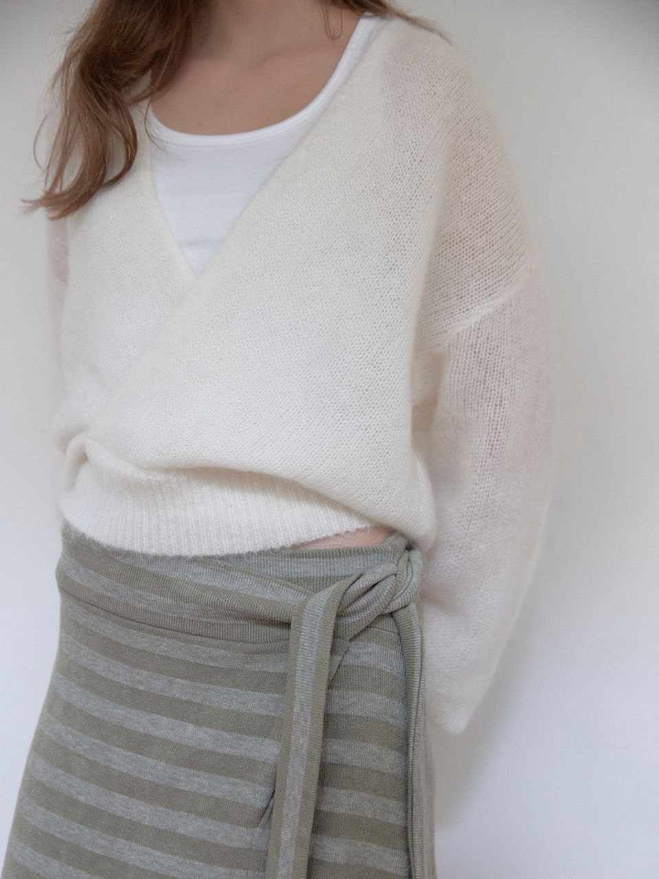 부드러운 니트 소재의 랩 니트입니다.