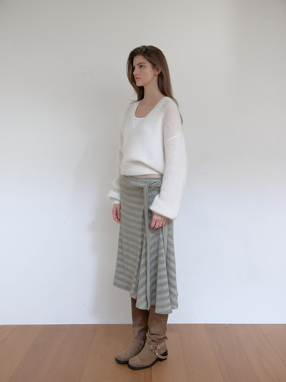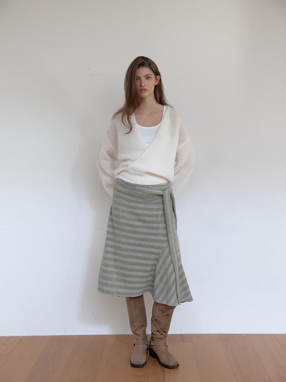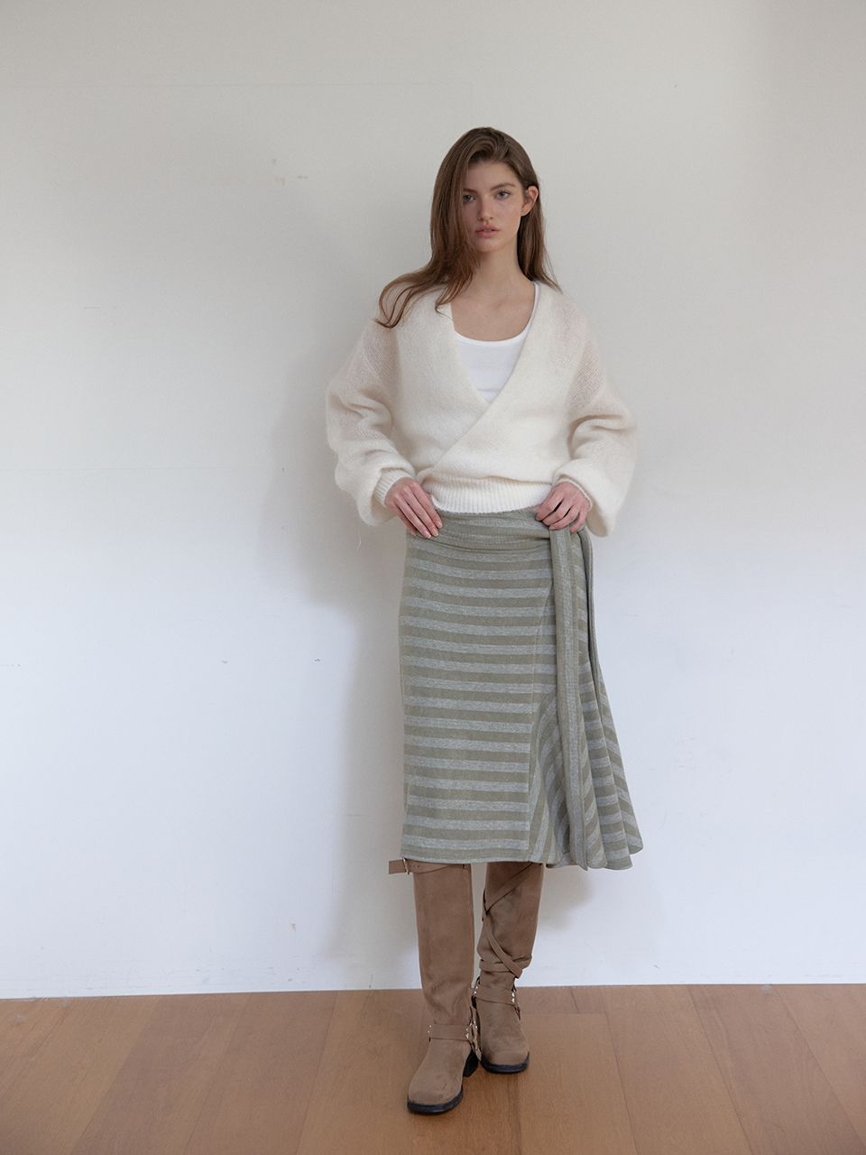 부드러운 니트 소재의 랩 니트입니다.