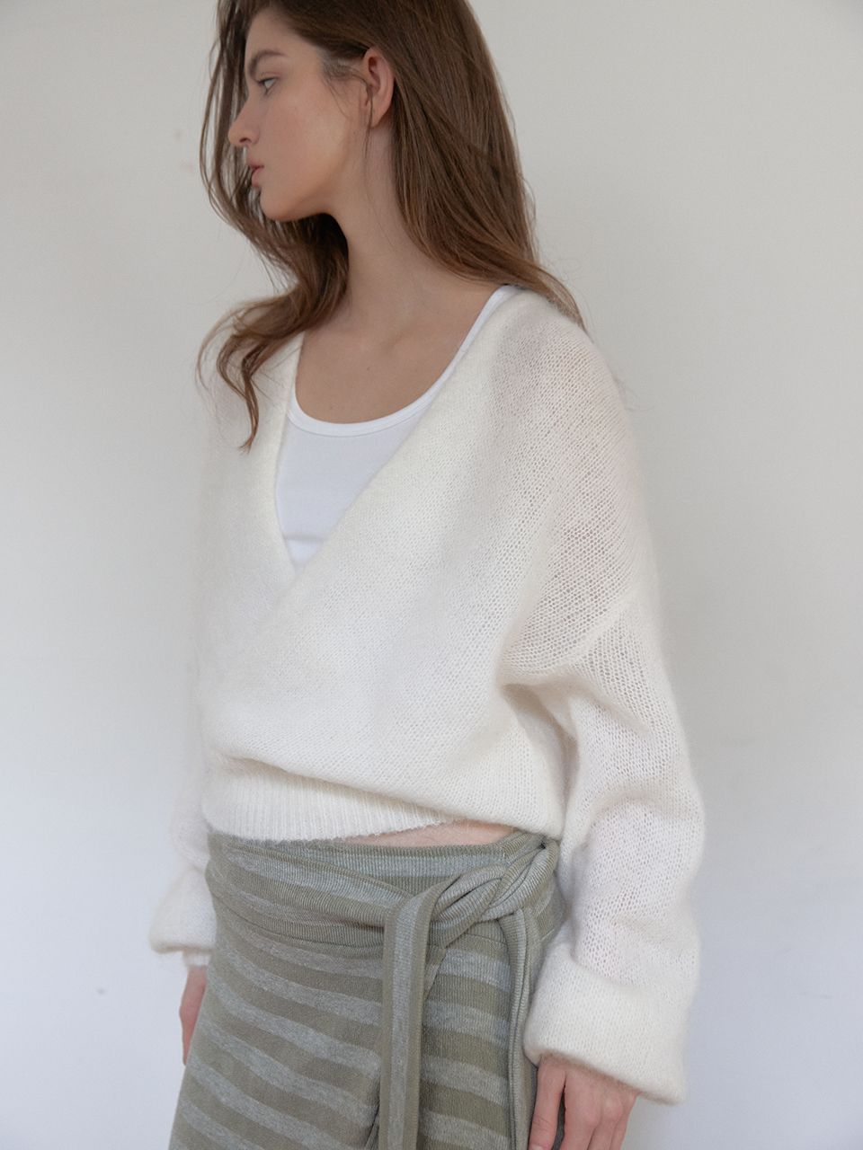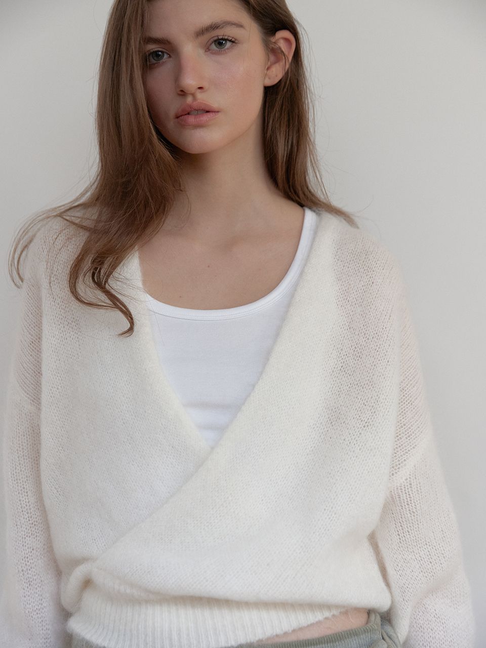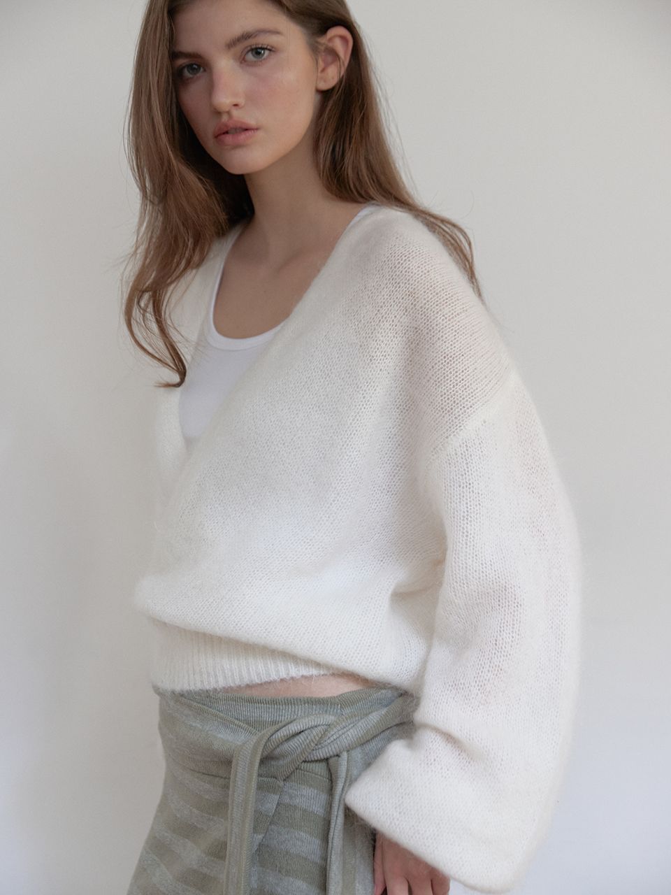 자연스럽게 감기는 브이넥 라인과 여유 있는 실루엣으로,