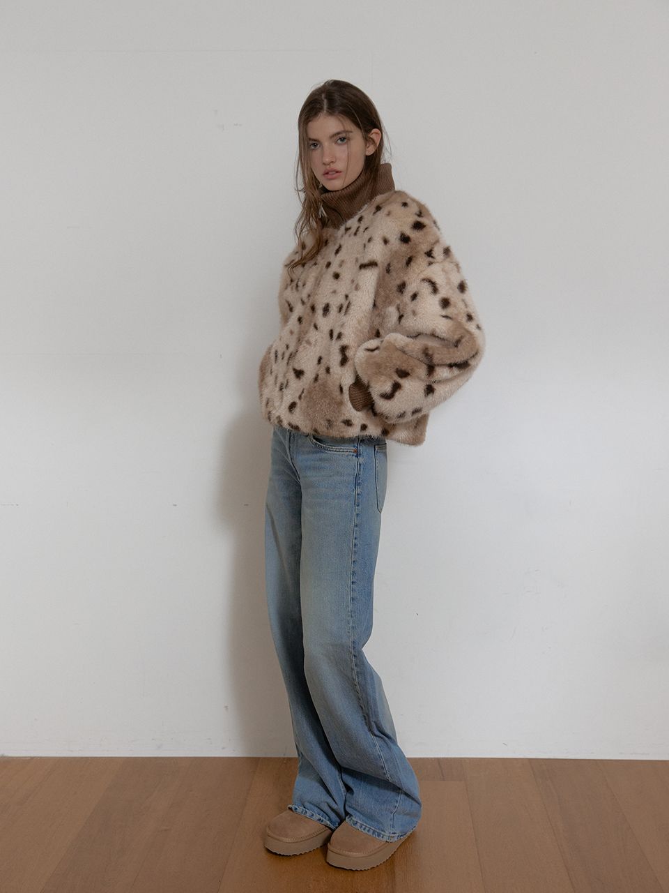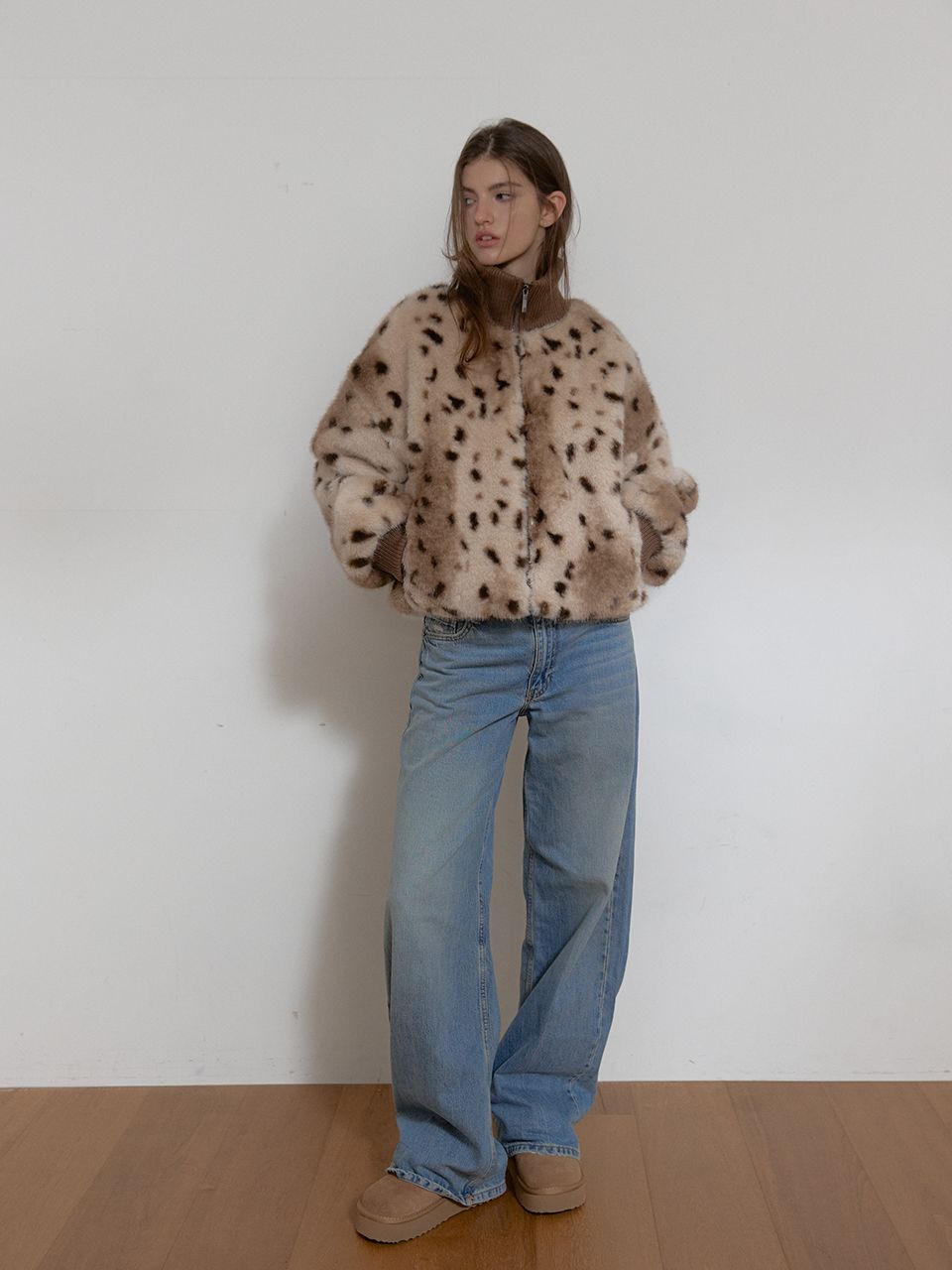 한 벌만으로도 포인트가 되는 퍼 아우터입니다.