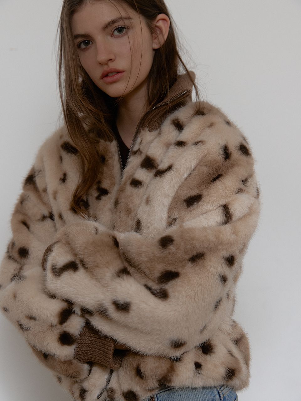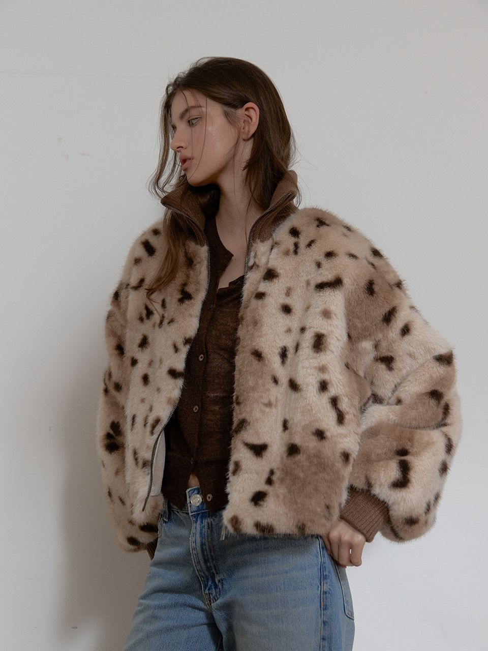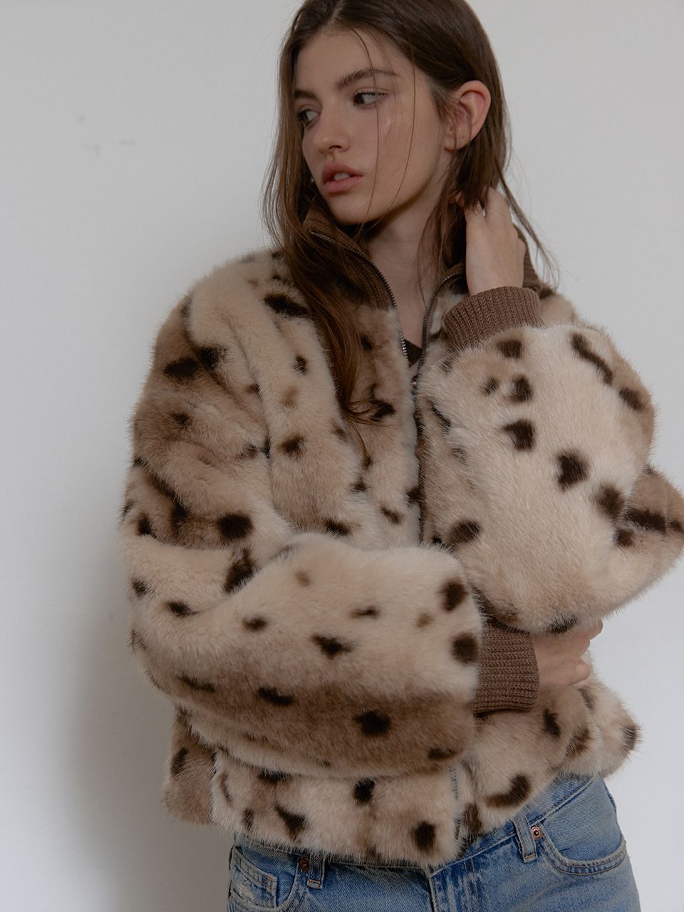 입체적인 퍼 텍스처가 돋보이는 애니멀 퍼 점퍼입니다.