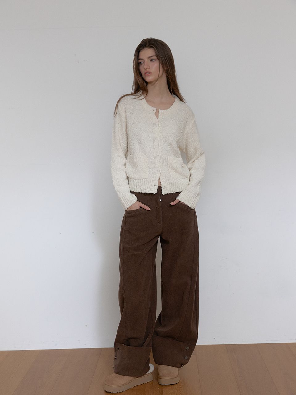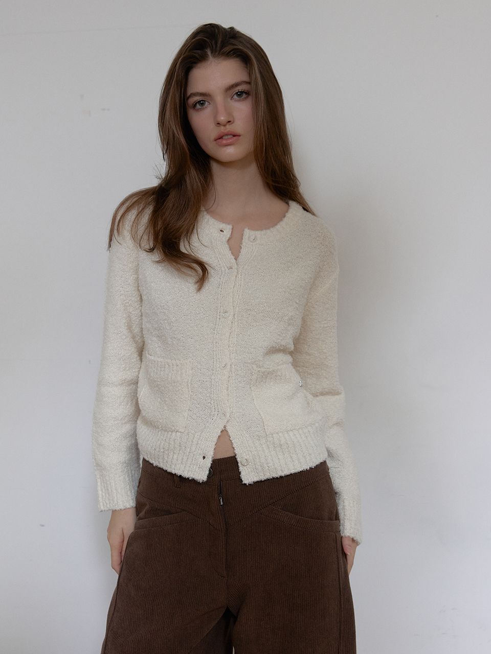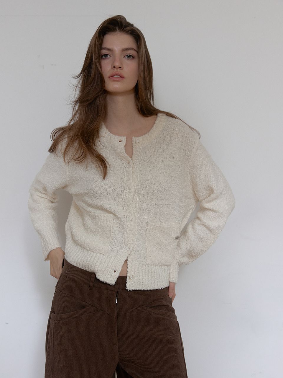 포근한 부클 텍스처로 완성된 버튼 가디건입니다.
