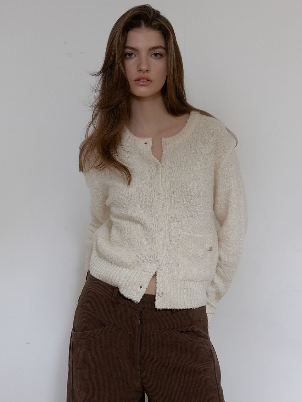 BOUCLE TEXTURE CARDIGAN (IVORY)