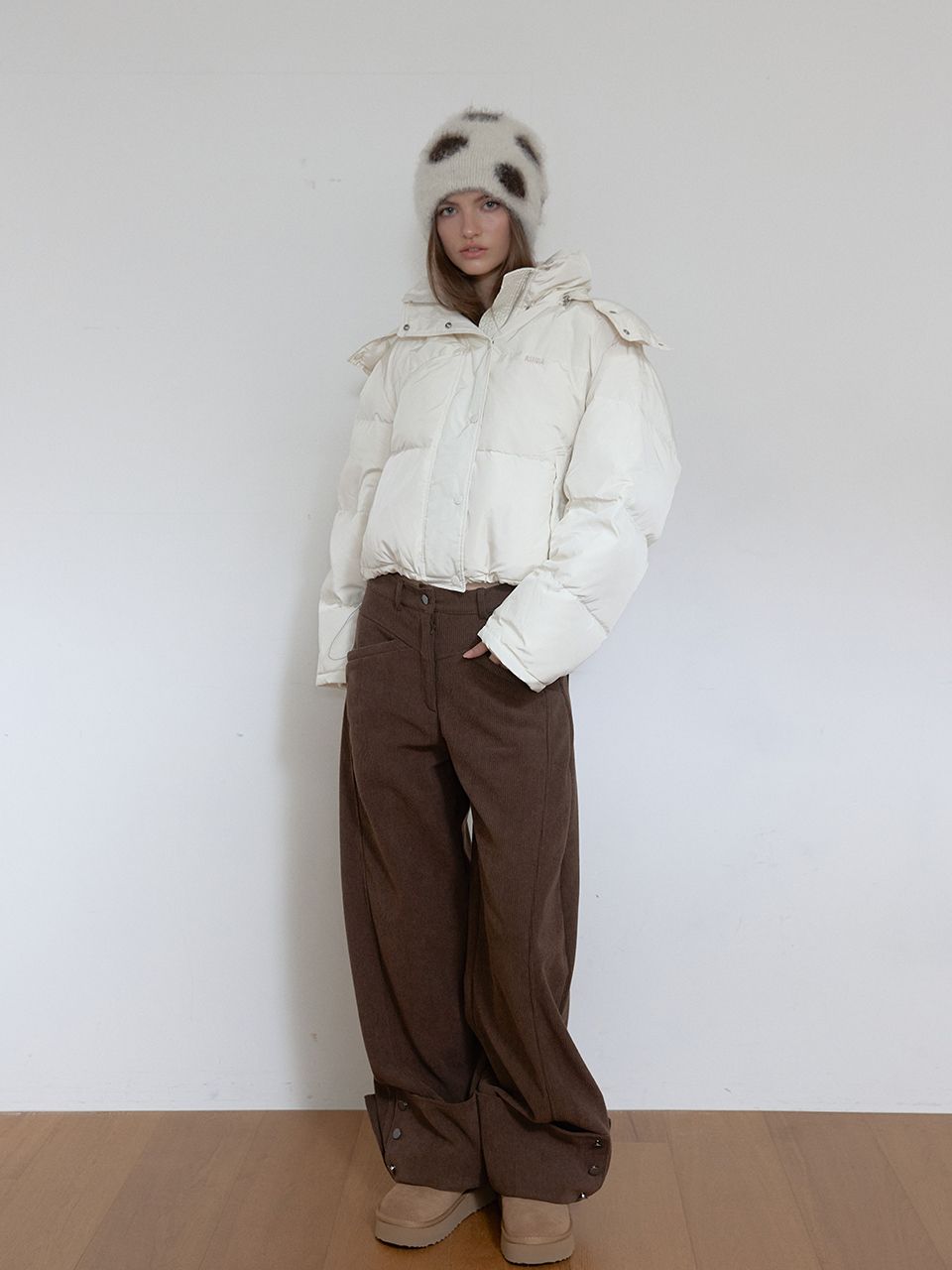 코듀로이 텍스처와 털 안감으로 보온성이 좋은 겨울 팬츠입니다.