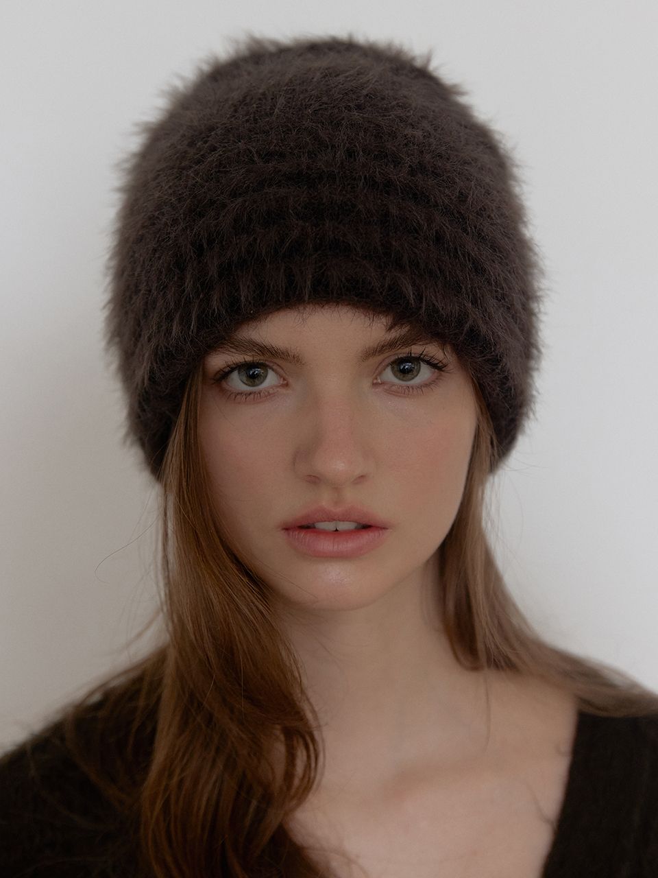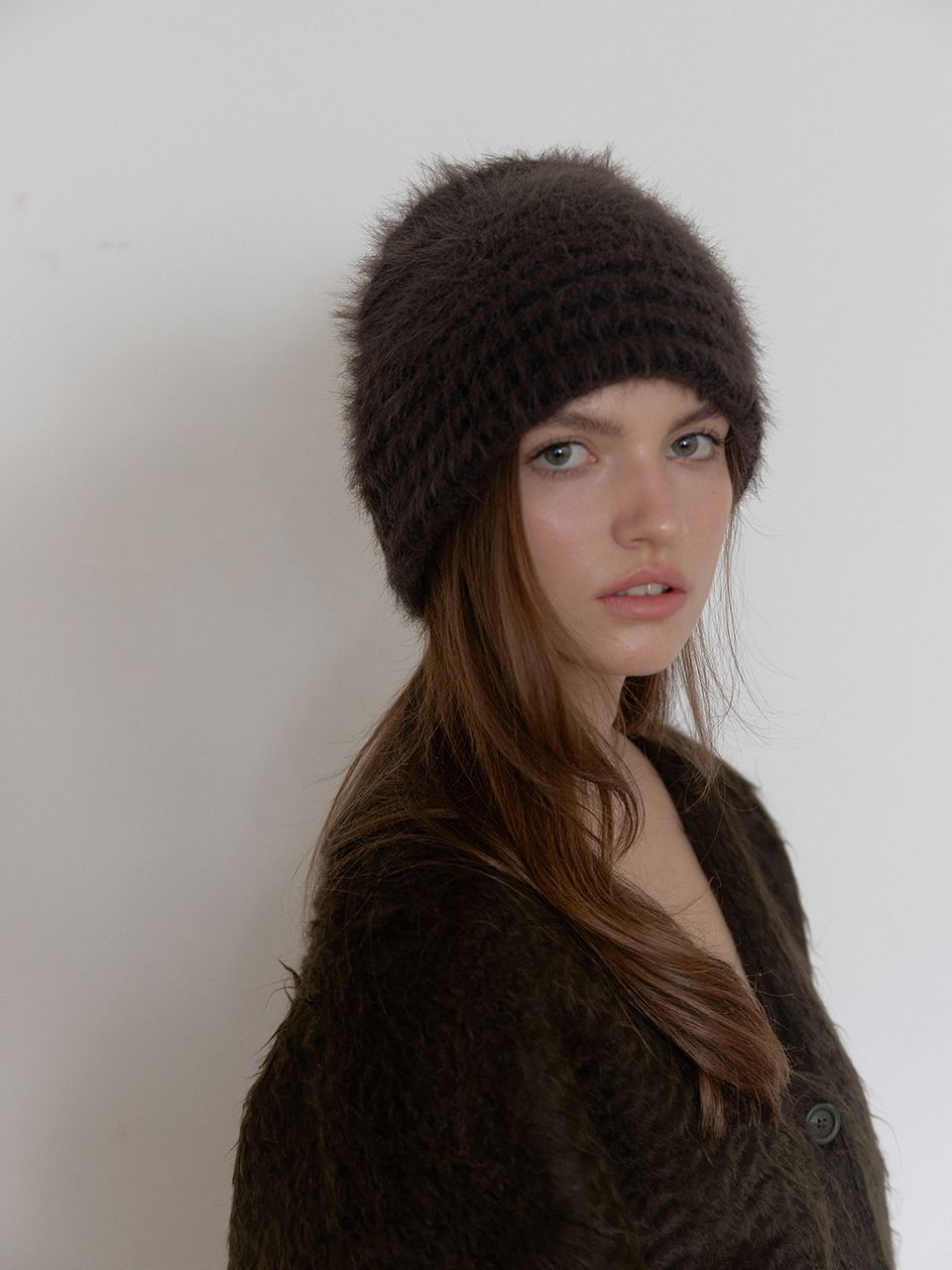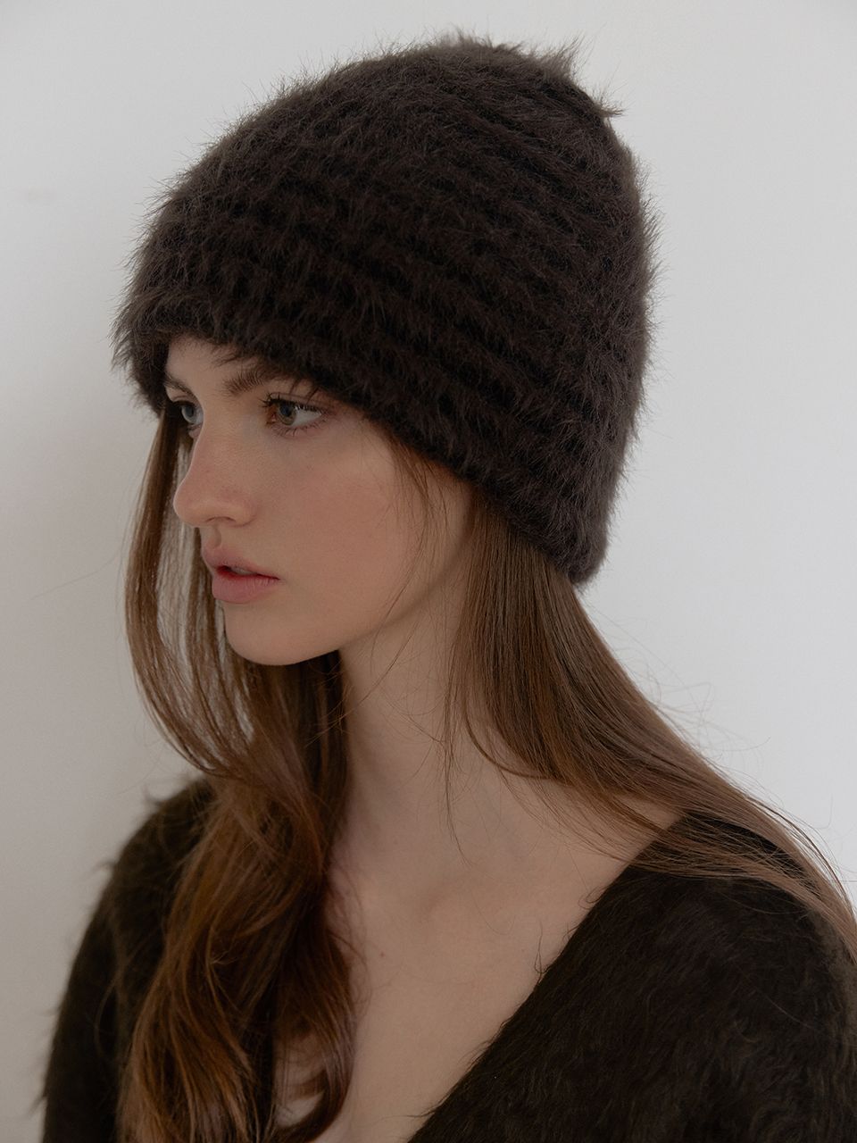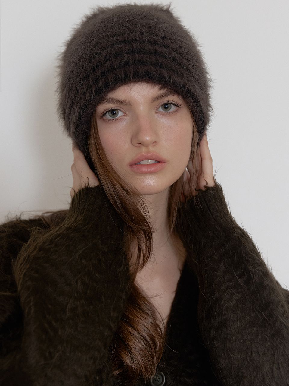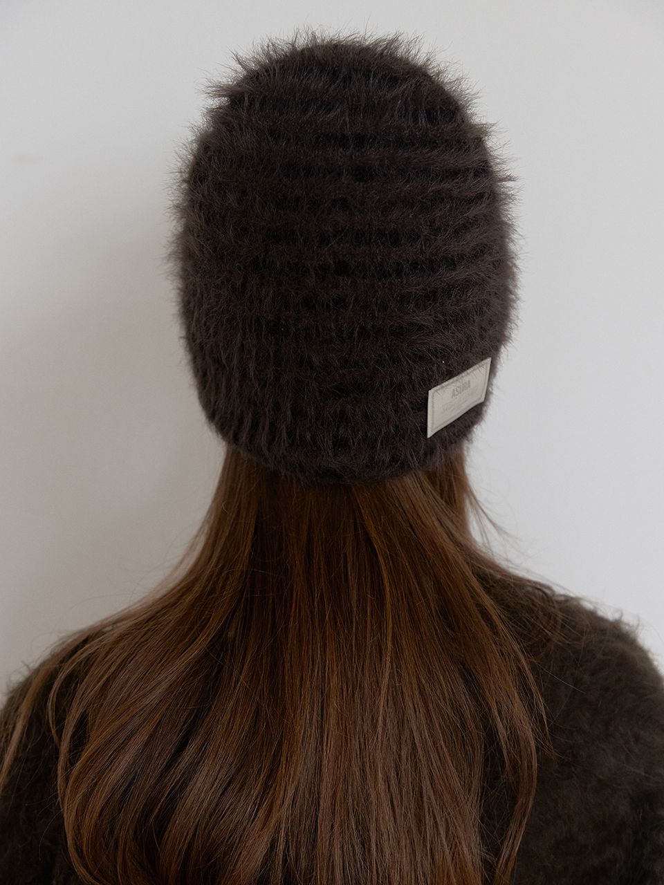 헤어리한 소재감의 스트라이프 니트 비니입니다.
