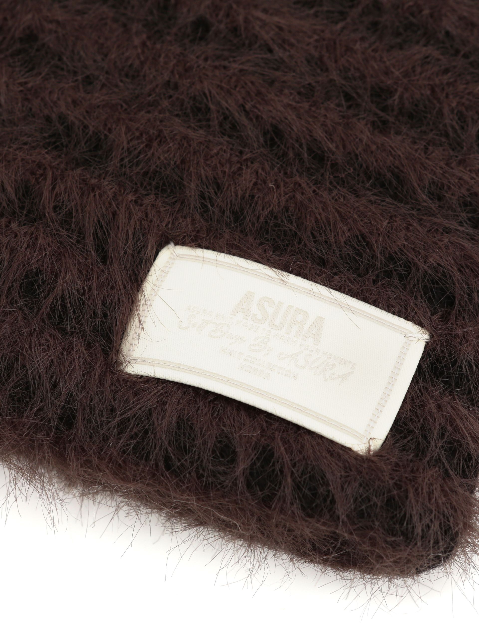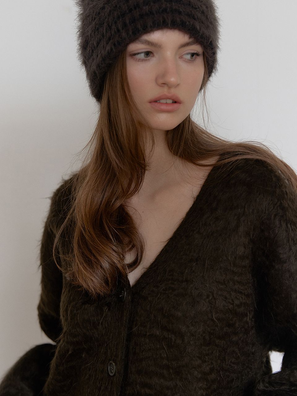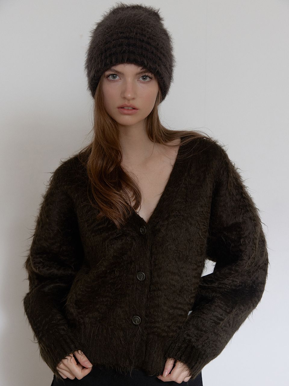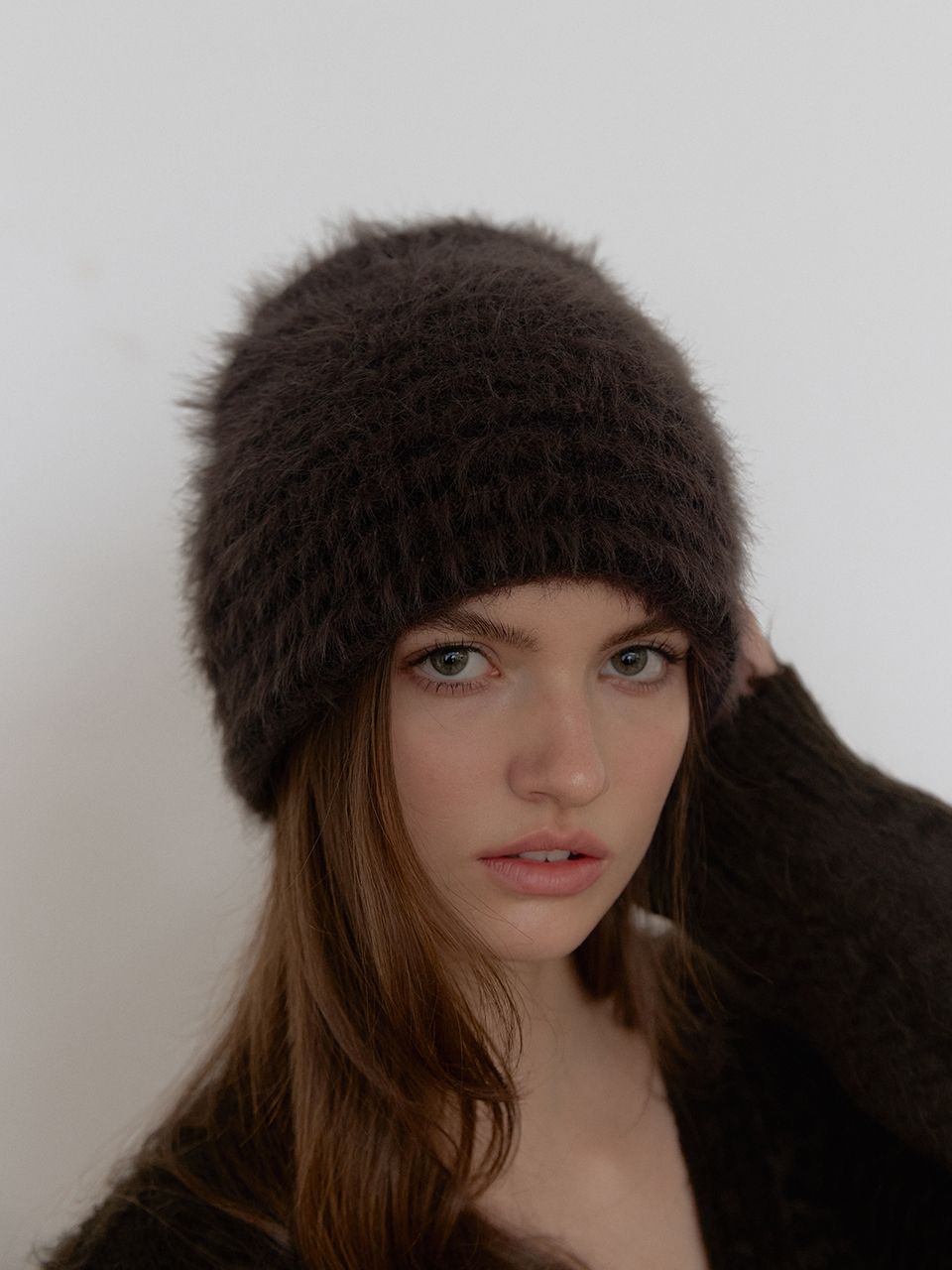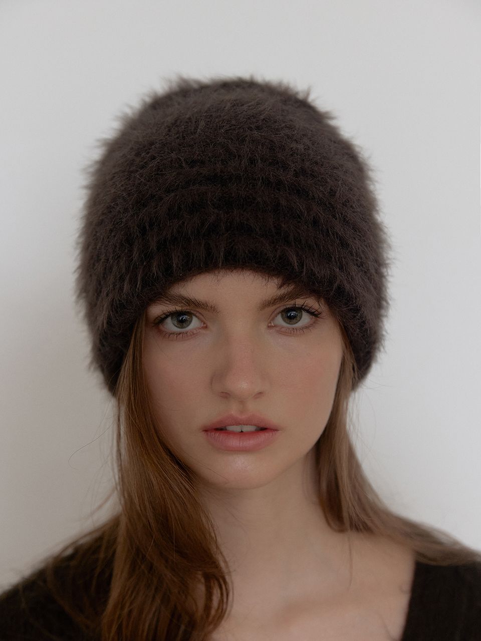 헤어리한 소재감의 스트라이프 니트 비니입니다.