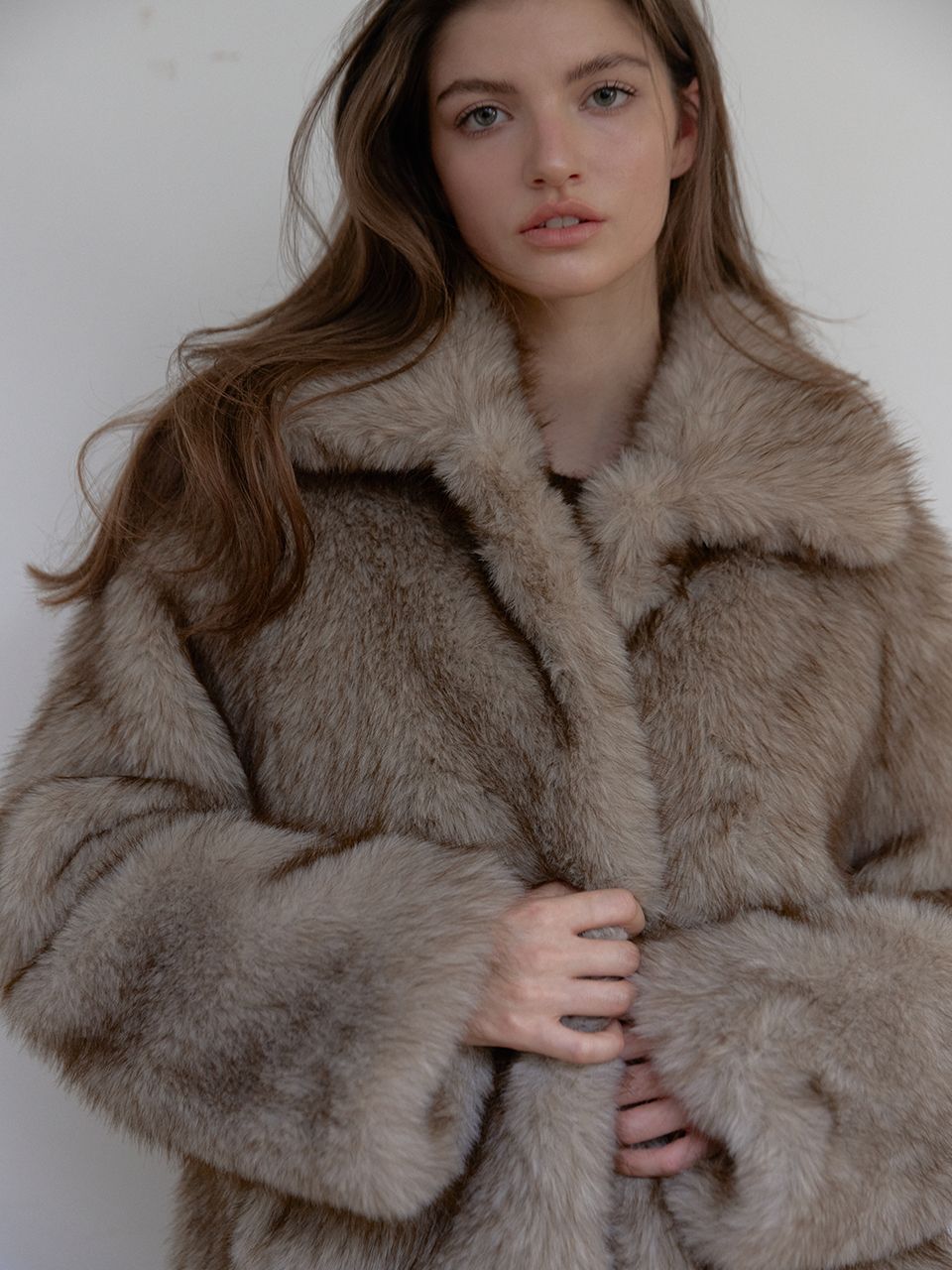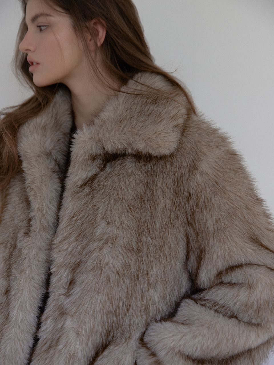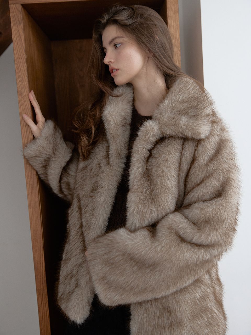 FOX MIDI FUR JACKET (BEIGE)