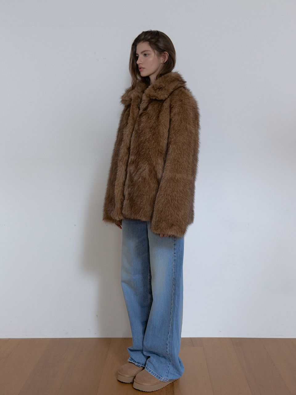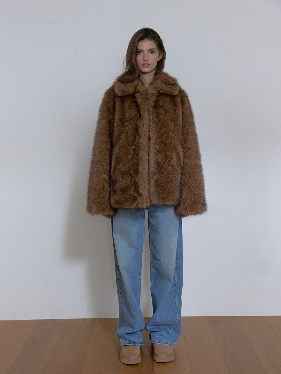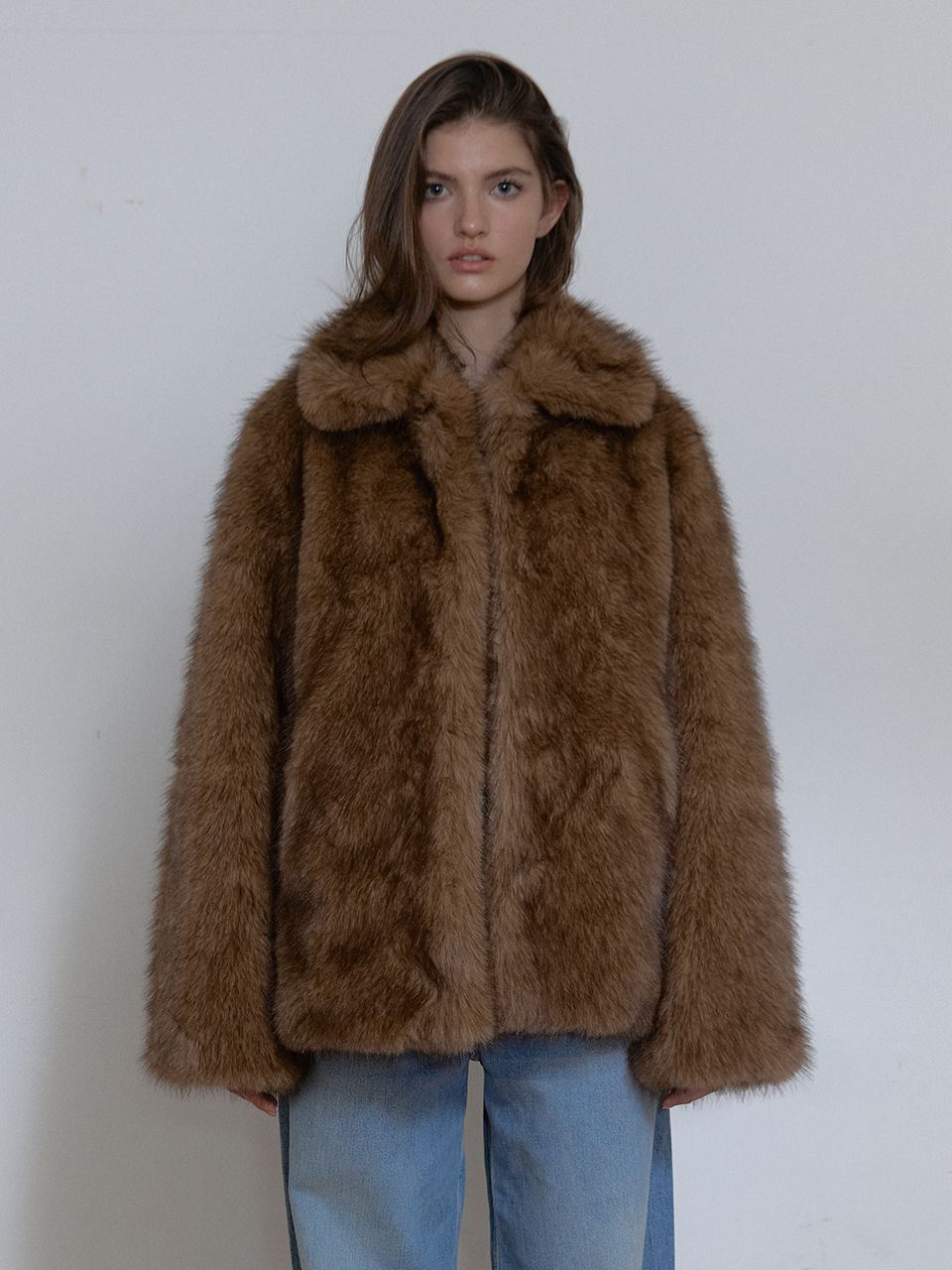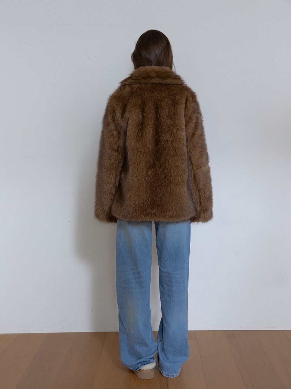 짧은 기장감으로 부담 없이 즐길 수 있는 미니 퍼 자켓입니다.