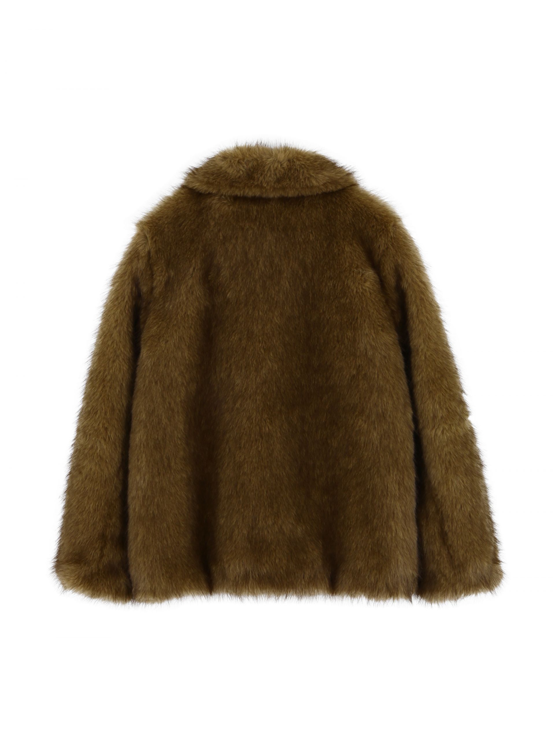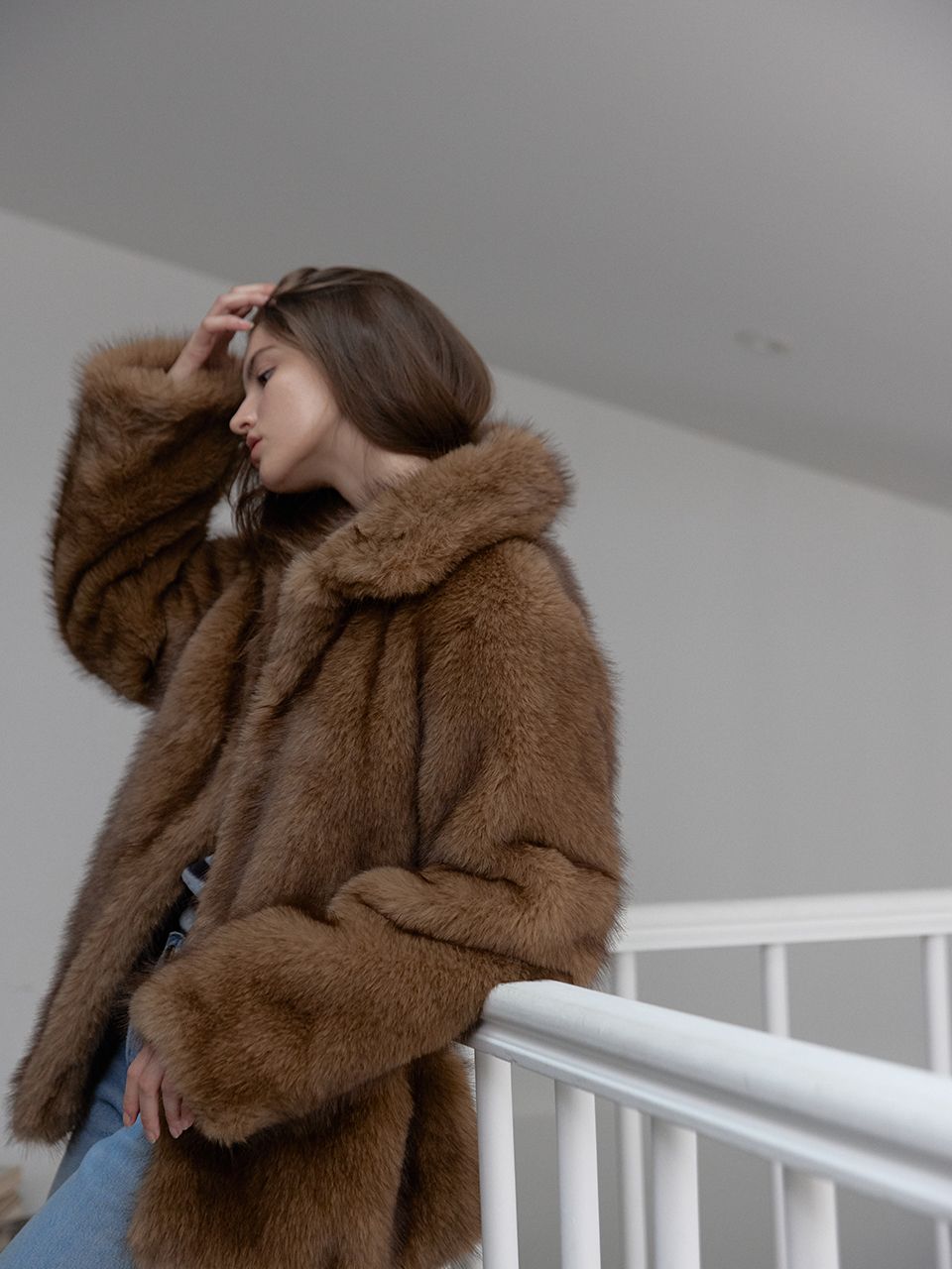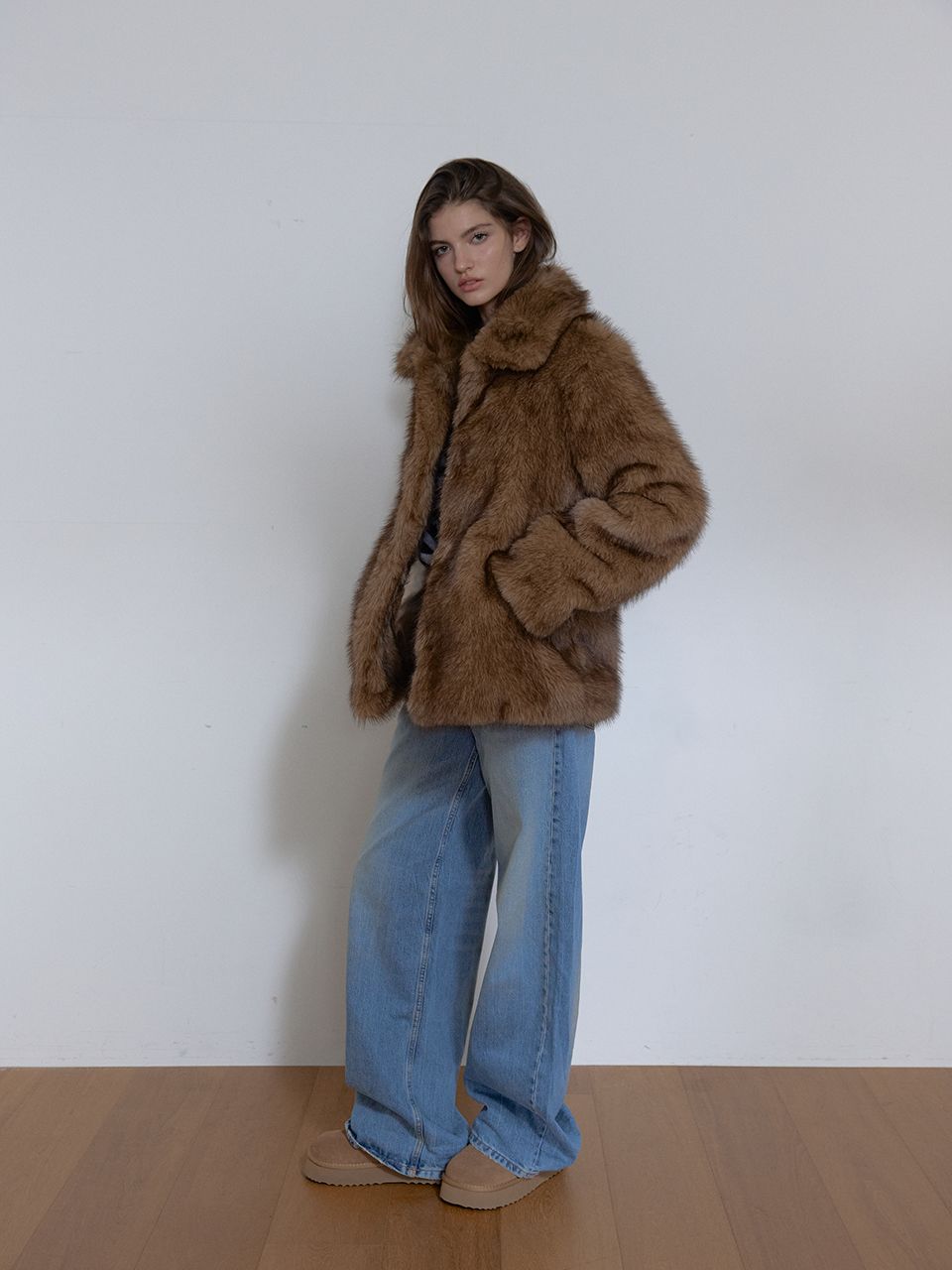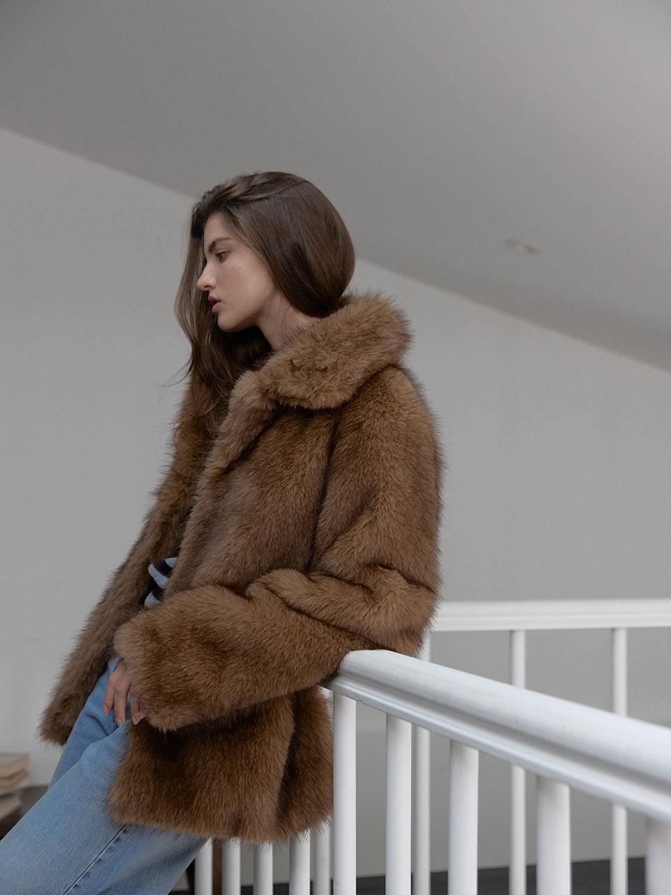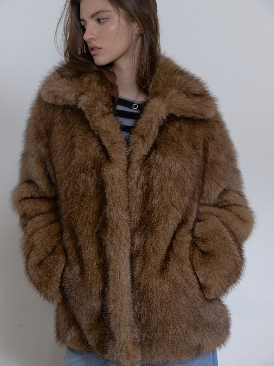 짧은 기장감으로 부담 없이 즐길 수 있는 미니 퍼 자켓입니다.