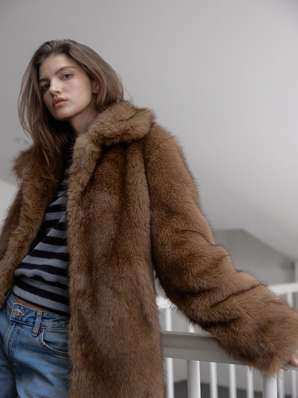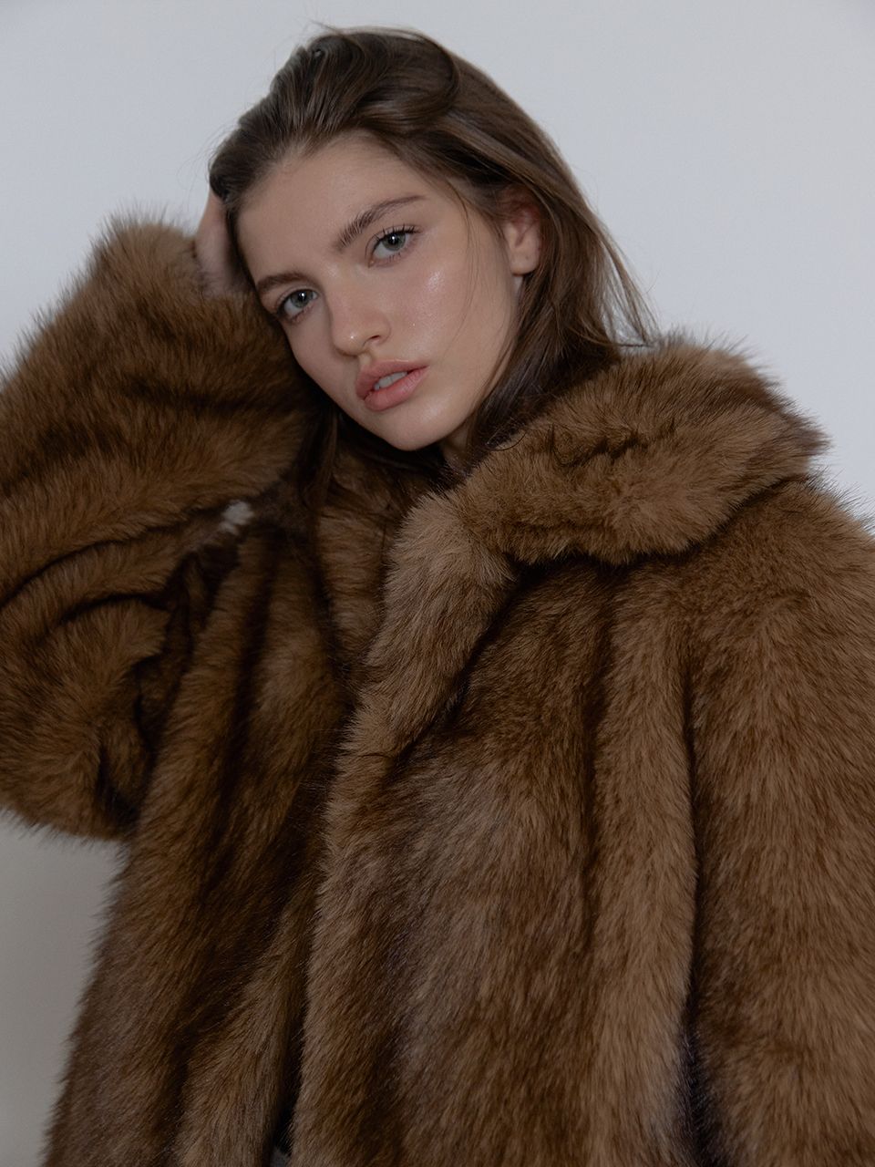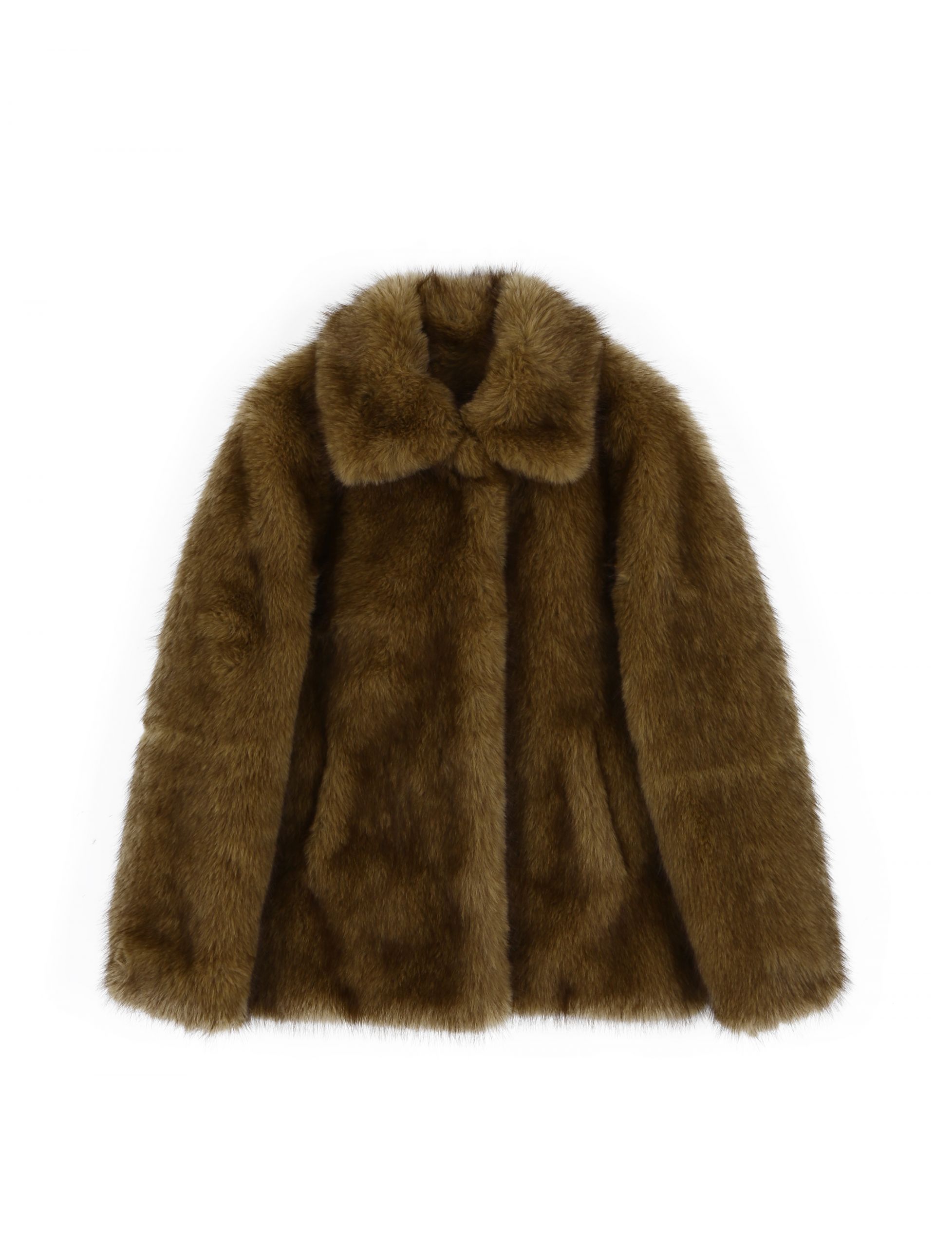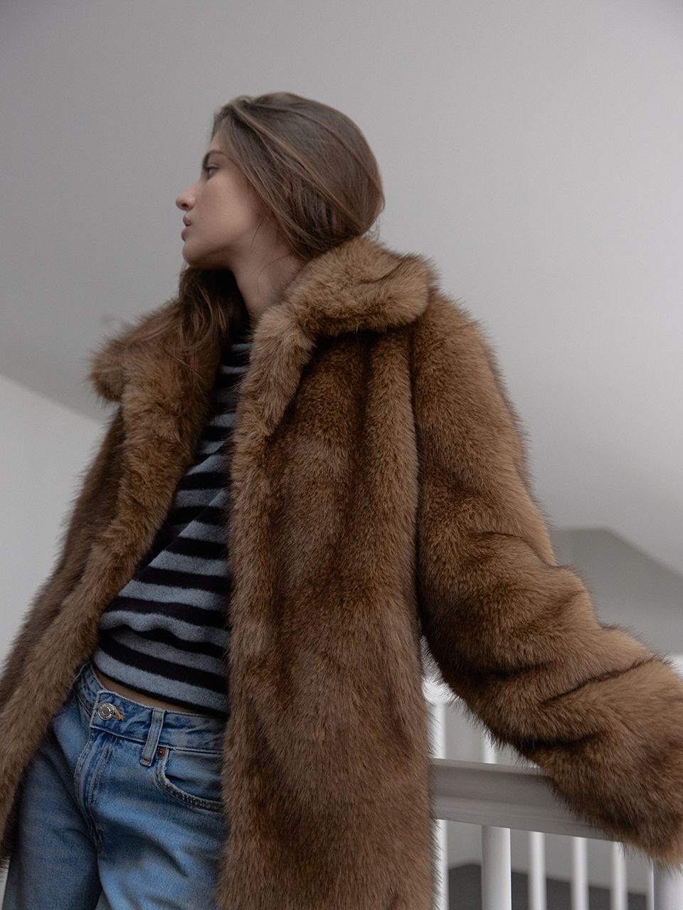 짧은 기장감으로 부담 없이 즐길 수 있는 미니 퍼 자켓입니다.