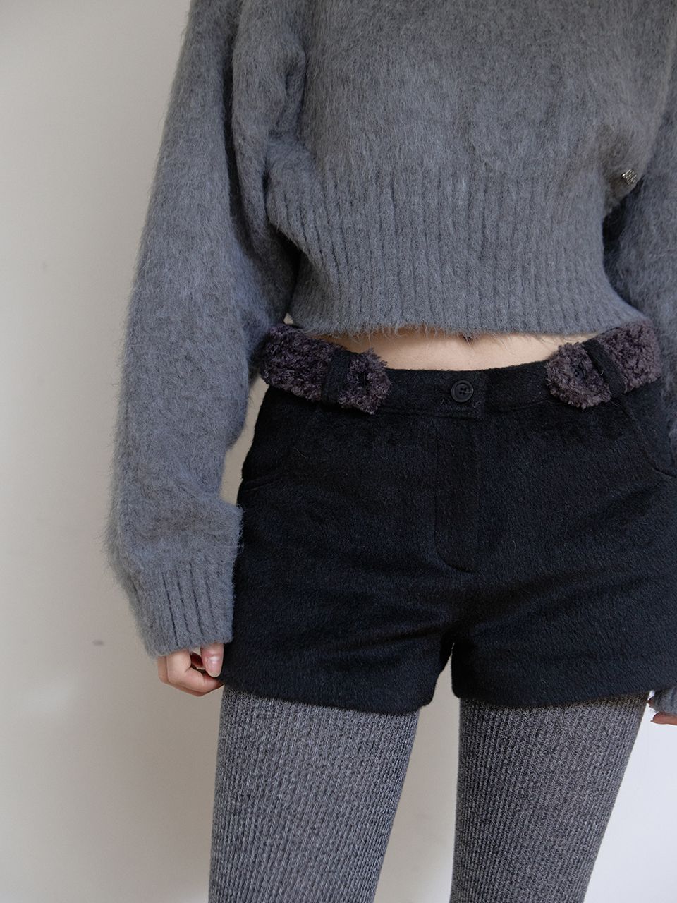 FUR BELT MICRO PANTS (BLACK)
