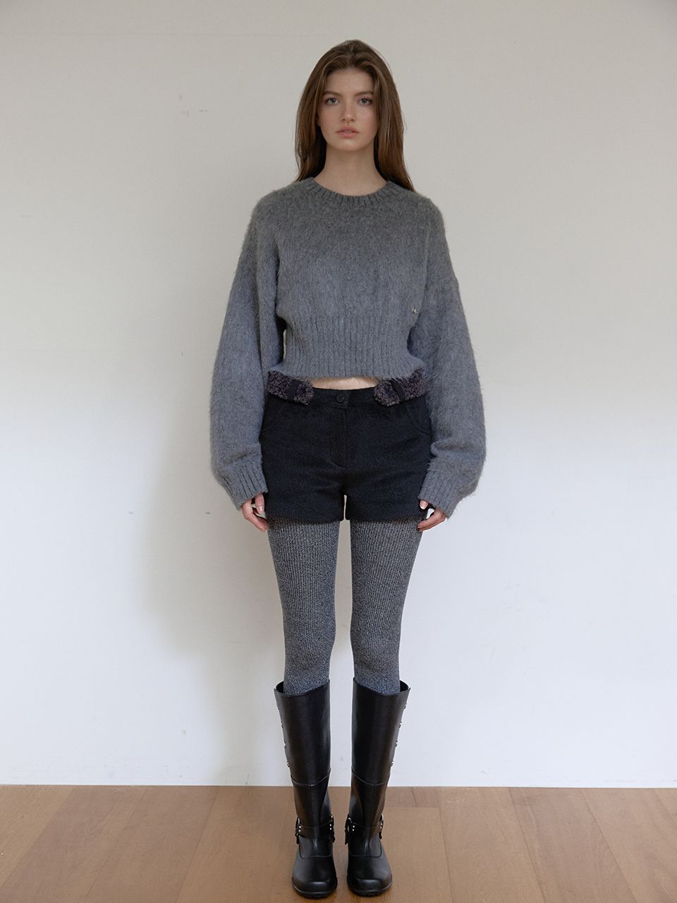 퍼 벨트 배색으로 포인트를 준 겨울 시즌 반바지입니다.
