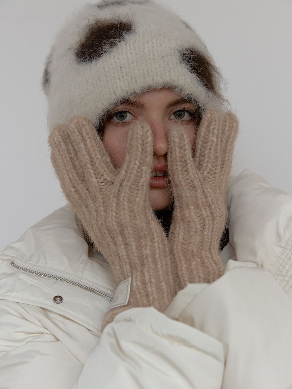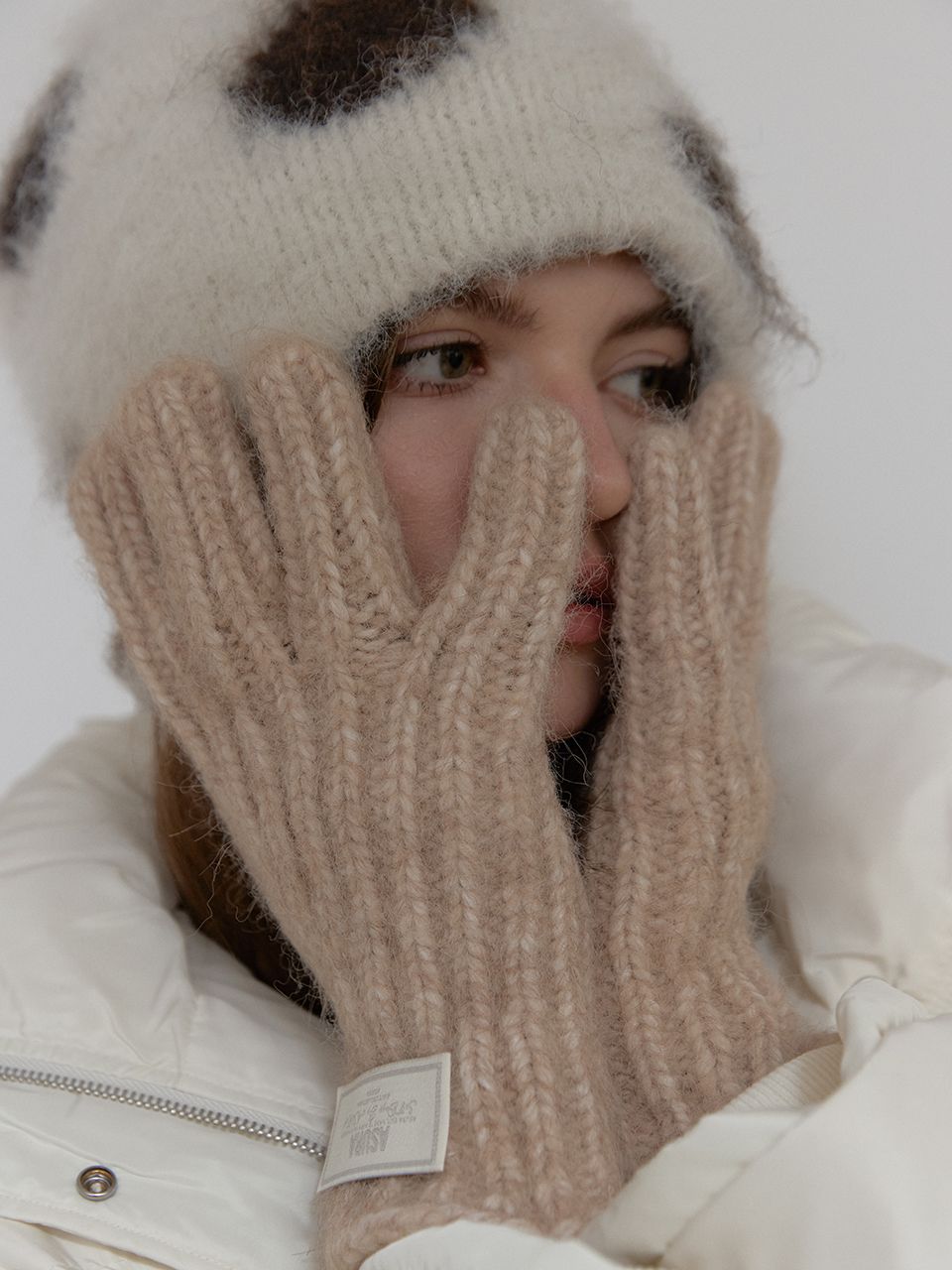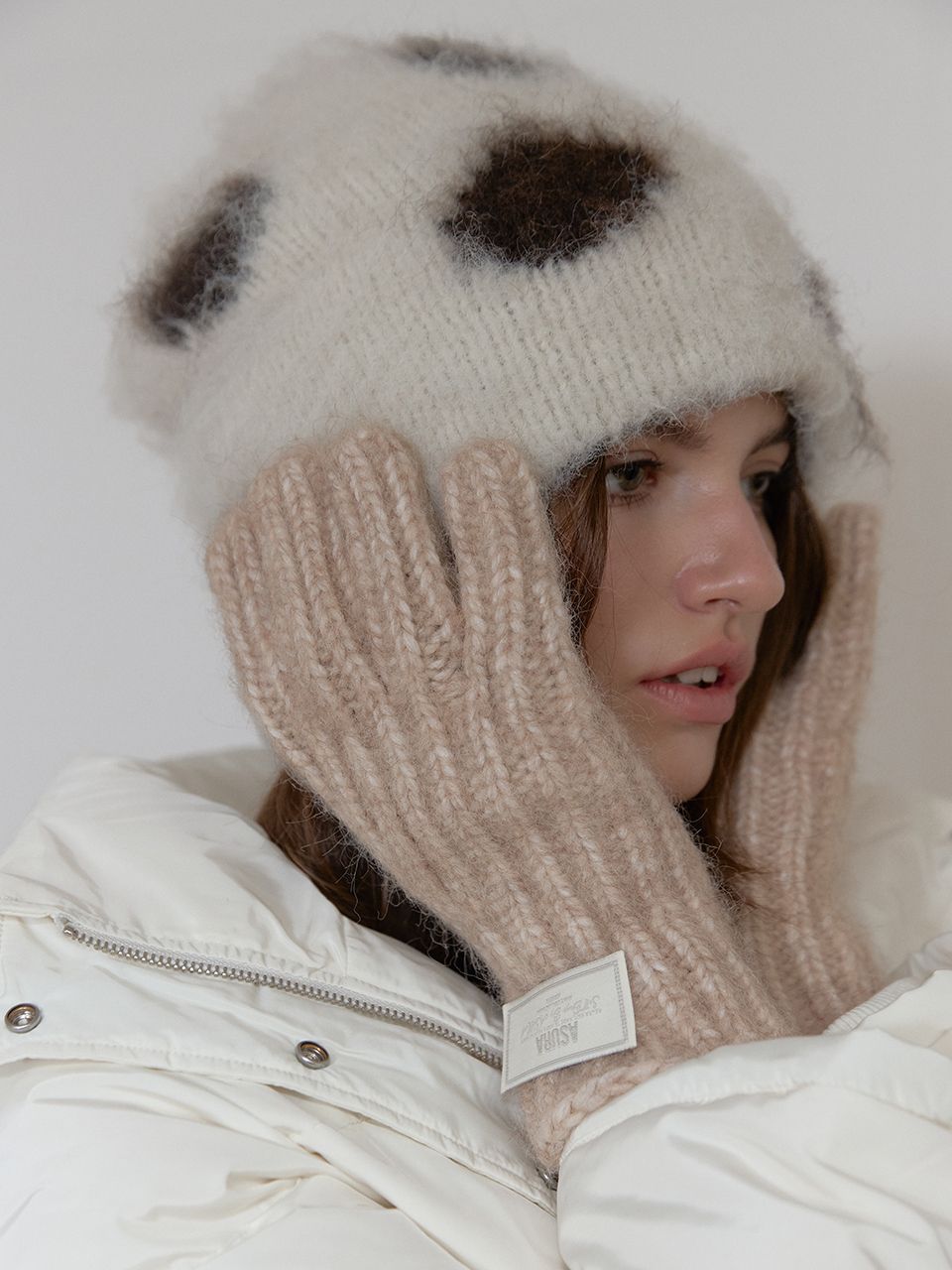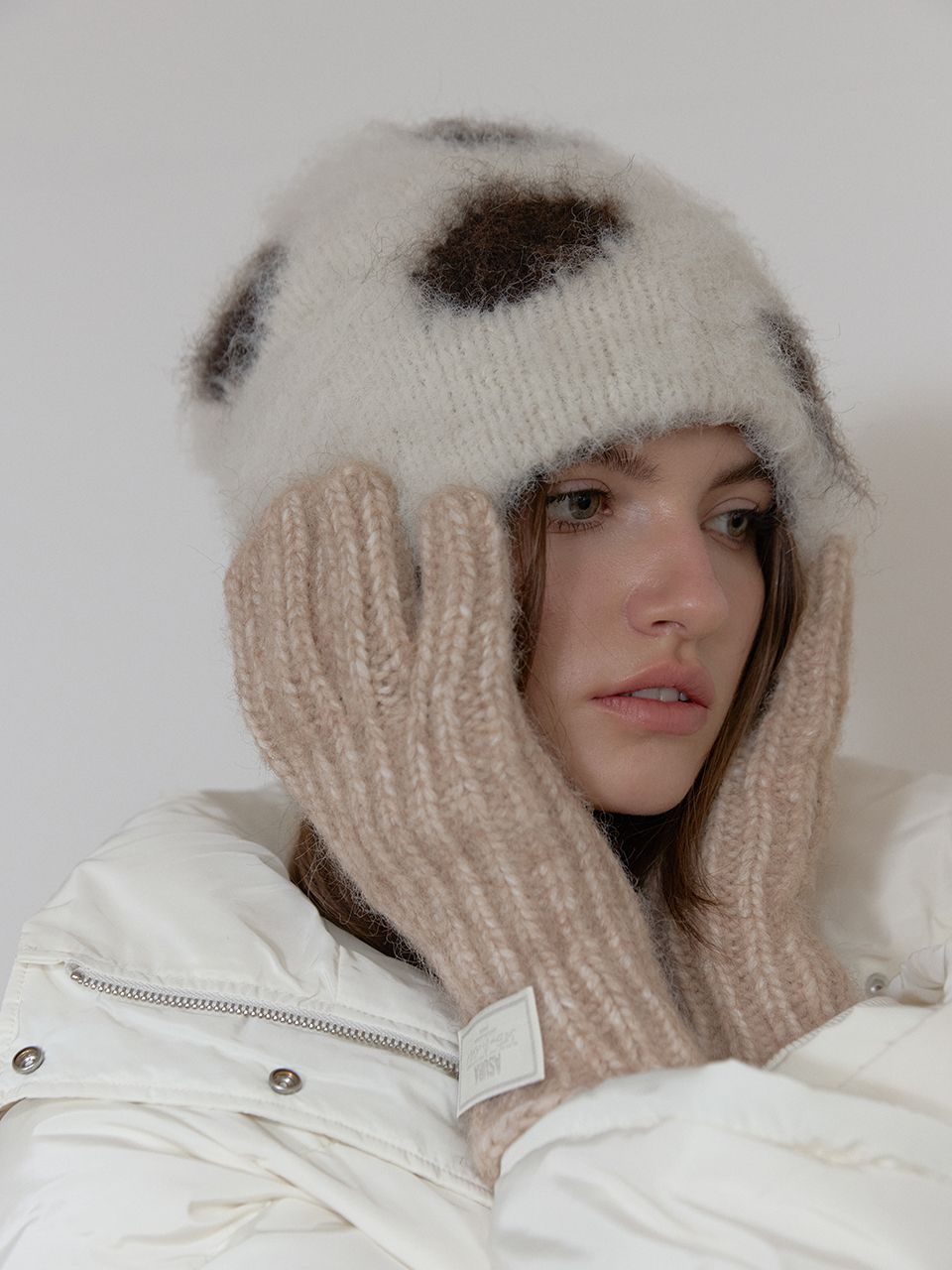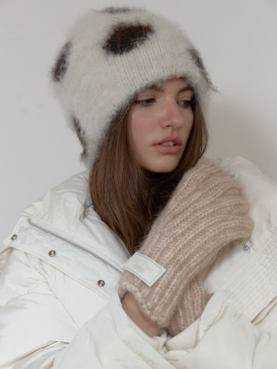 손목의 니트 라벨이 은은한 포인트가 되어주며,