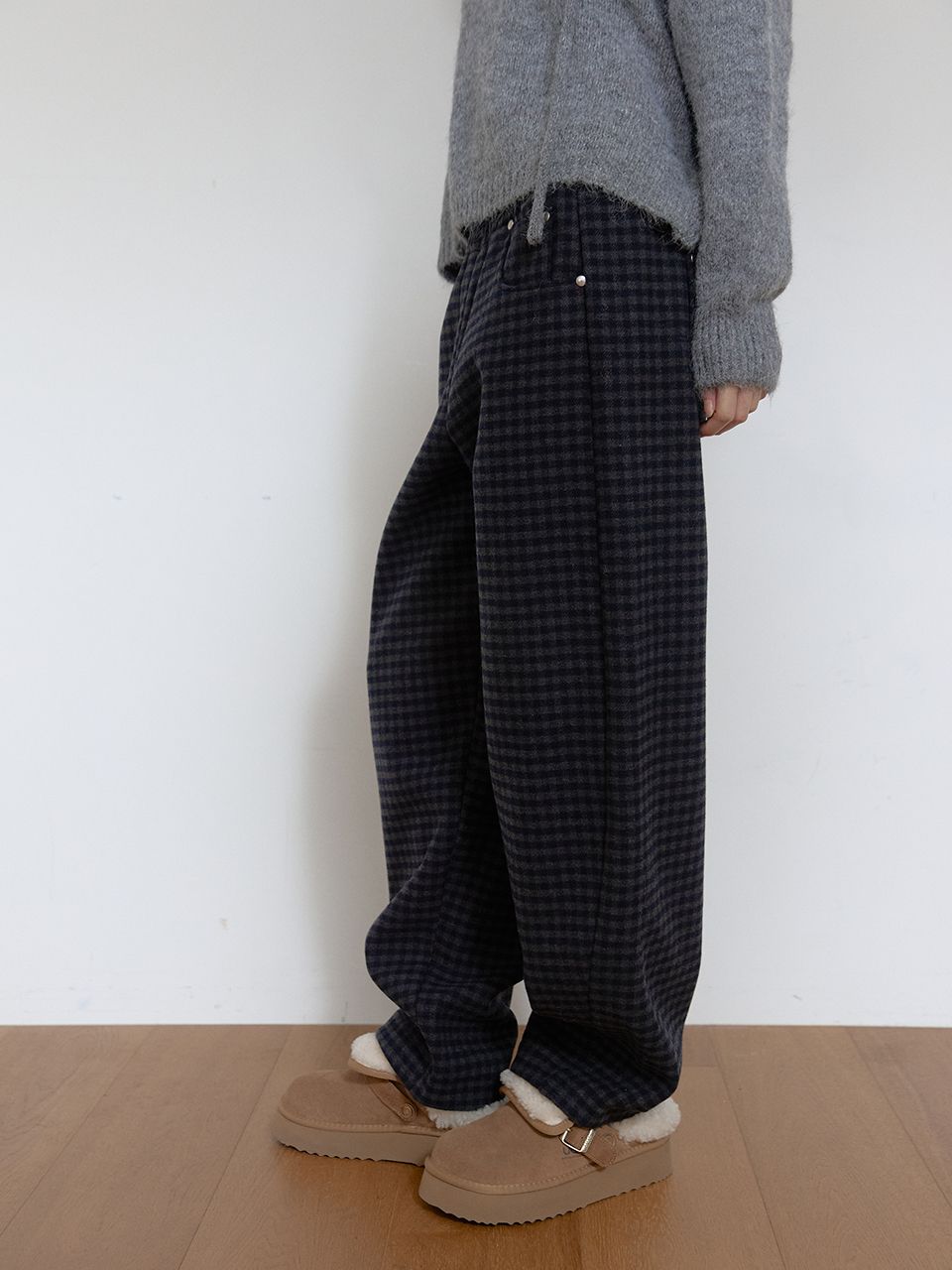 체크, 스트라이프 패턴과 털 안감으로 보온성이 좋은 겨울 팬츠입니다.
