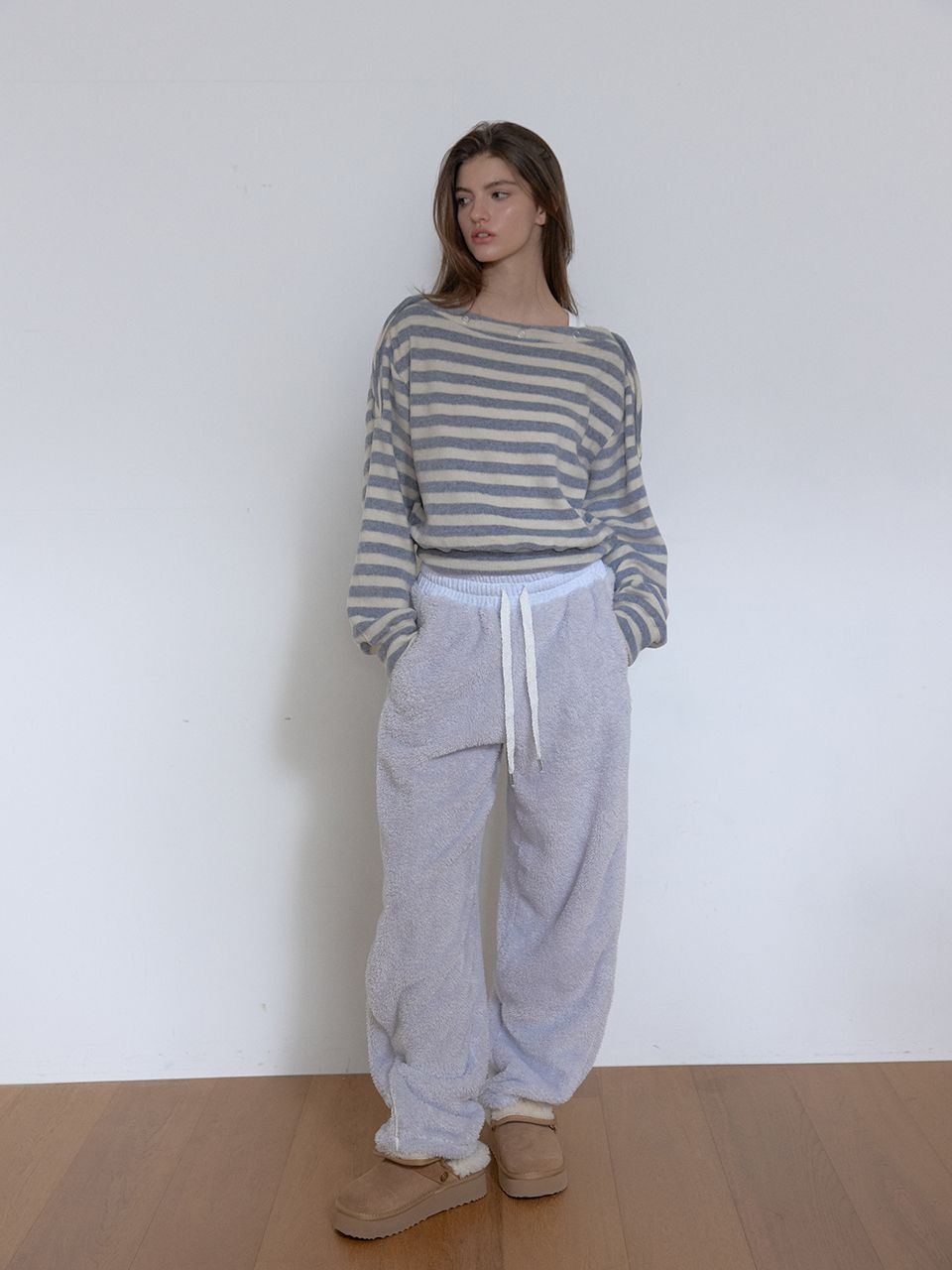 소프트한 단가라 기모 소재감으로 보온성을 더했으며,