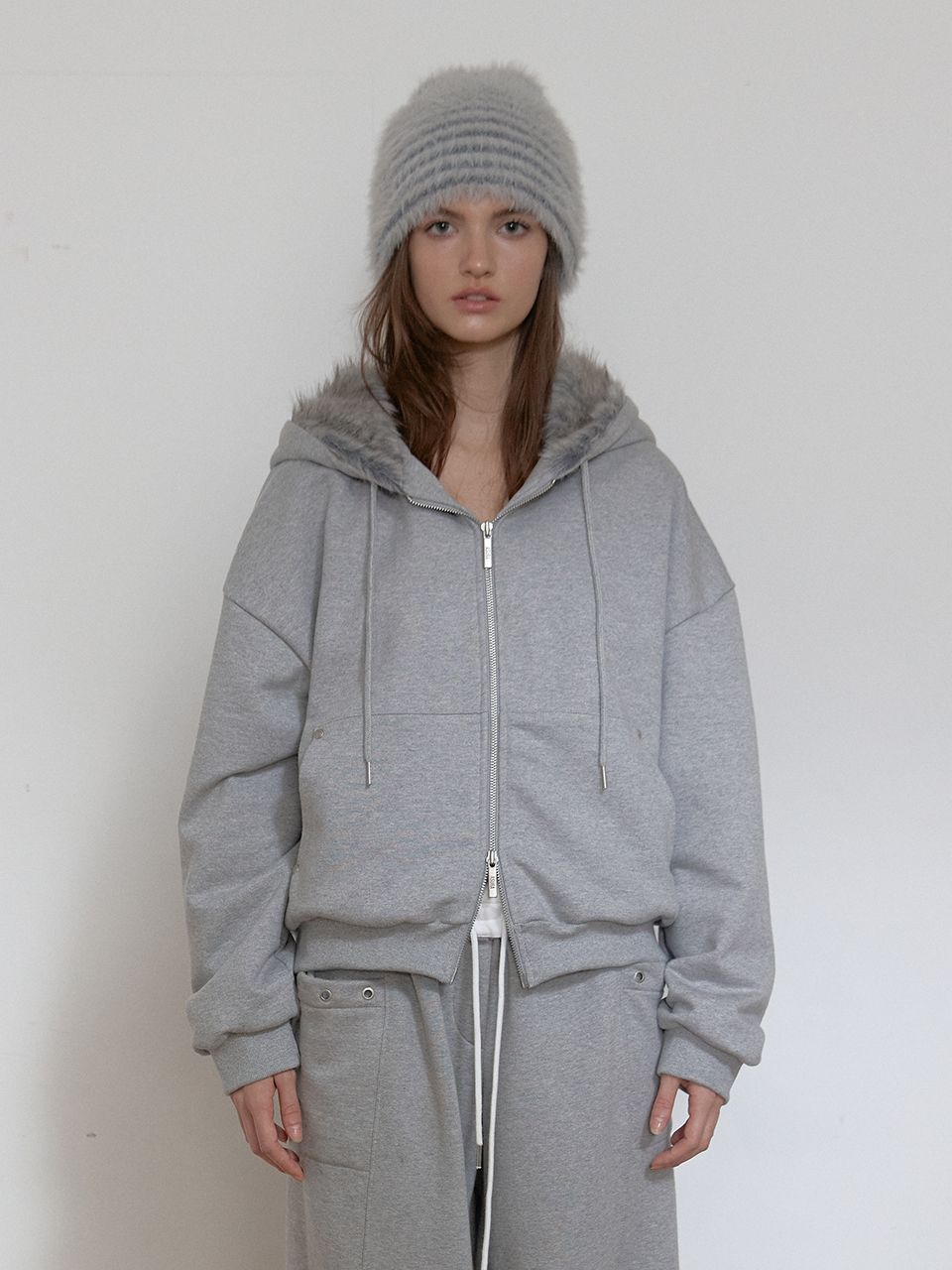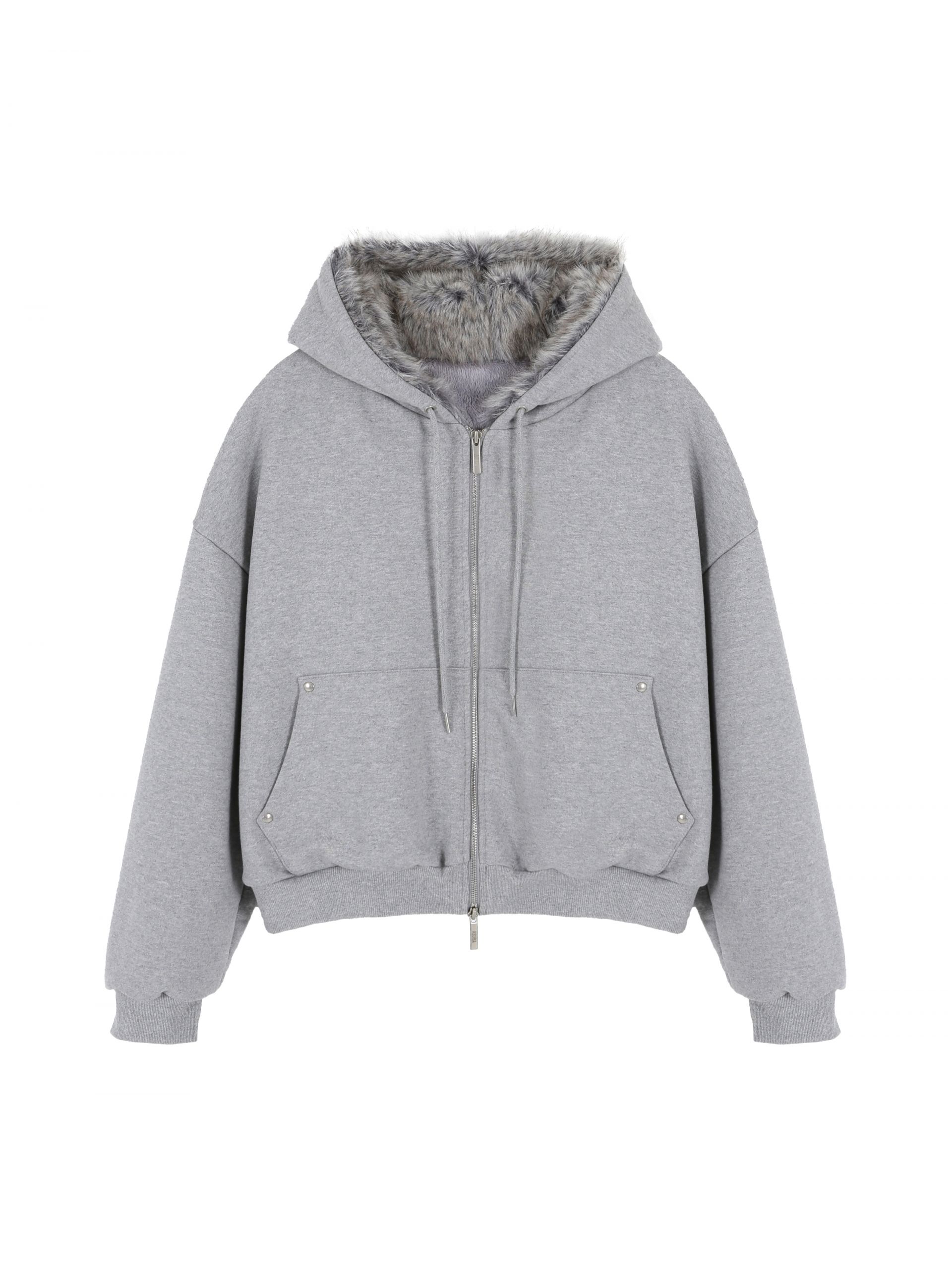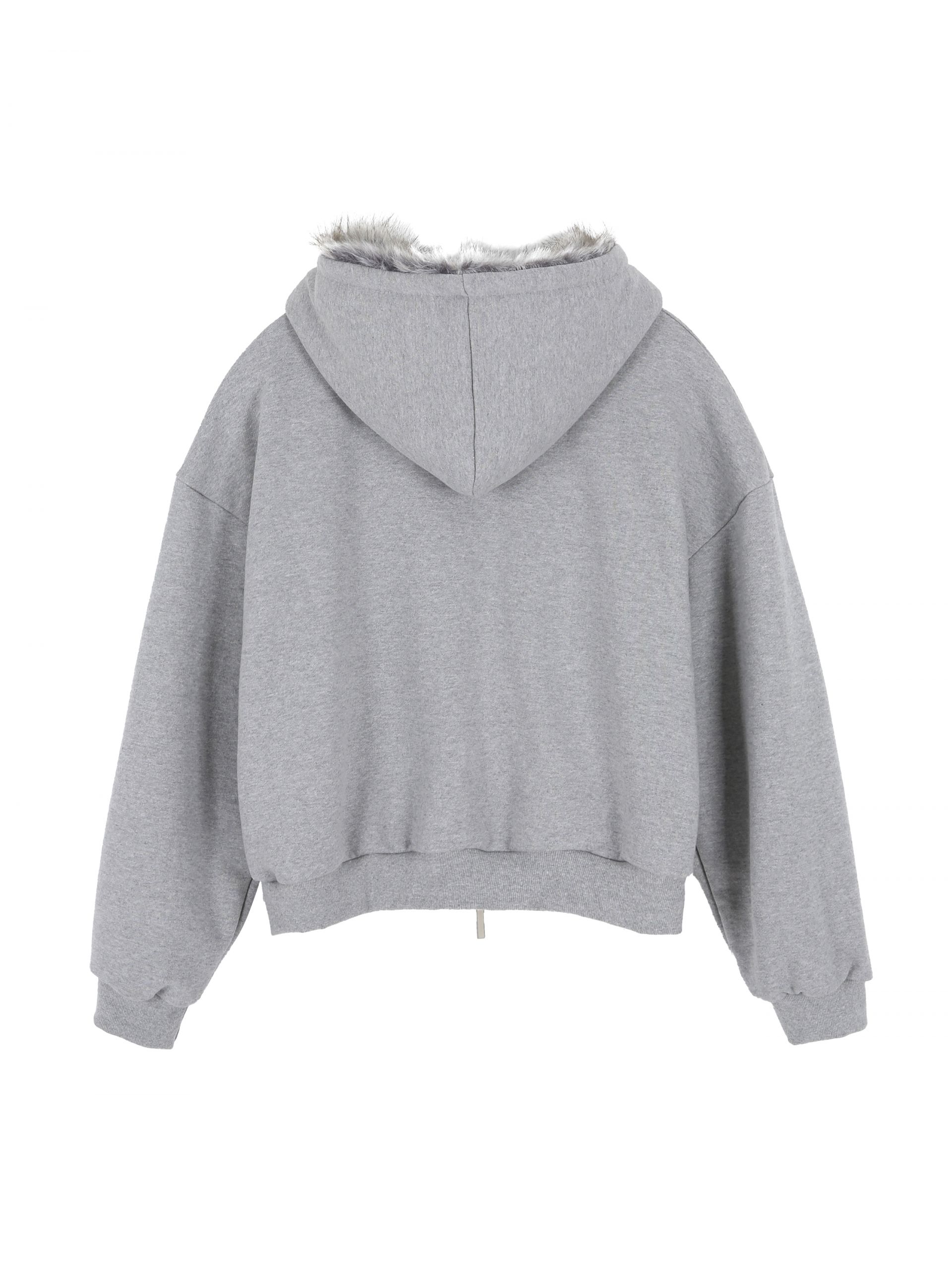 TEDDY FUR HOOD ZIP UP (MELANGE GREY)