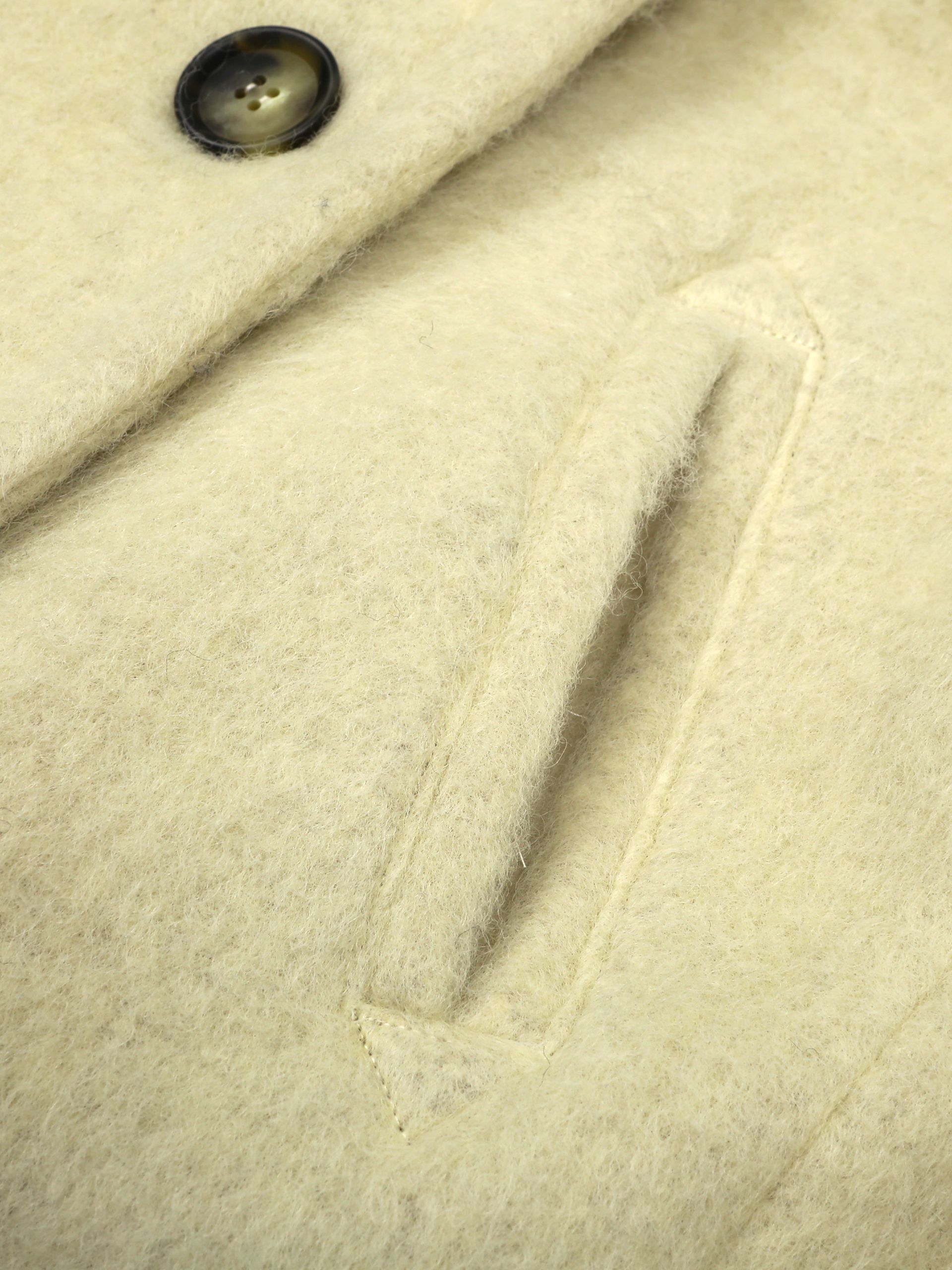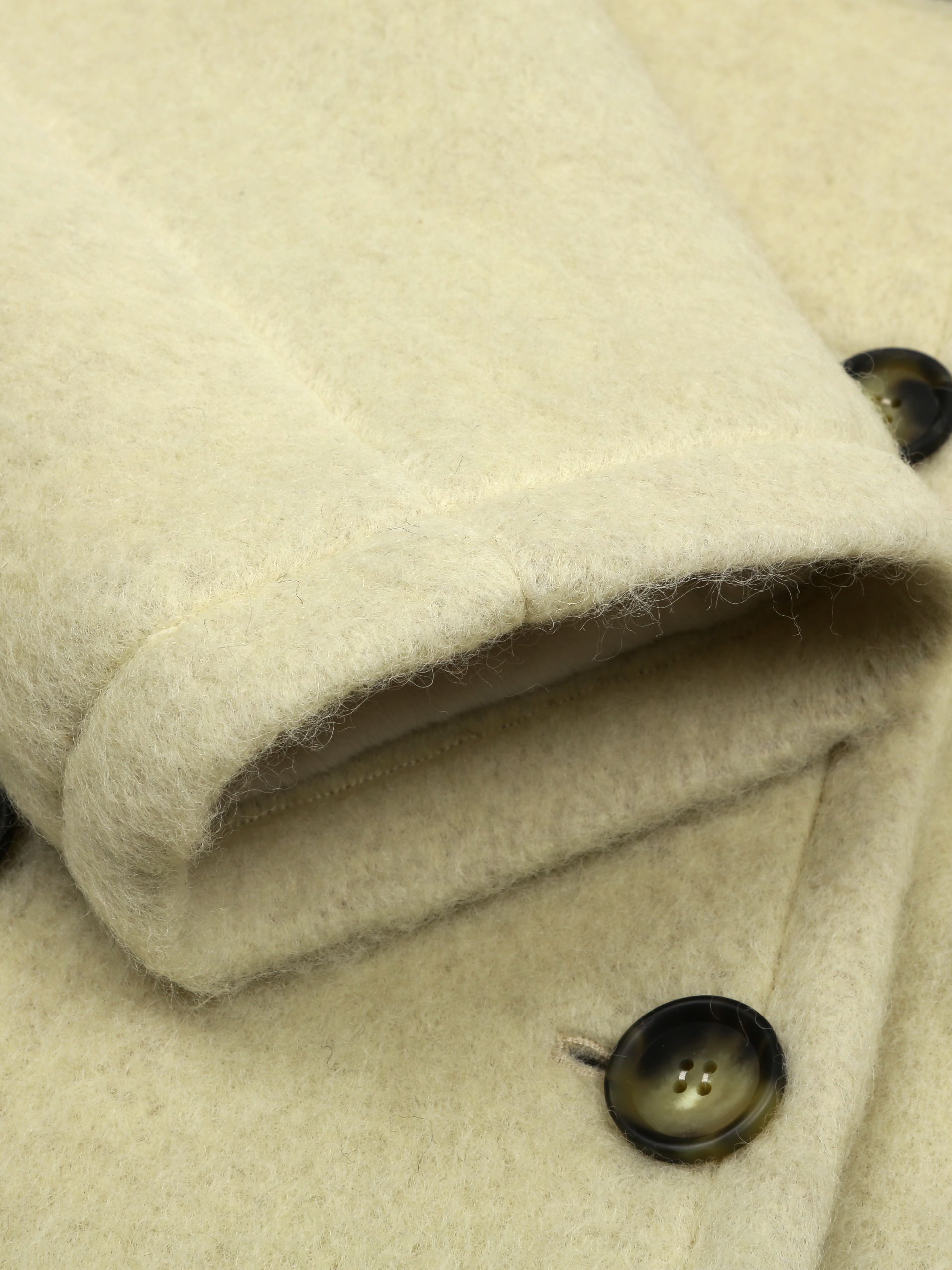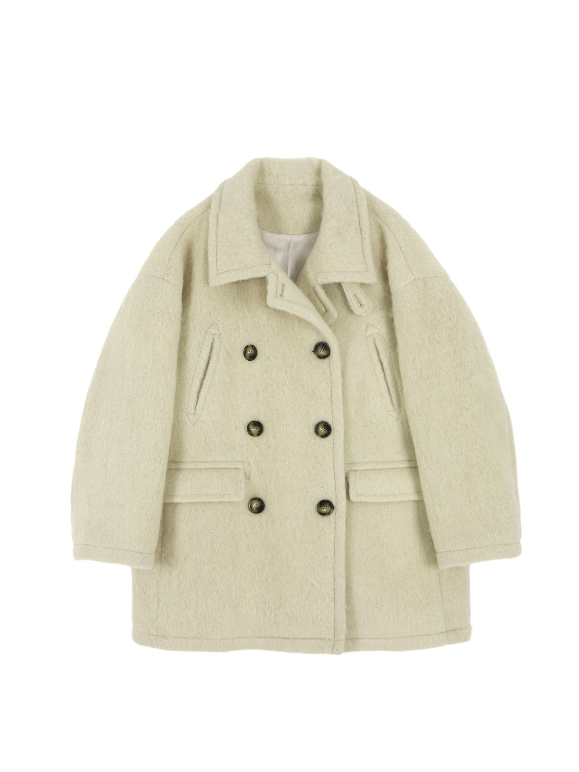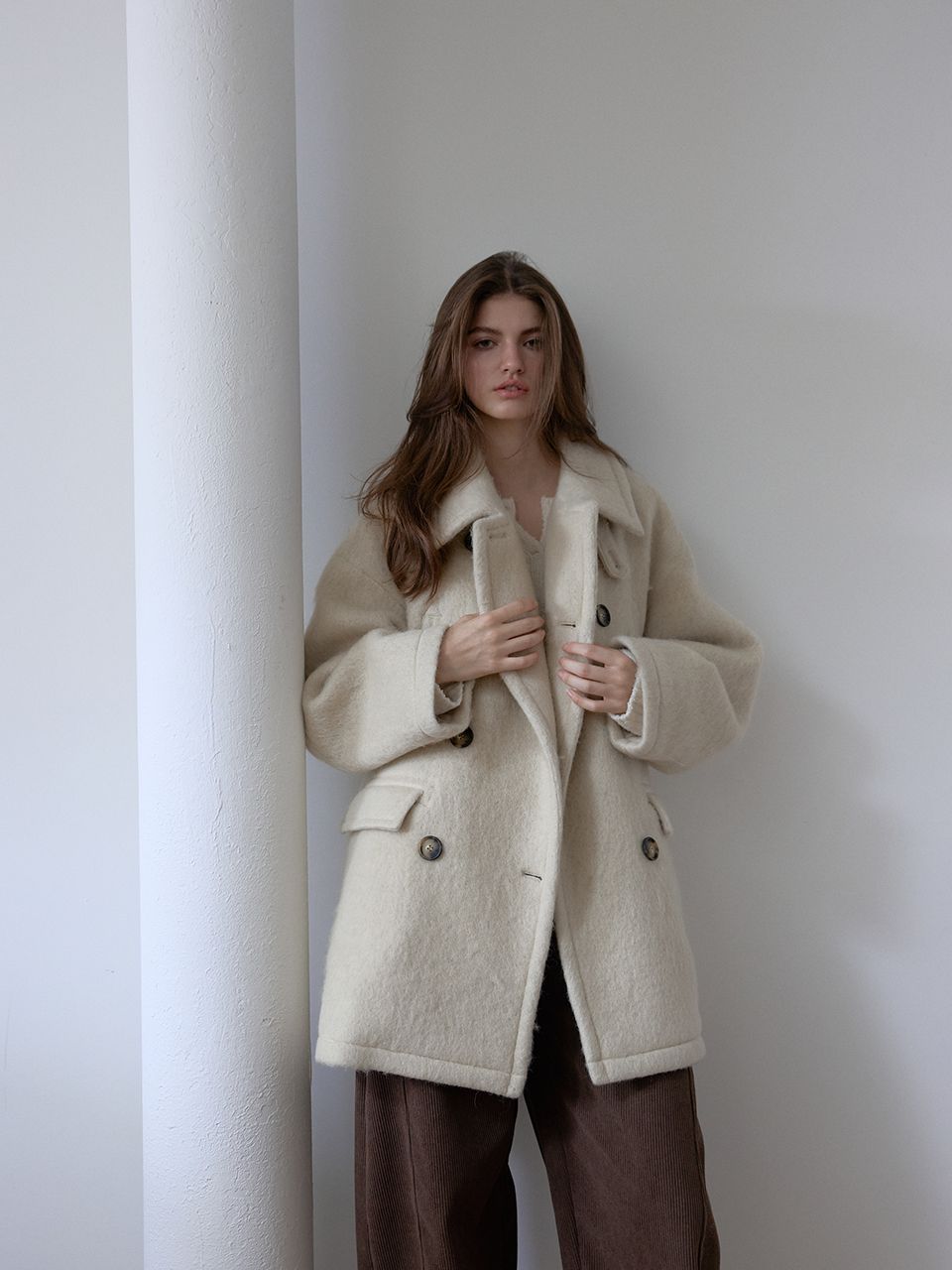 넥라인 단추 디테일이 포인트인 미니멀 무드의 울 블렌드 코트입니다.