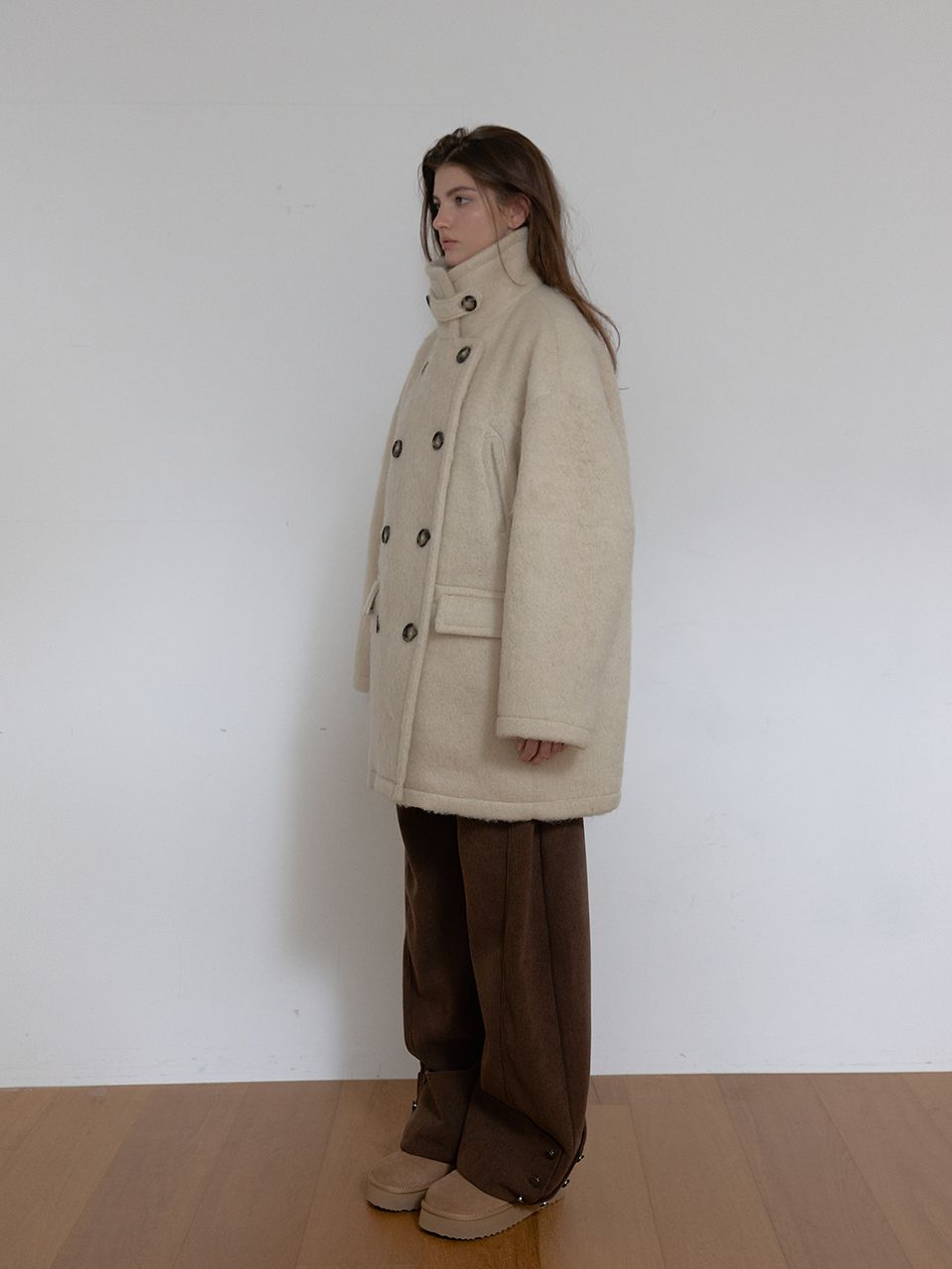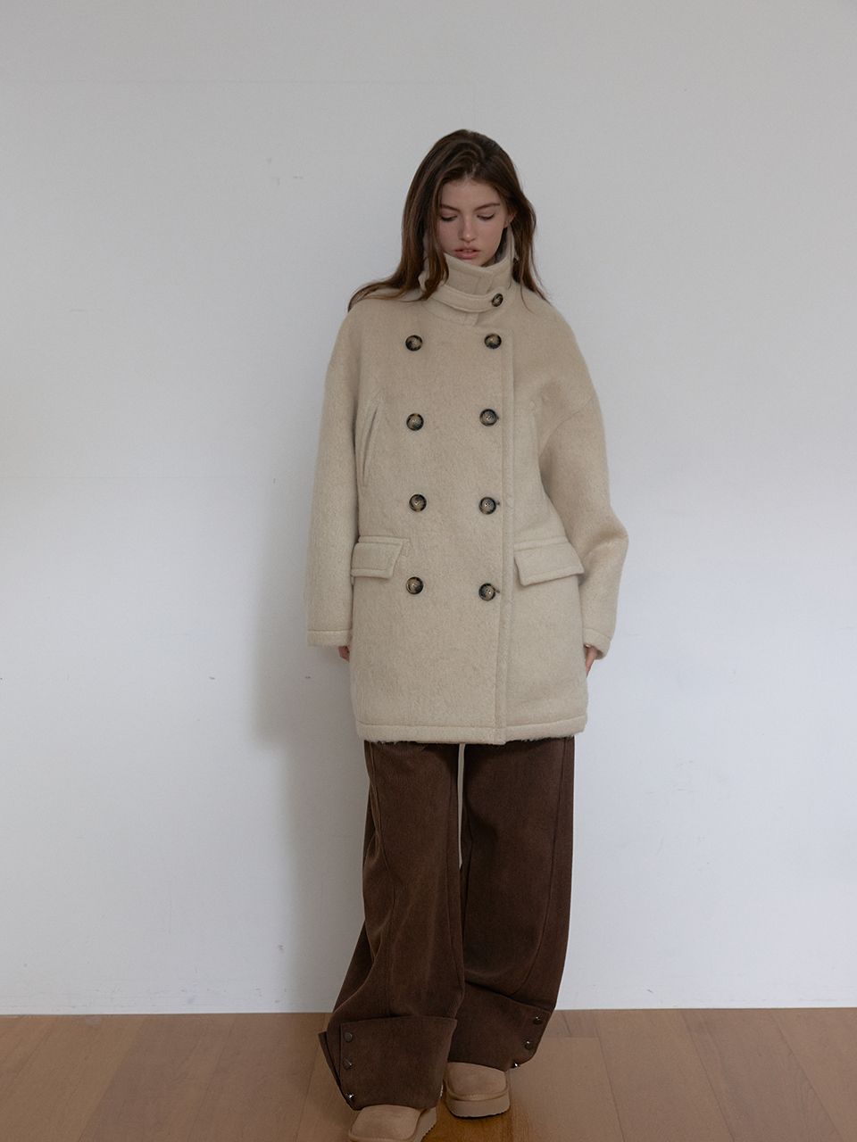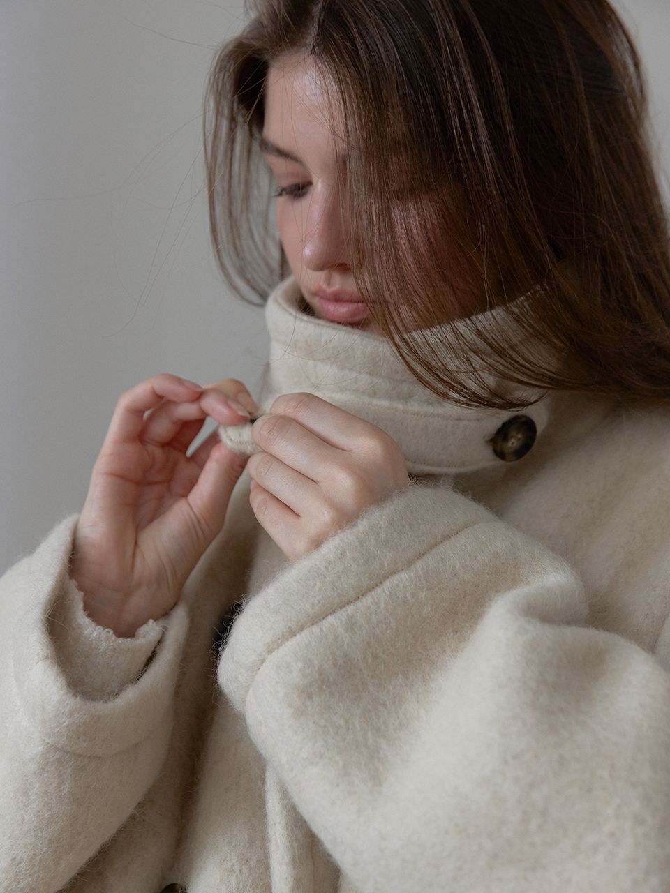 울 혼방 원단 / 하이넥 버튼 클로징 / 절개 라인