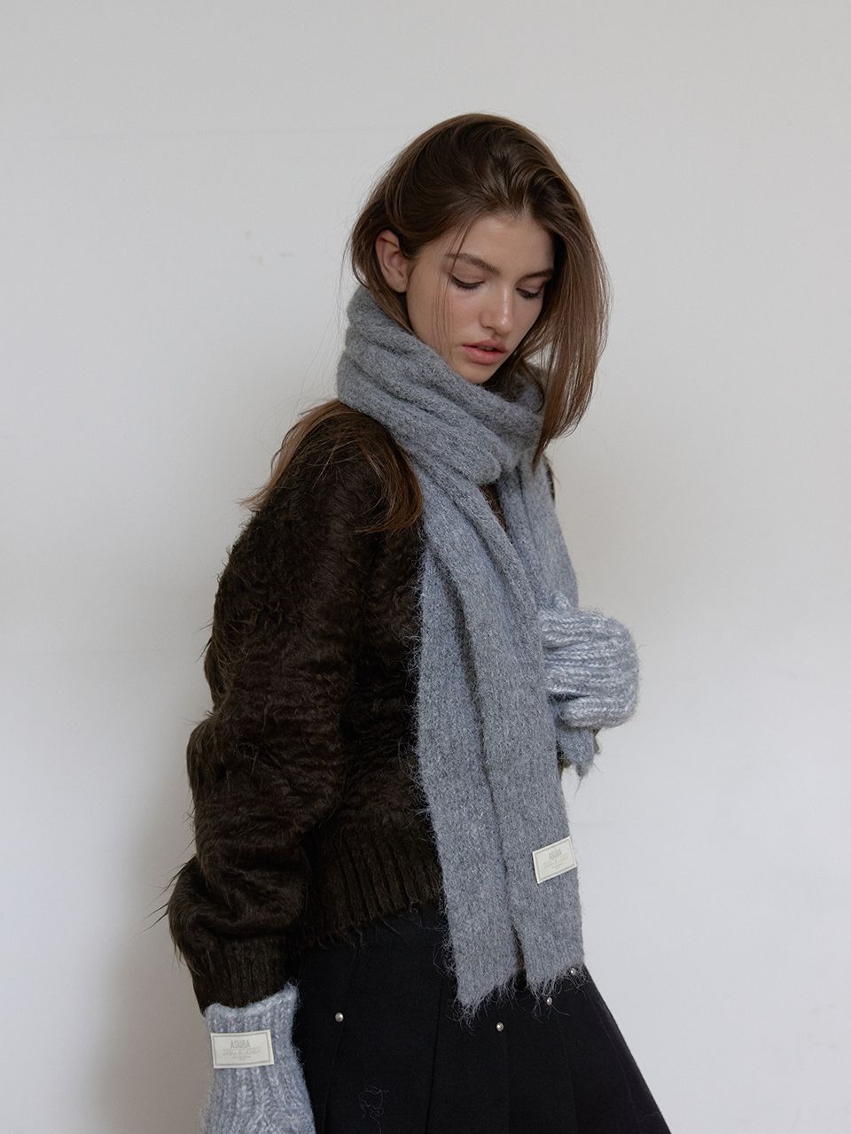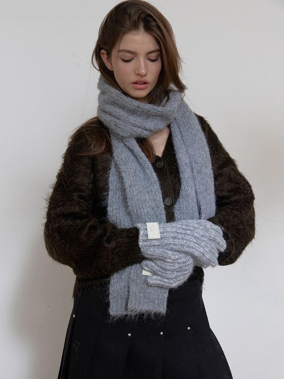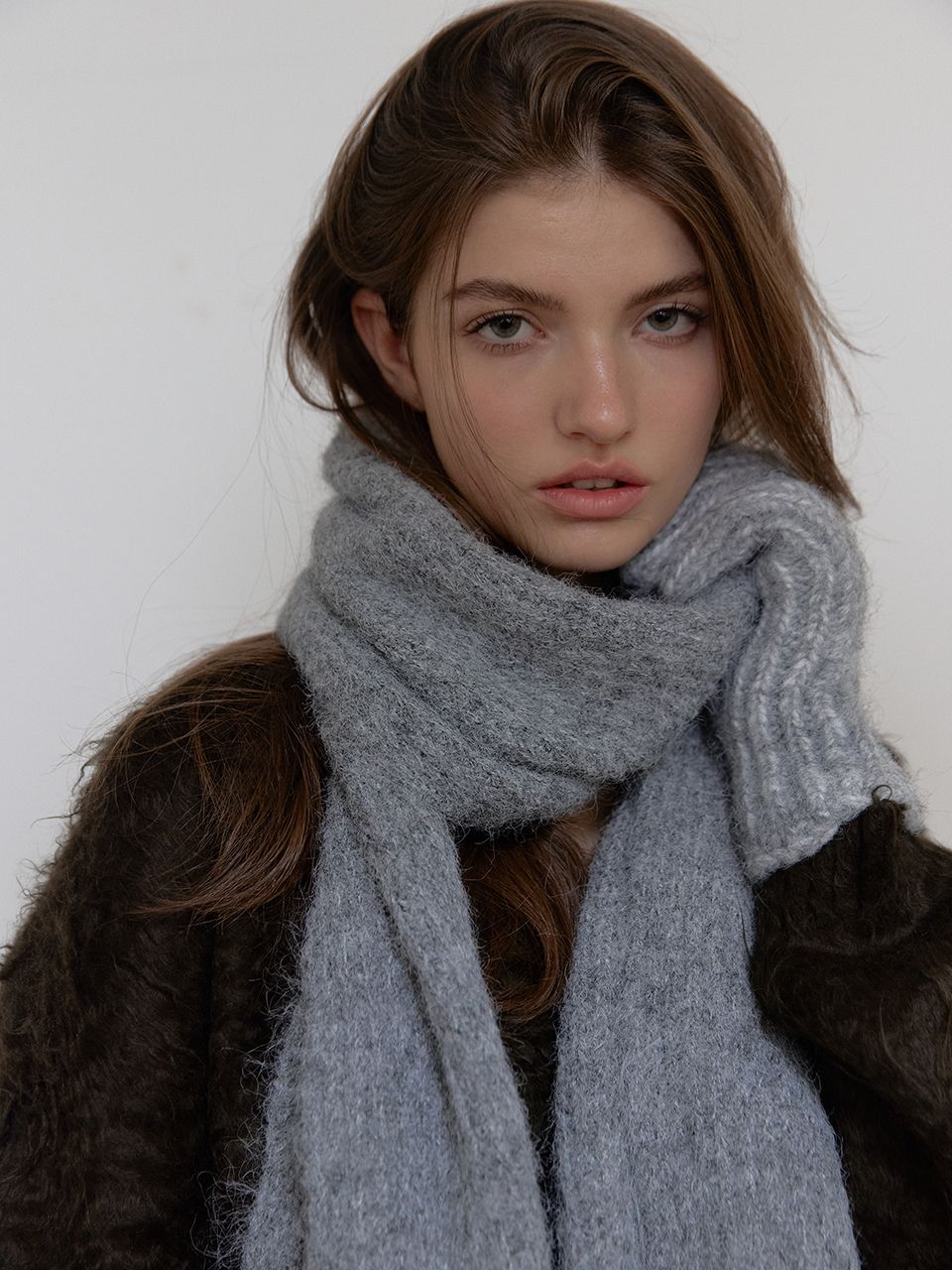 부드러운 텍스처의 니트 머플러입니다.