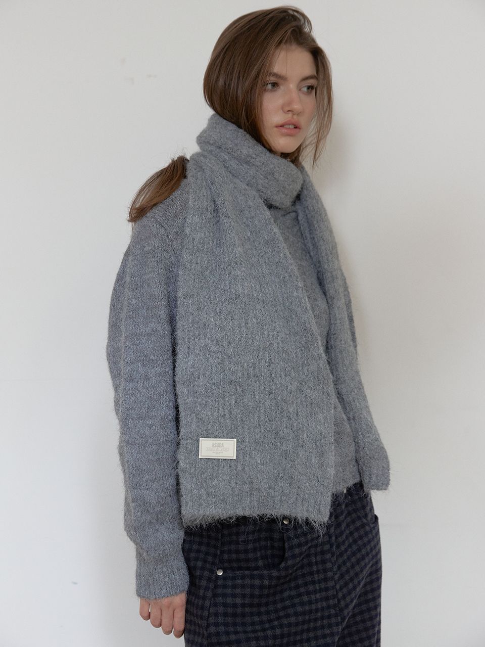 니트 라벨 포인트가 미니멀한 무드에 포인트를 더해줍니다.