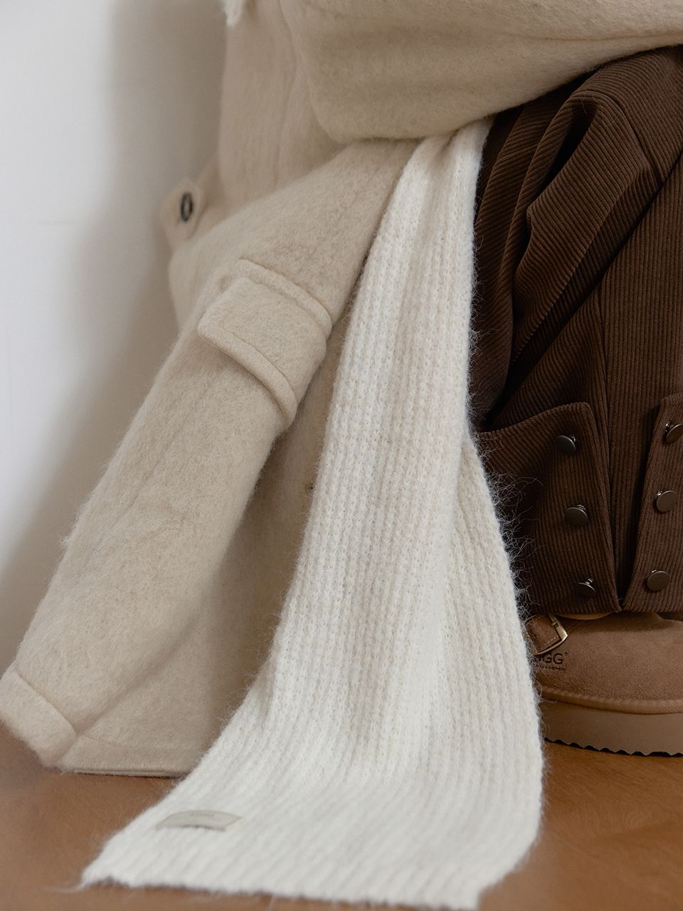부드러운 텍스처의 니트 머플러입니다.