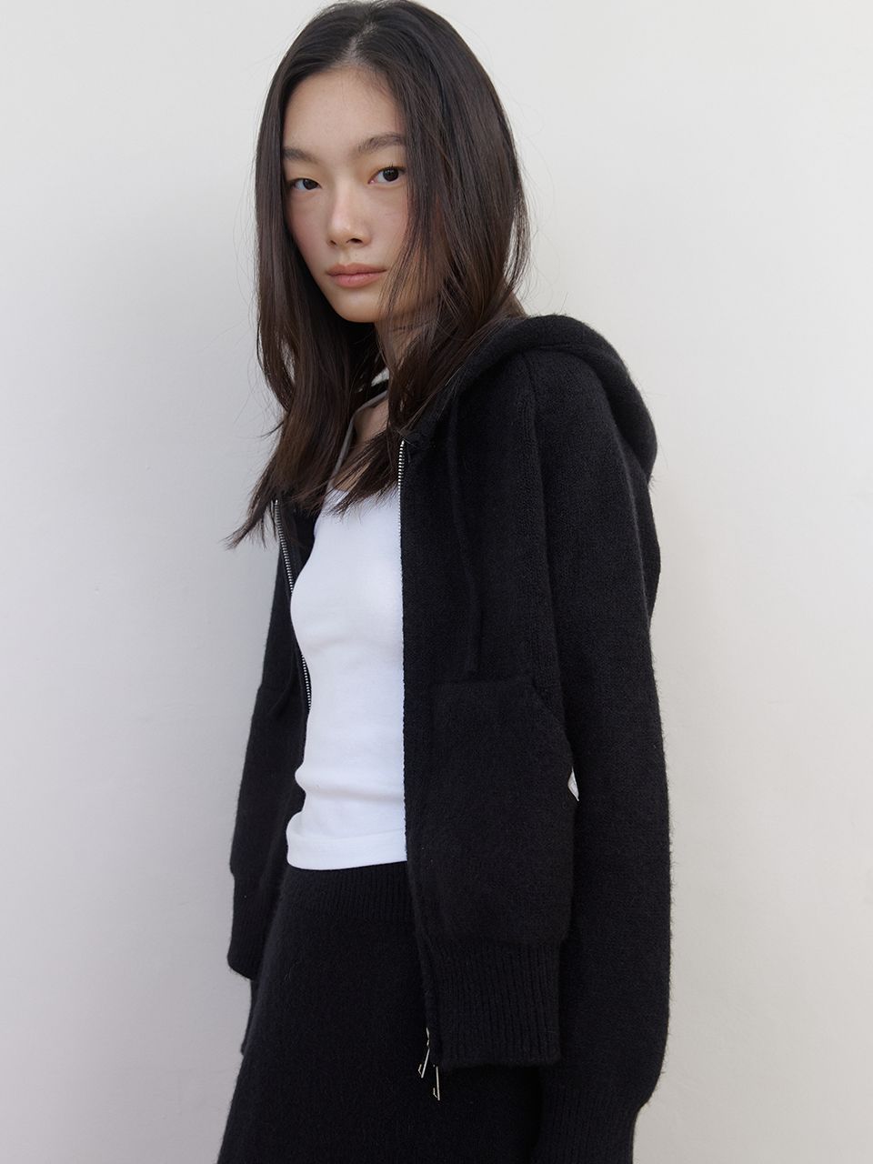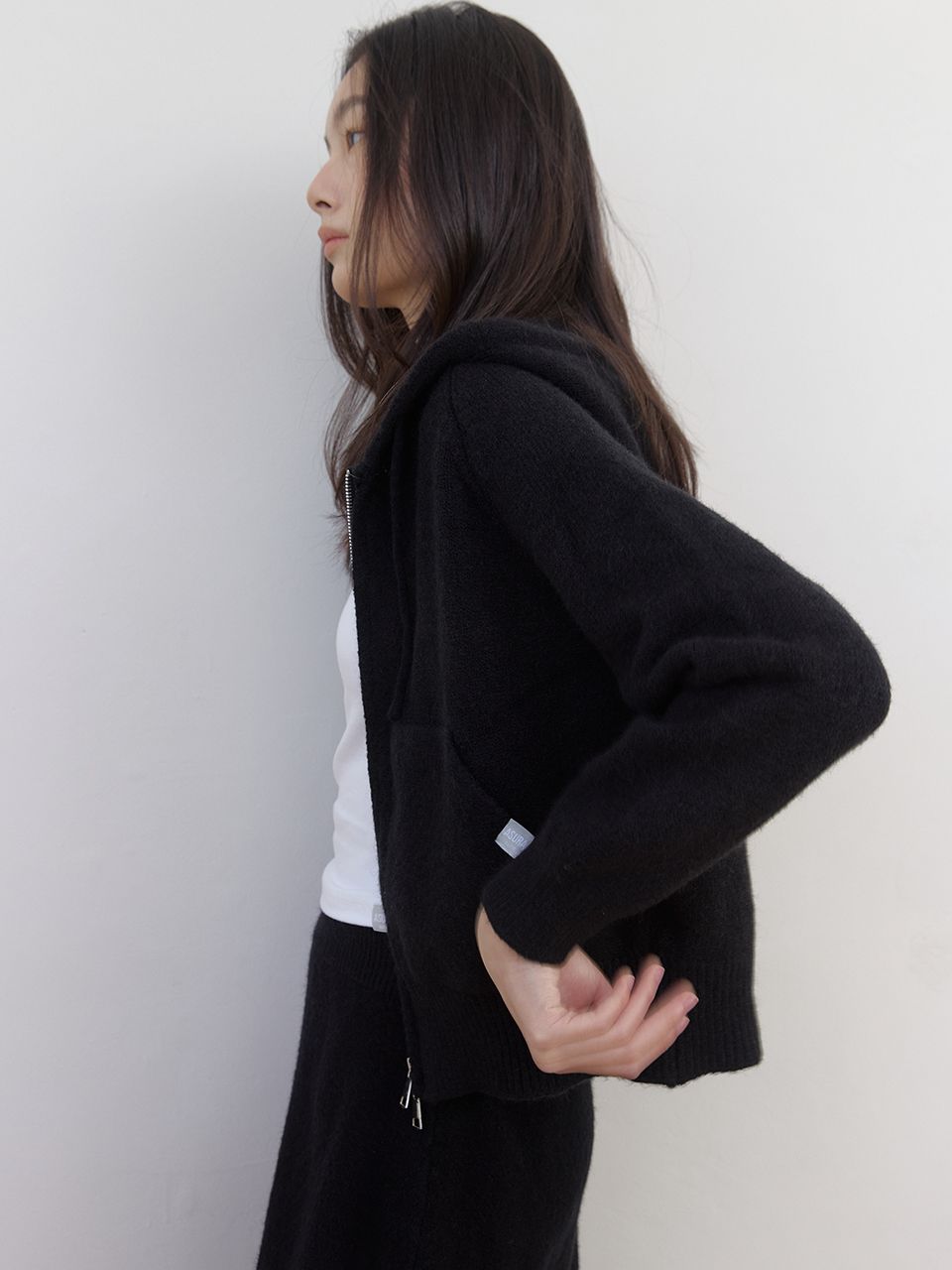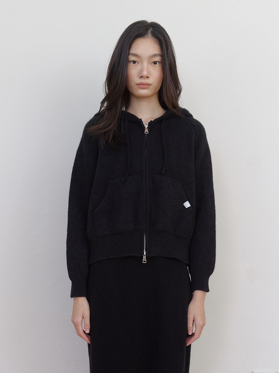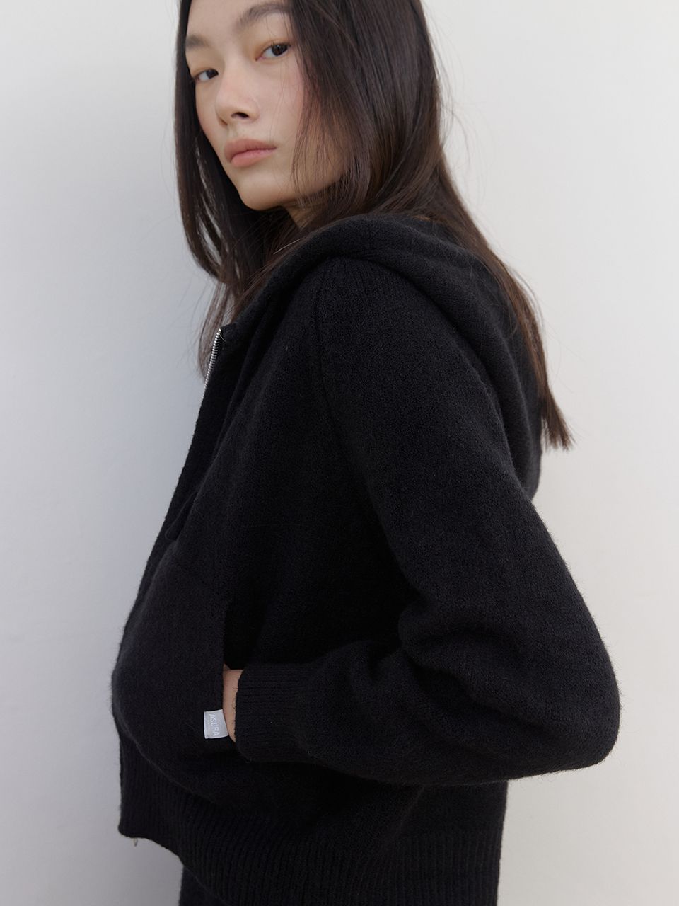 AS BASIC KNIT HOOD ZIP UP (BLACK)