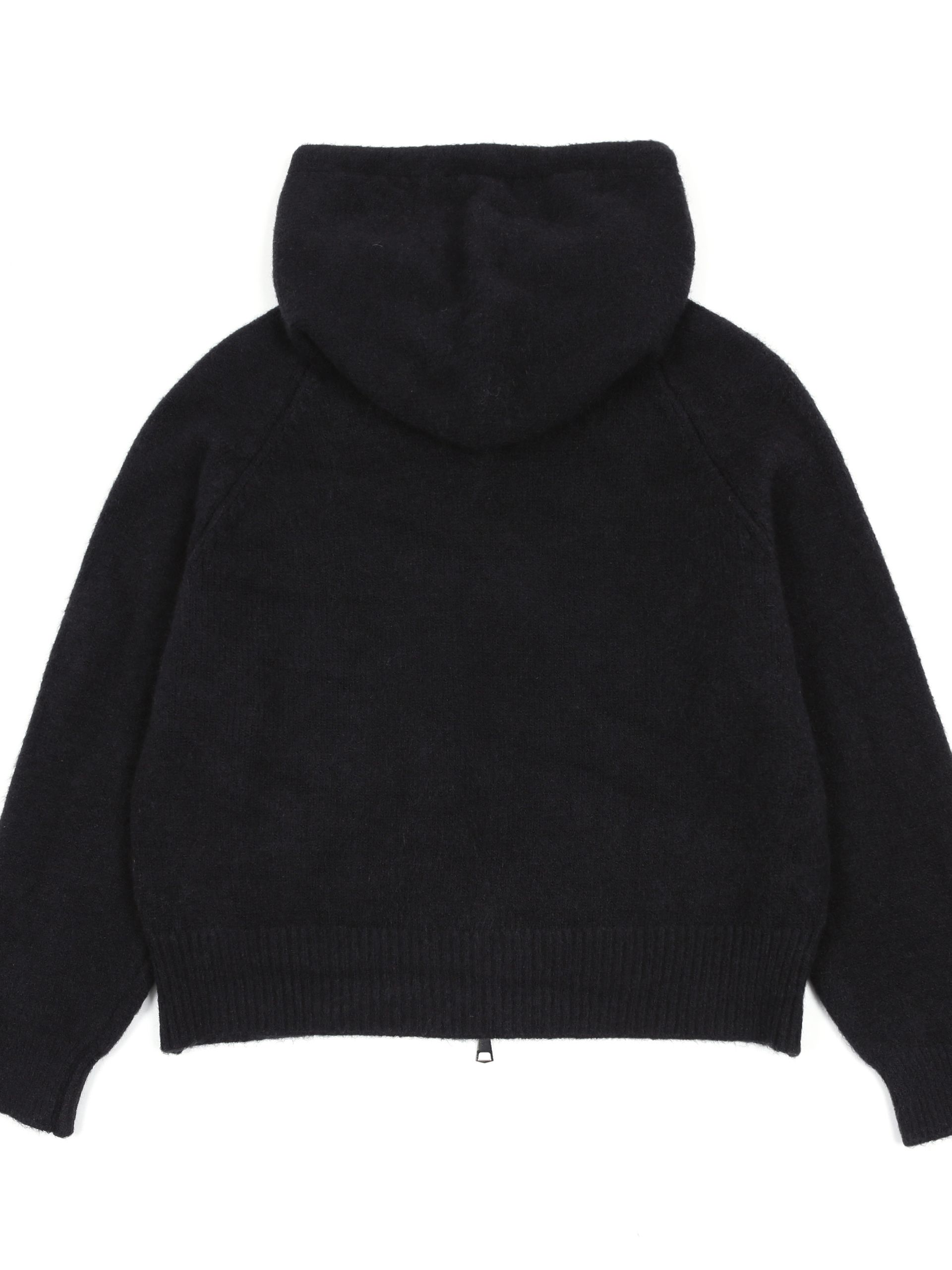 부드럽고 포근한 텍스처가 돋보이는 크롭 기장의 니트 후드 집업입니다.