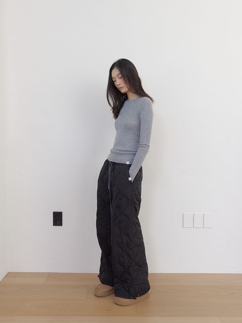 군더더기 없는 베이직한 디자인은 다양한 하의와 아우터에 이너로 활용하기 좋으며, 소매 끝의 작은 스퀘어 라벨이 미니멀한 포인트를 더합니다.