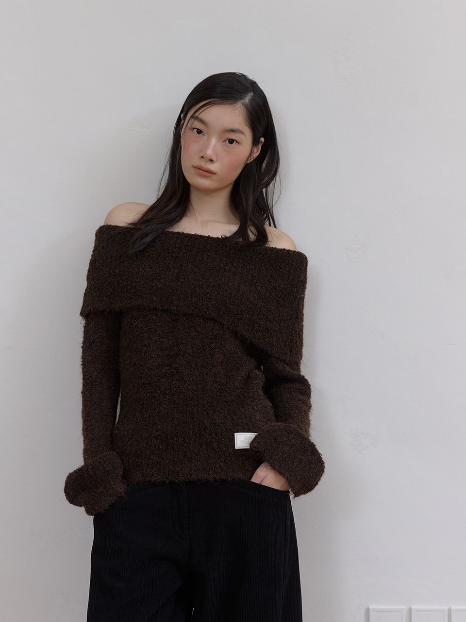 COZY WOOL OFF SHOULDER KNIT (BROWN)(12월 9일 예약배송)