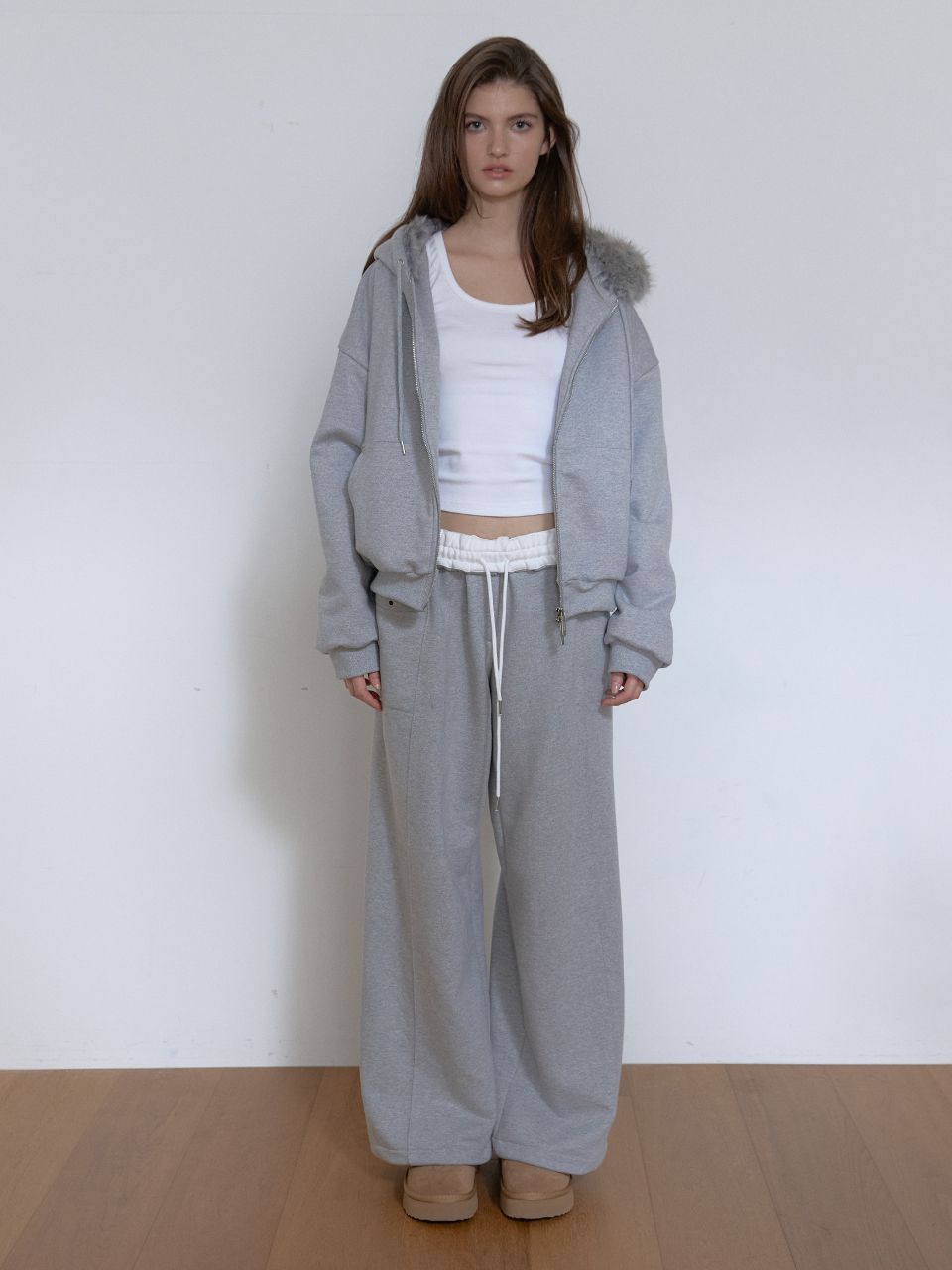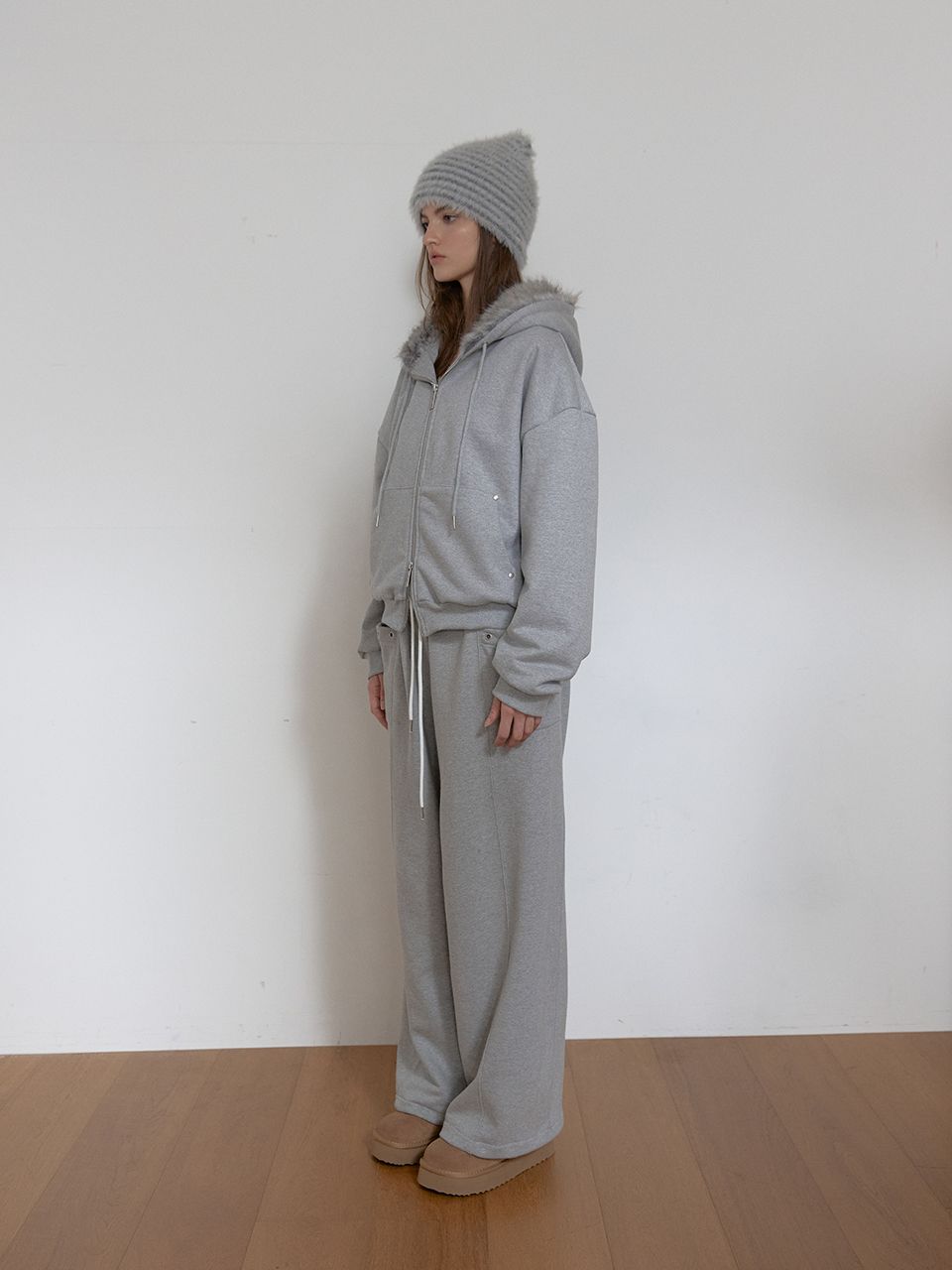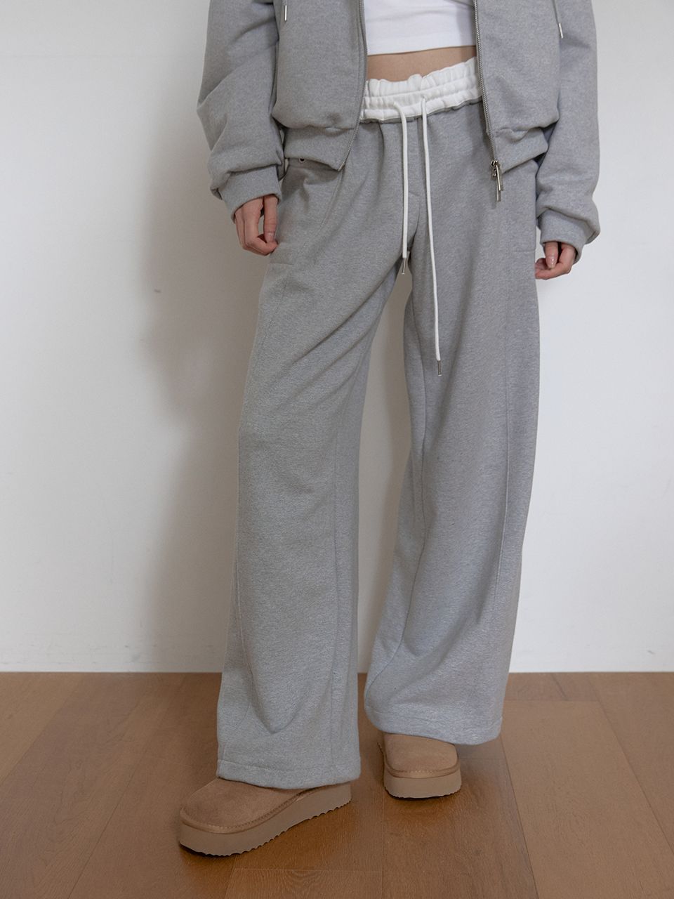 FLEECE COLOR FLIP SWEATPANTS (MELANGE GREY)