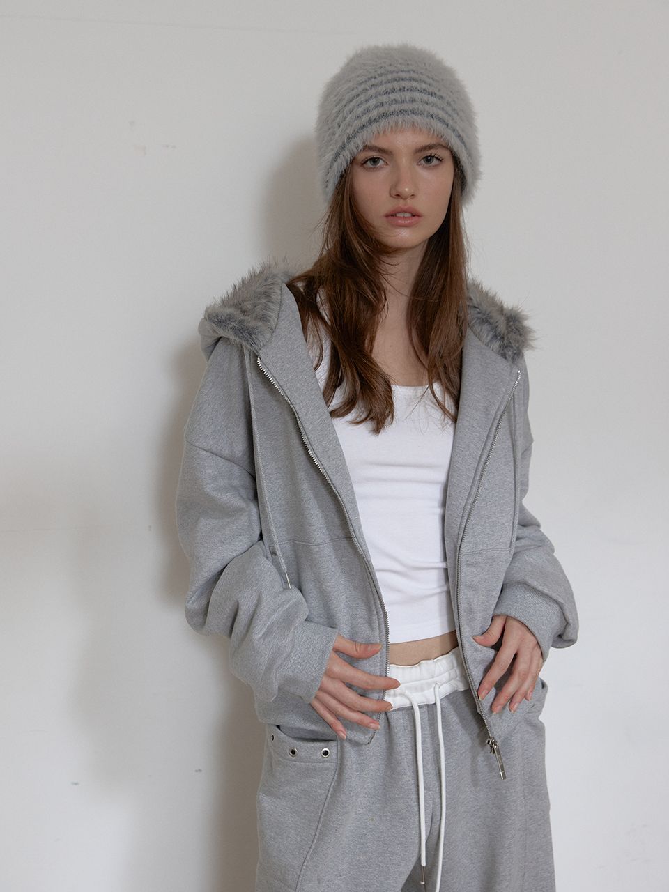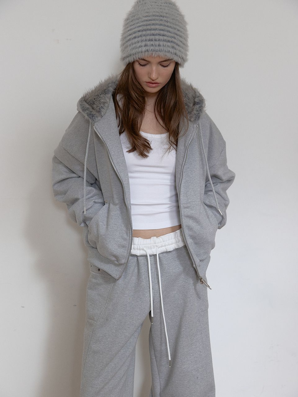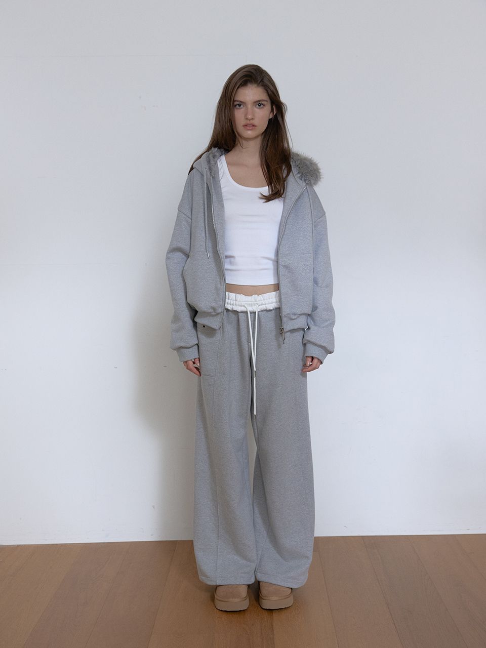 FLEECE COLOR FLIP SWEATPANTS (MELANGE GREY)