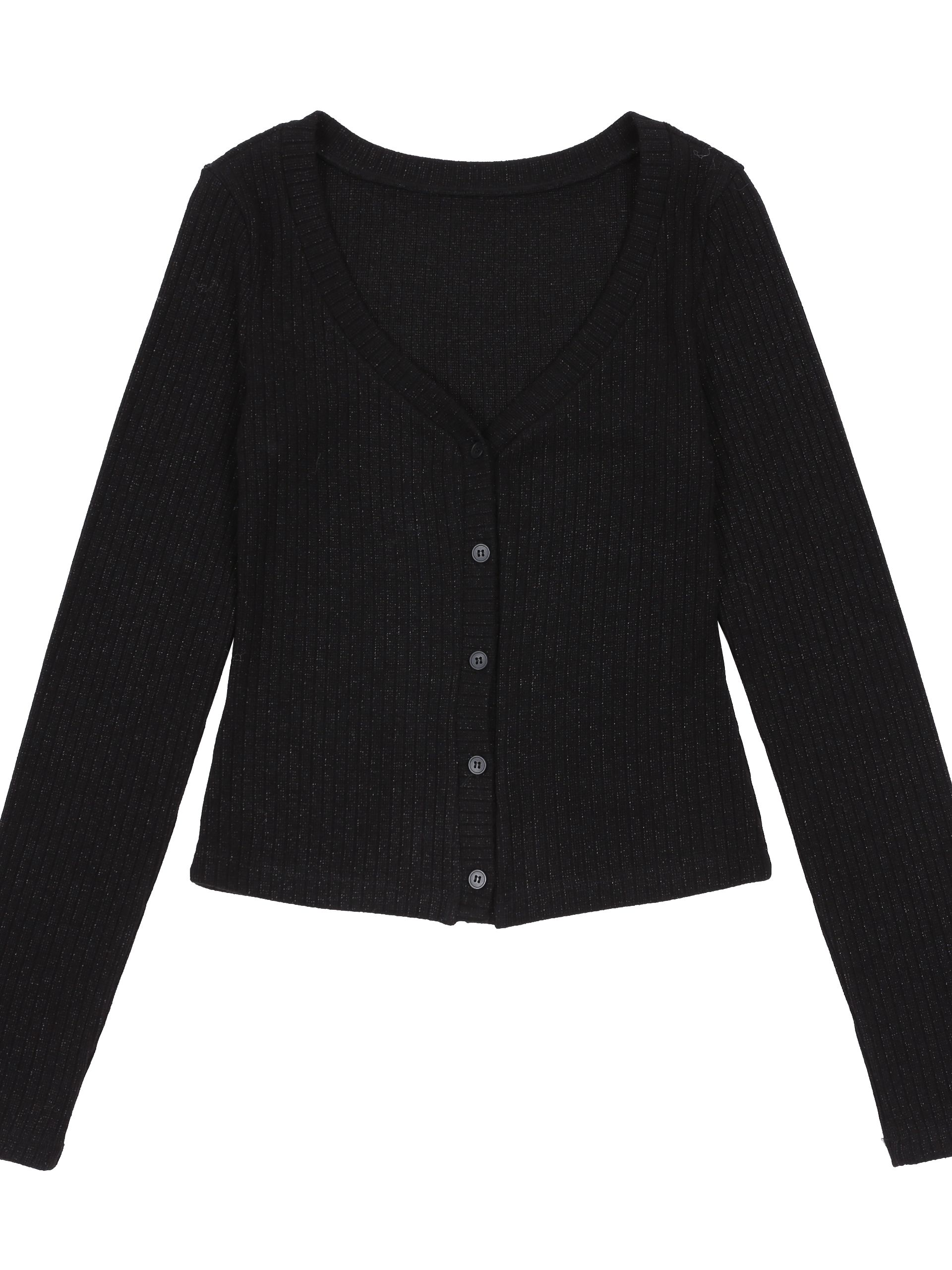 은은한 광택감이 도는 립 조직 소재로 제작되어 세련된 분위기를 연출하는 V넥 가디건입니다.