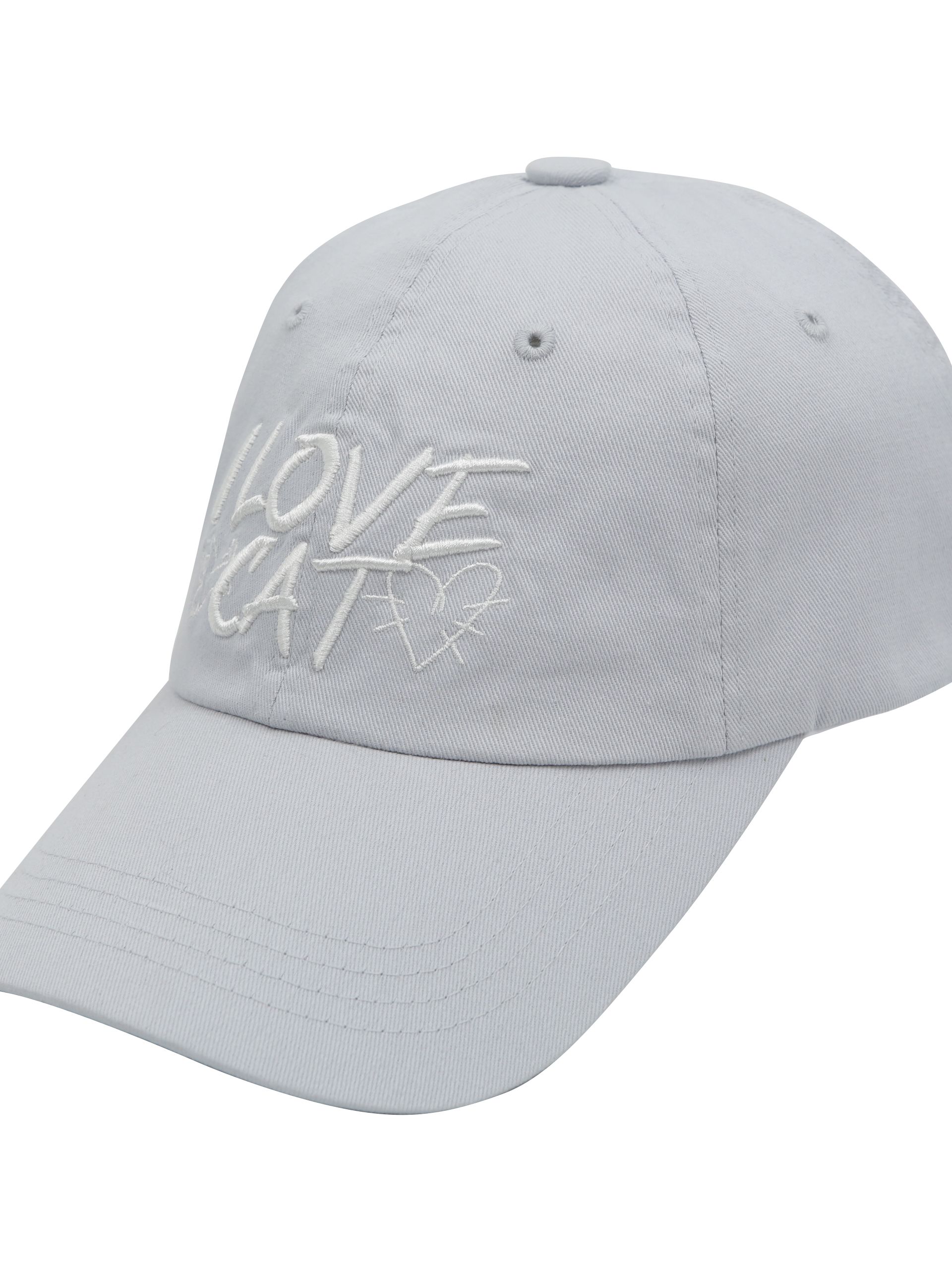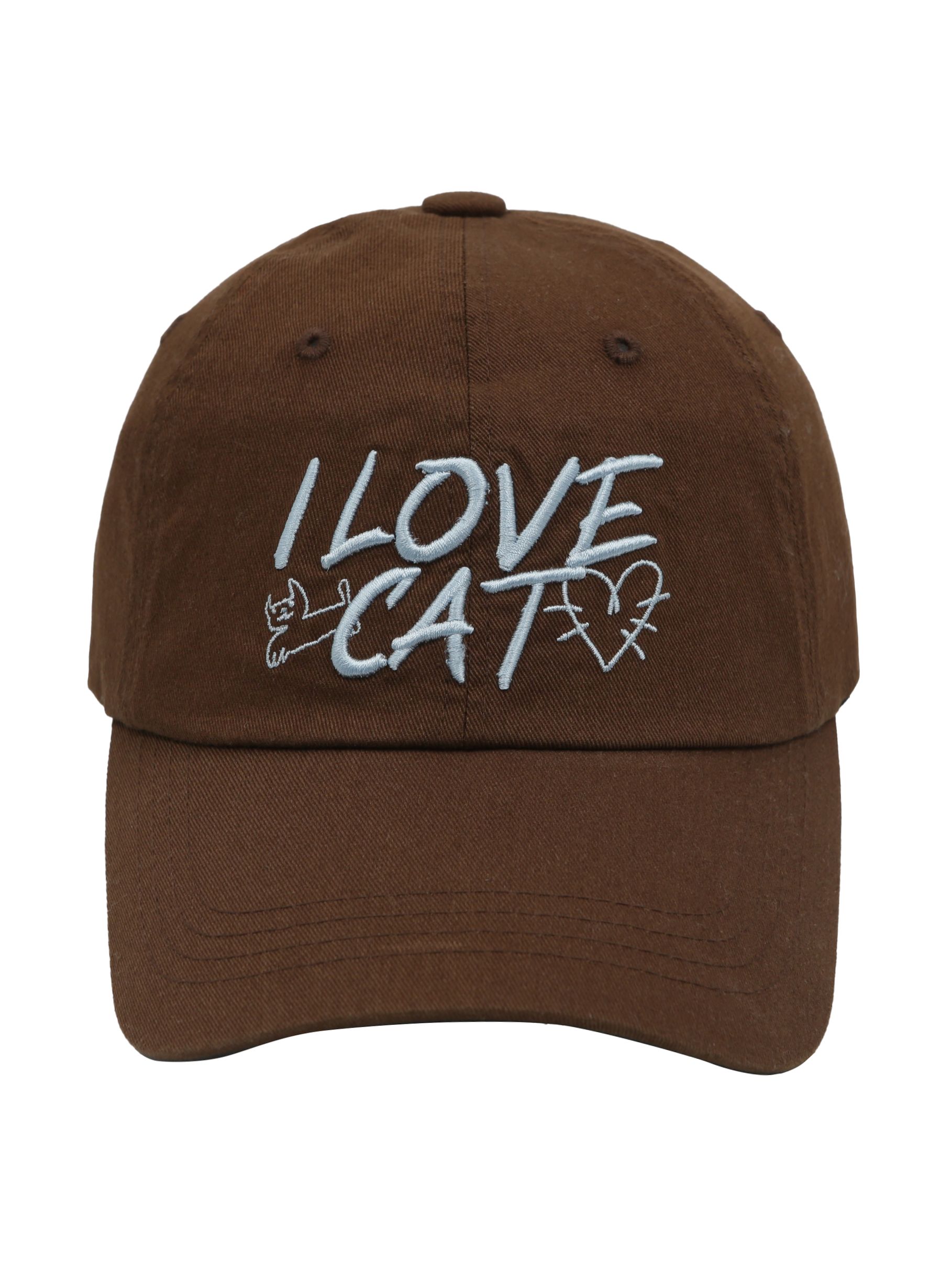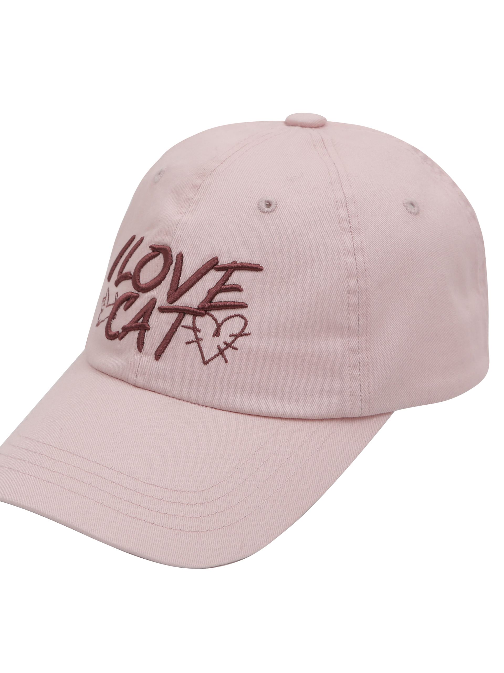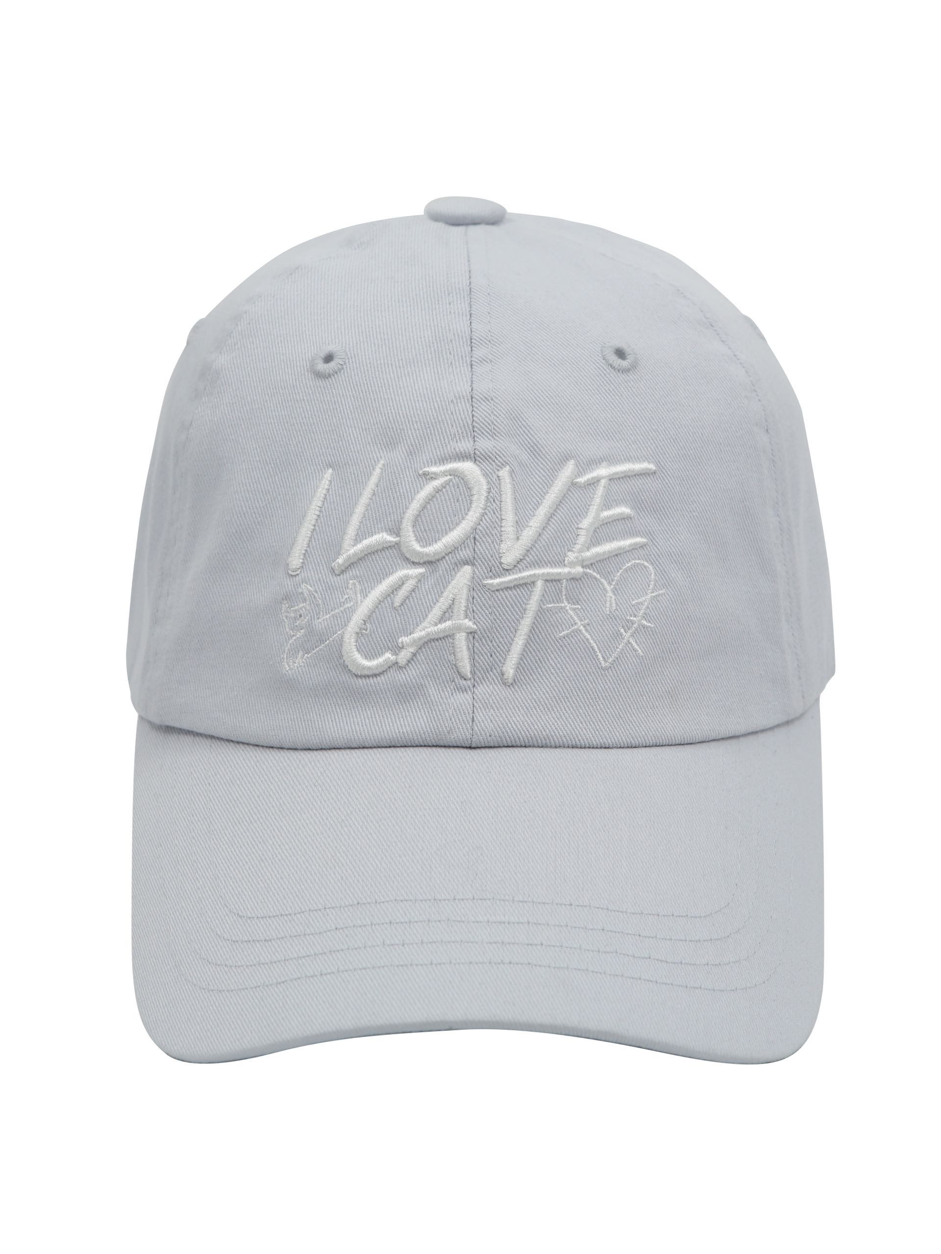 "I LOVE CAT" 문구가 감각적인 필기체 스타일의 자수로 새겨져 있으며, 텍스트 주변에는 귀여운 고양이와 하트 모양의 디자인이 함께 어우러져 사랑스러운 분위기를 연출합니다.