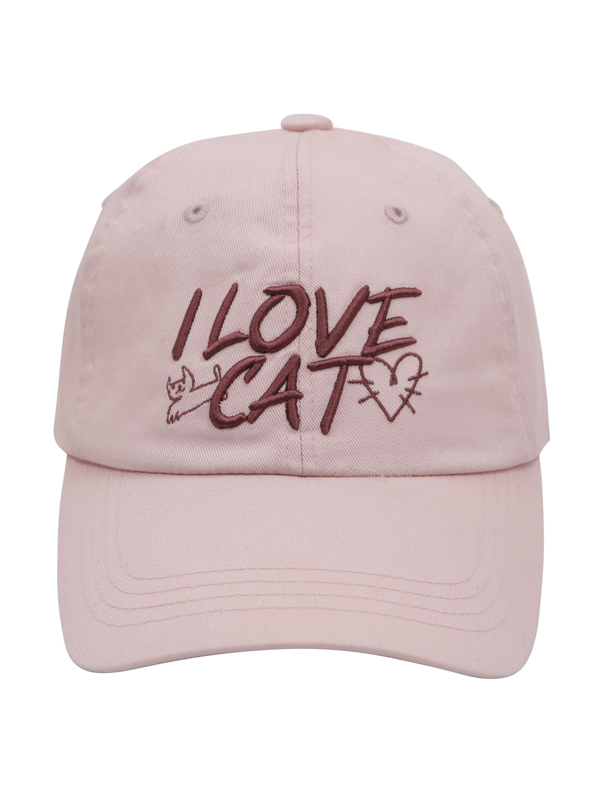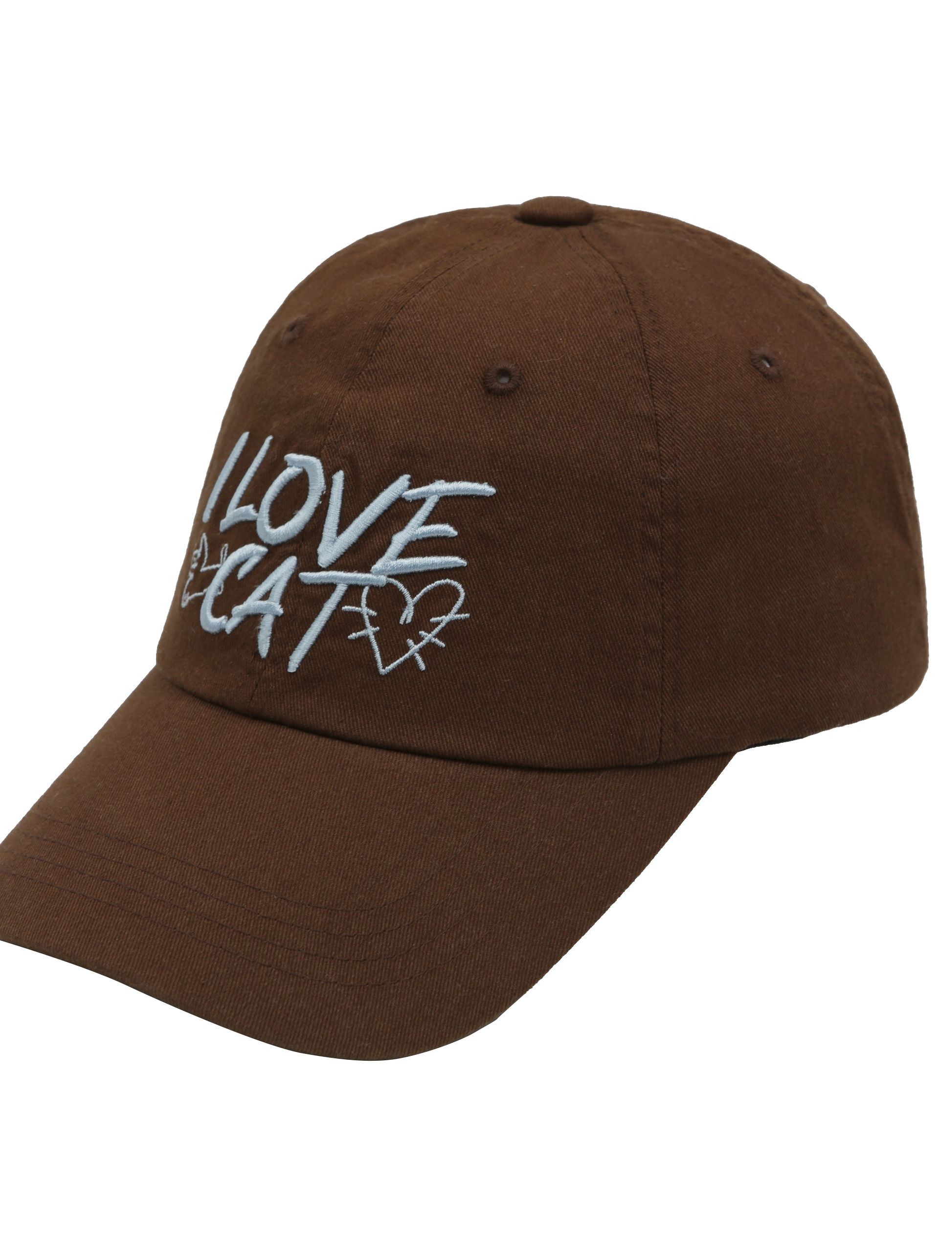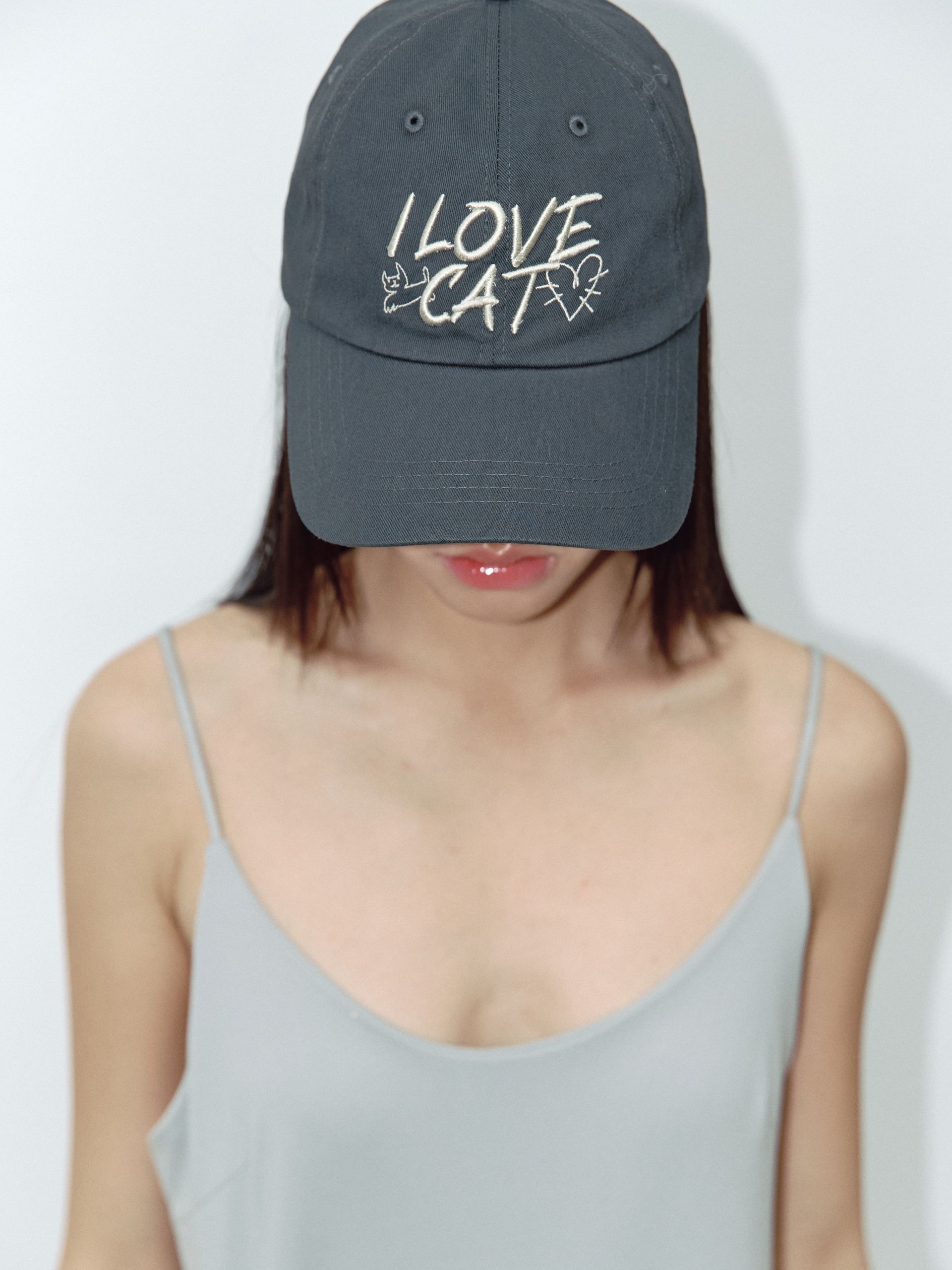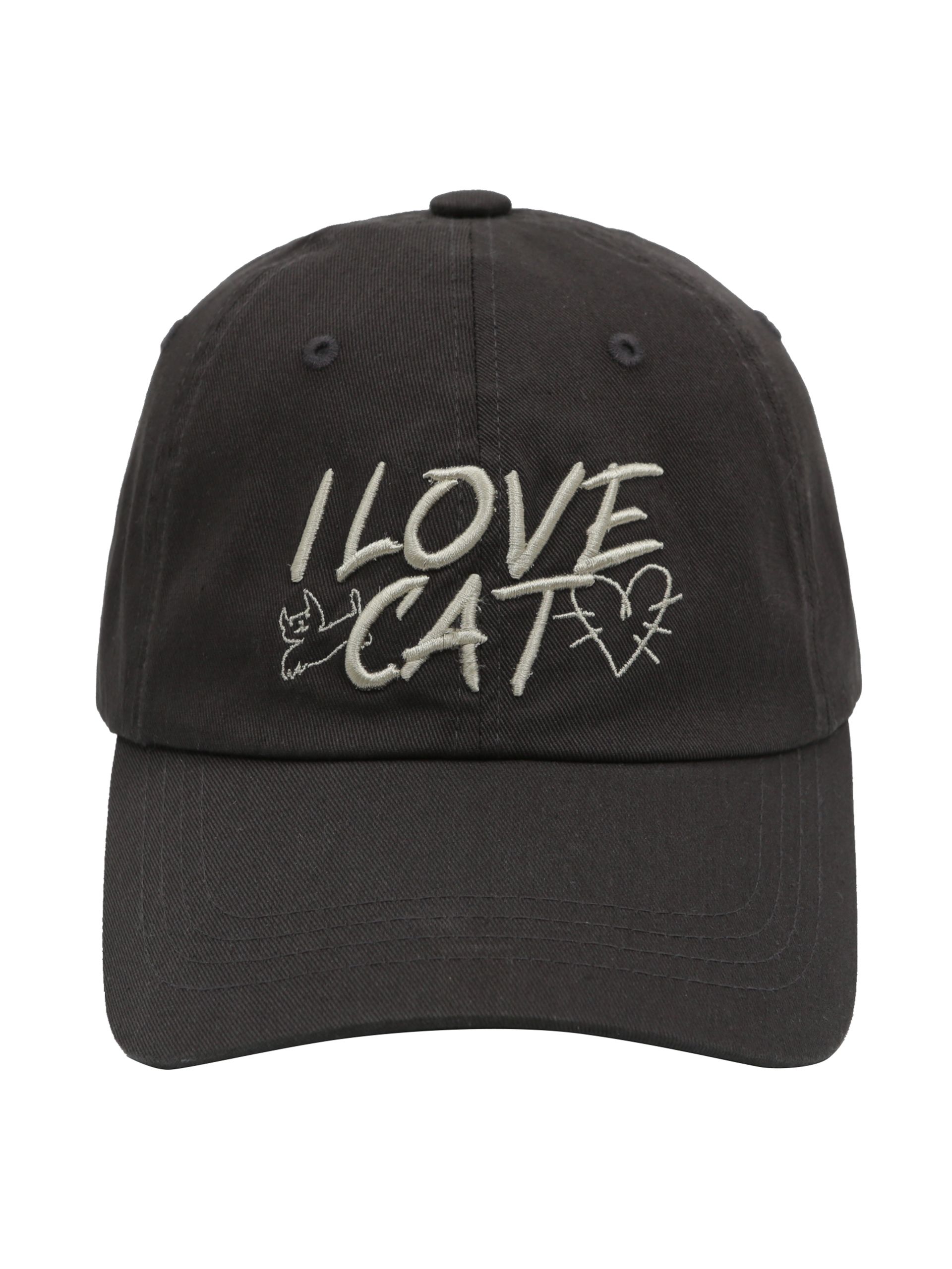 "I LOVE CAT" 문구가 감각적인 필기체 스타일의 자수로 새겨져 있으며, 텍스트 주변에는 귀여운 고양이와 하트 모양의 디자인이 함께 어우러져 사랑스러운 분위기를 연출합니다.