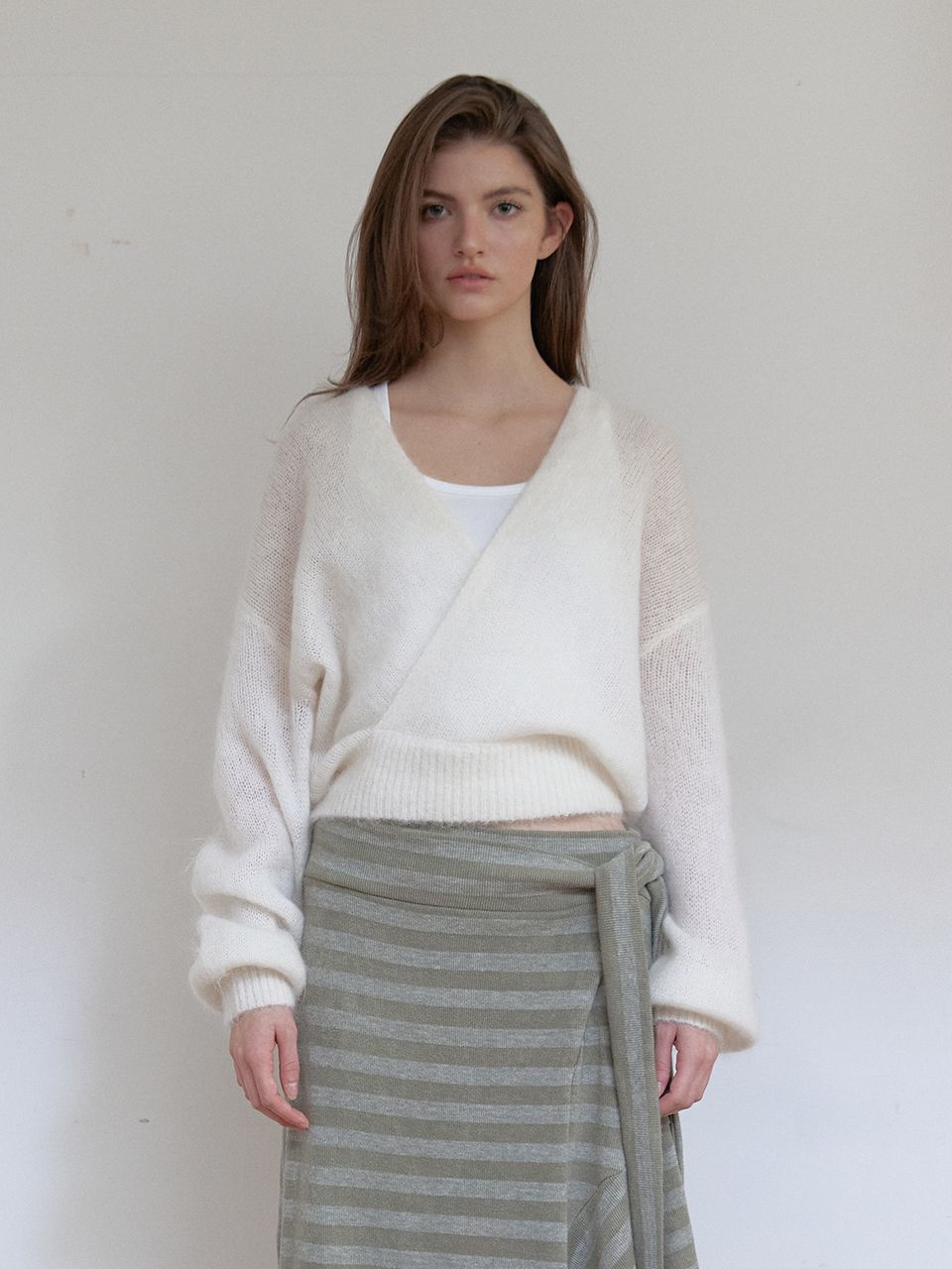 자연스럽게 감기는 브이넥 라인과 여유 있는 실루엣으로,