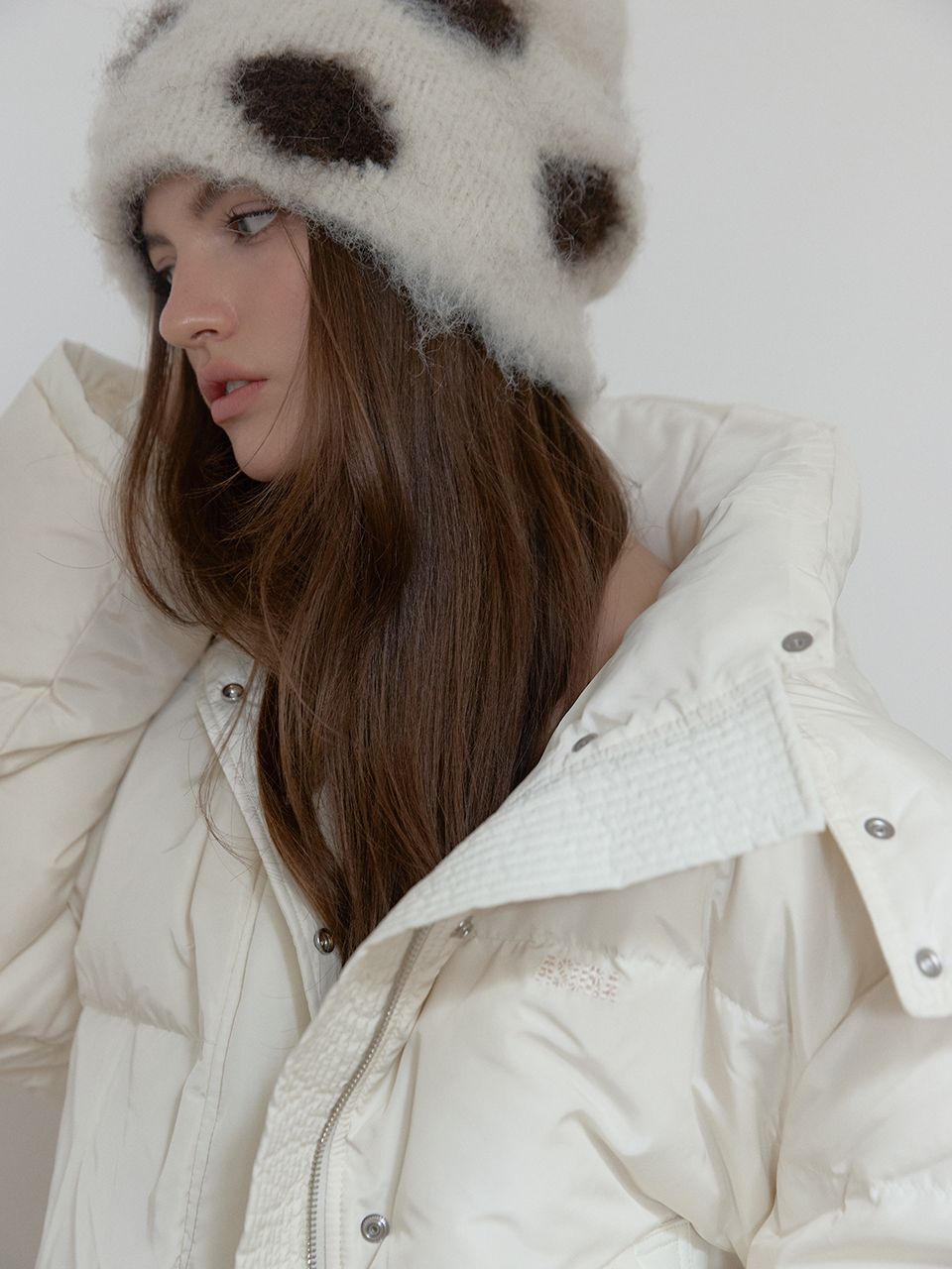 후드가 탈부착 되며 후드 앞쪽의 스냅을 닫아 마치 바라클라바 같이 연출이 됩니다.