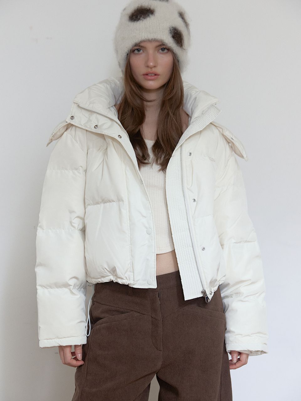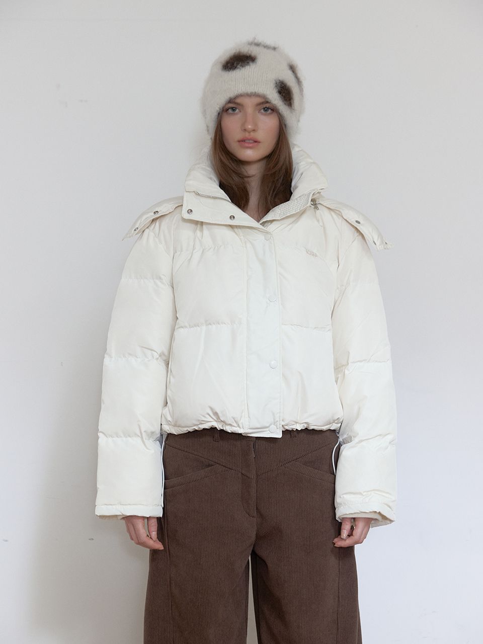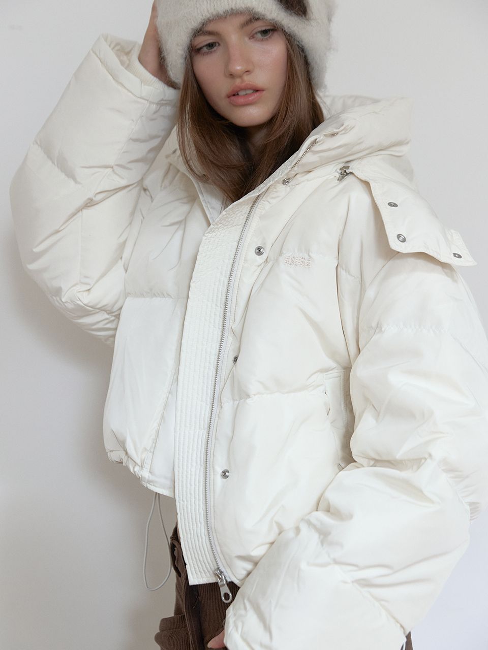 후드 탈부착/자수 포인트/밑단 스트링/소매 시보리 /숏 기장 패딩/